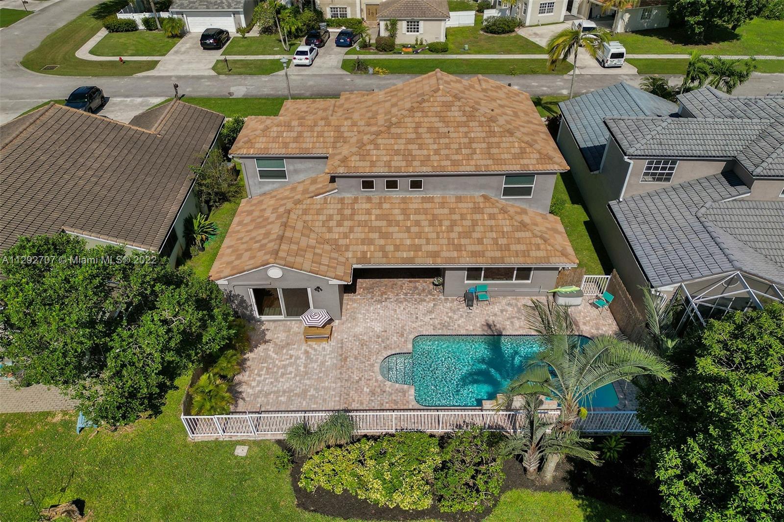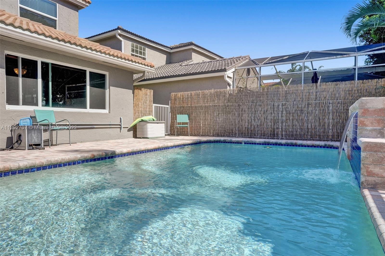 Fall in love with this exquisite, airy and sunny 4 bed/2.5 bath 2-story 2-car garage home with waterfall pool situated on a spectacular backyard. Kitchen recently remodeled features stainless steel appliances, double-oven, new disposal, updated wood cabinets and big pantry closet. Ground floor Master Suite features a skylight. Half bath located 1st floor. Plus new impact windows, plantation shutters and a storm-rated garage door. New pool plumbing/motor and 60-gallon water heater were installed in 2017. New A/C in 2018. Wonderful community that offers great amenities including 2 Pools, Spa, BBQ Grills, Clubhouse, Fitness center, Playground, Tennis, Basketball courts and Soccer. HOA includes X1 Xfinity Cable, DVR and Hi Speed Internet. The owner can have up to 2 pets, no aggressive breeds.