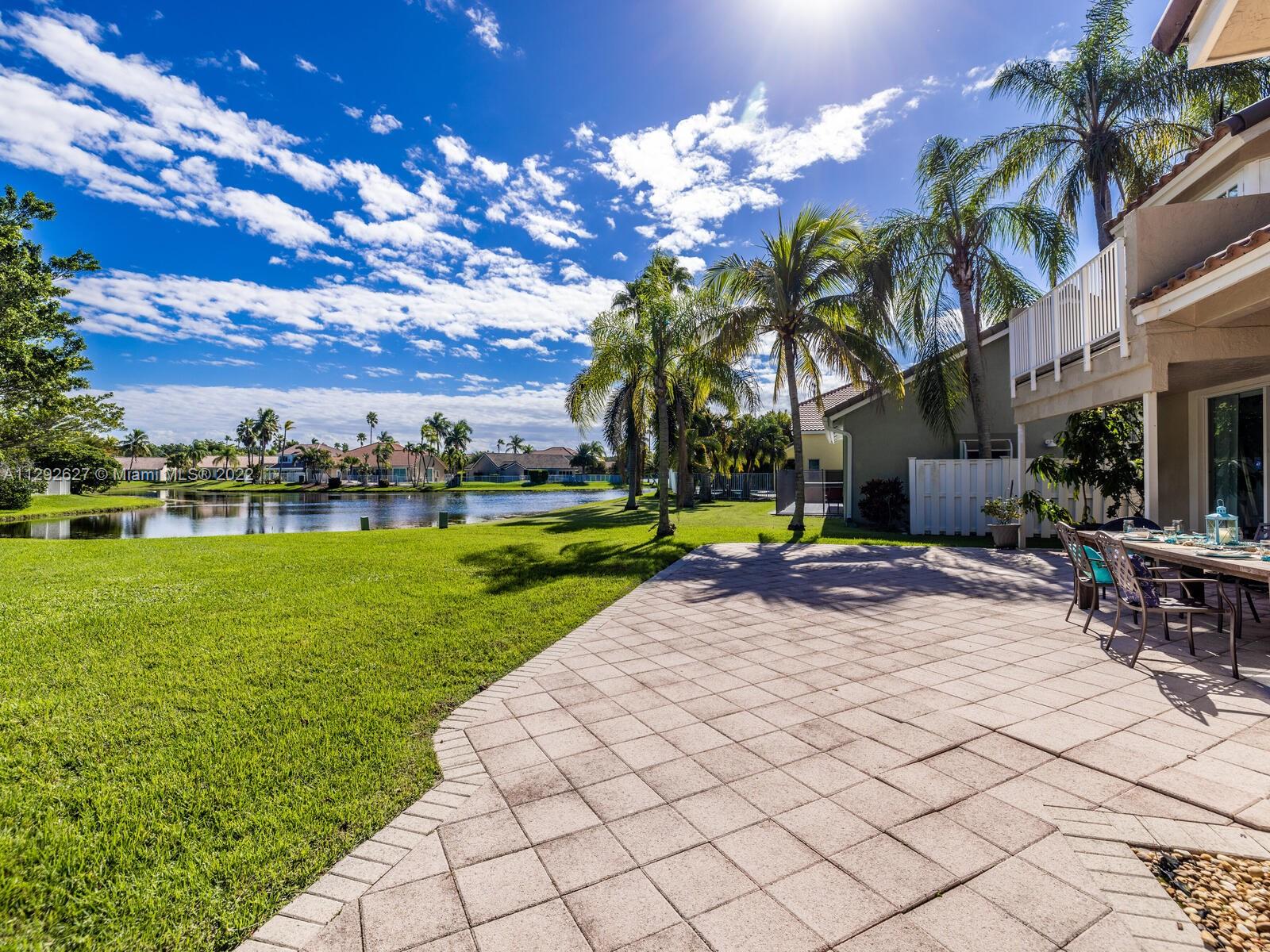 Elegant home sits on an oversized corner lot & cul-de-sac; it’s breathtaking from the minute you drive up. Step inside and you are greeted by soaring 20 ft. ceilings in the foyer & formal living room with an amazing view of the backyard and lake. 24” porcelain tile flooring leads to the gorgeously renovated kitchen, with granite & SS appliances and family room. 2 bedrooms & newly remodeled bath on 1st floor. Upstairs you will find the private master suite with a large bay window with French doors leading to an open balcony. Beautiful dark wood laminate flooring on the stairs and 2nd floor. The roof was replaced in 2009. Great location in the heart of Weston with top rated schools!