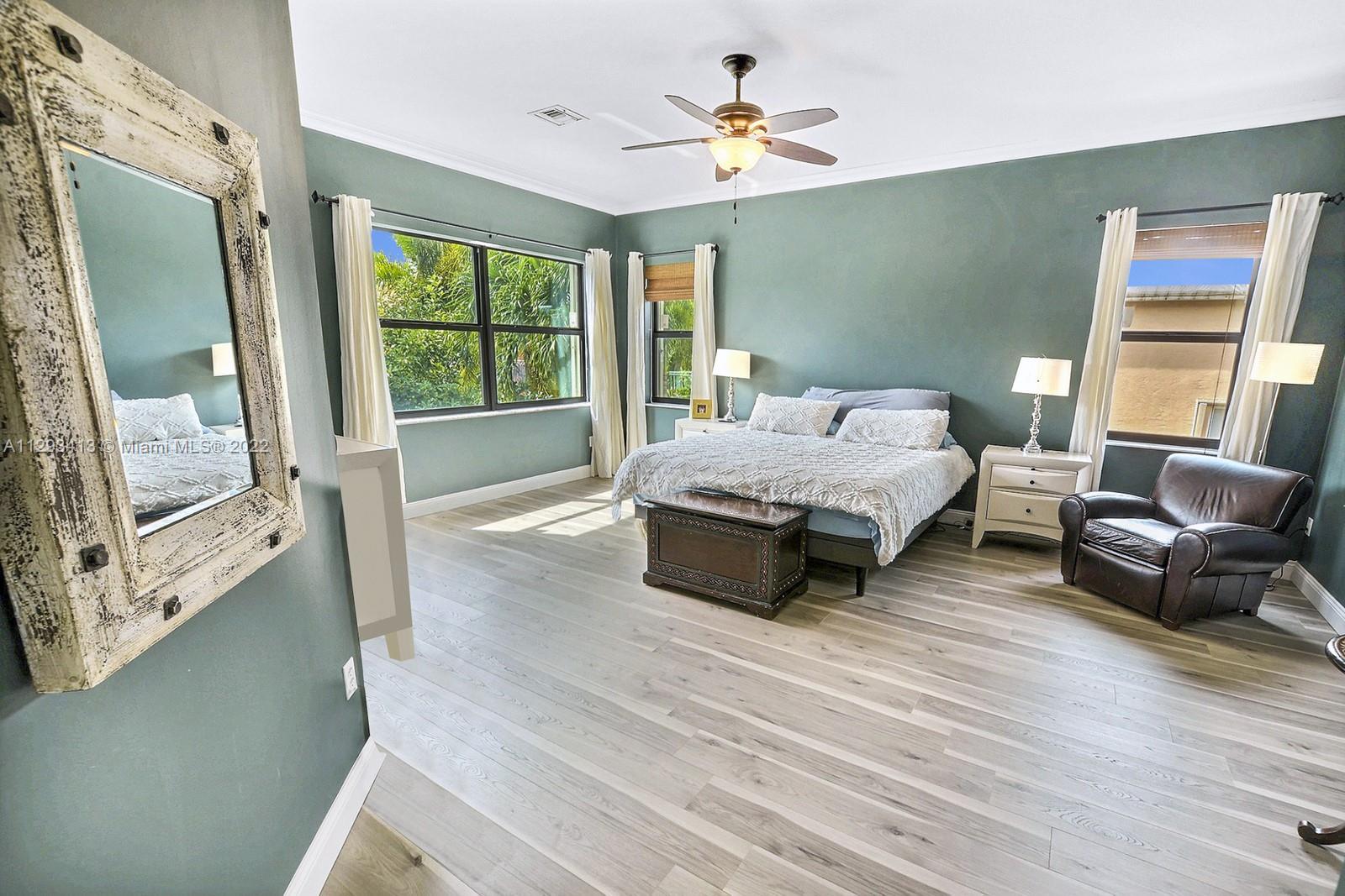 WELCOME TO THE RESORT STYLE MANNED GATED COMMUNITY OF RIVIERA ISLES, FEATURING THIS SPECTACULAR 5 BEDS 2.5 BATH HOME W 3,170 SQ FT OF LIVING SPACE. ELEGANT DOUBLE DOOR ENTRY OPENS TO TASTEFUL DECOR, GORGEOUS FIXTURES, STUNNING WOOD & IRON STAIRCASE & DETAIL THROUGHOUT. FABULOUS KITCHEN HAS TWO-TONED CABINETRY & QUARTZ COUNTERS. UPSTAIRS PRIMARY SUITE RETREAT W SITTING AREA. ENSUITE BATH HAS 2 VANITIES, SOAKING TUB & SHOWER. SERENE BACKYARD PARADISE PROVIDES THE ULTIMATE OUTDOOR LIVING/ENTERTAINING SPACE W EXTENDED PATIO & CHARMING PERGOLA LINED BY AMBIENT MATURE FRUIT TREES & LOW MAINTENANCE TURF. OTHER UPGRADES: SOLAR PANELS, ROOF 4 YEARS OLD & BRAND NEW IMPACT WINDOWS. ENJOY ACCESS TO UNPARALLELED RESORT STYLE ONSITE AMENITIES IN PROXIMITY TO DESIRABLE SCHOOLS, I-75, SHOPS & RESTAURANTS.