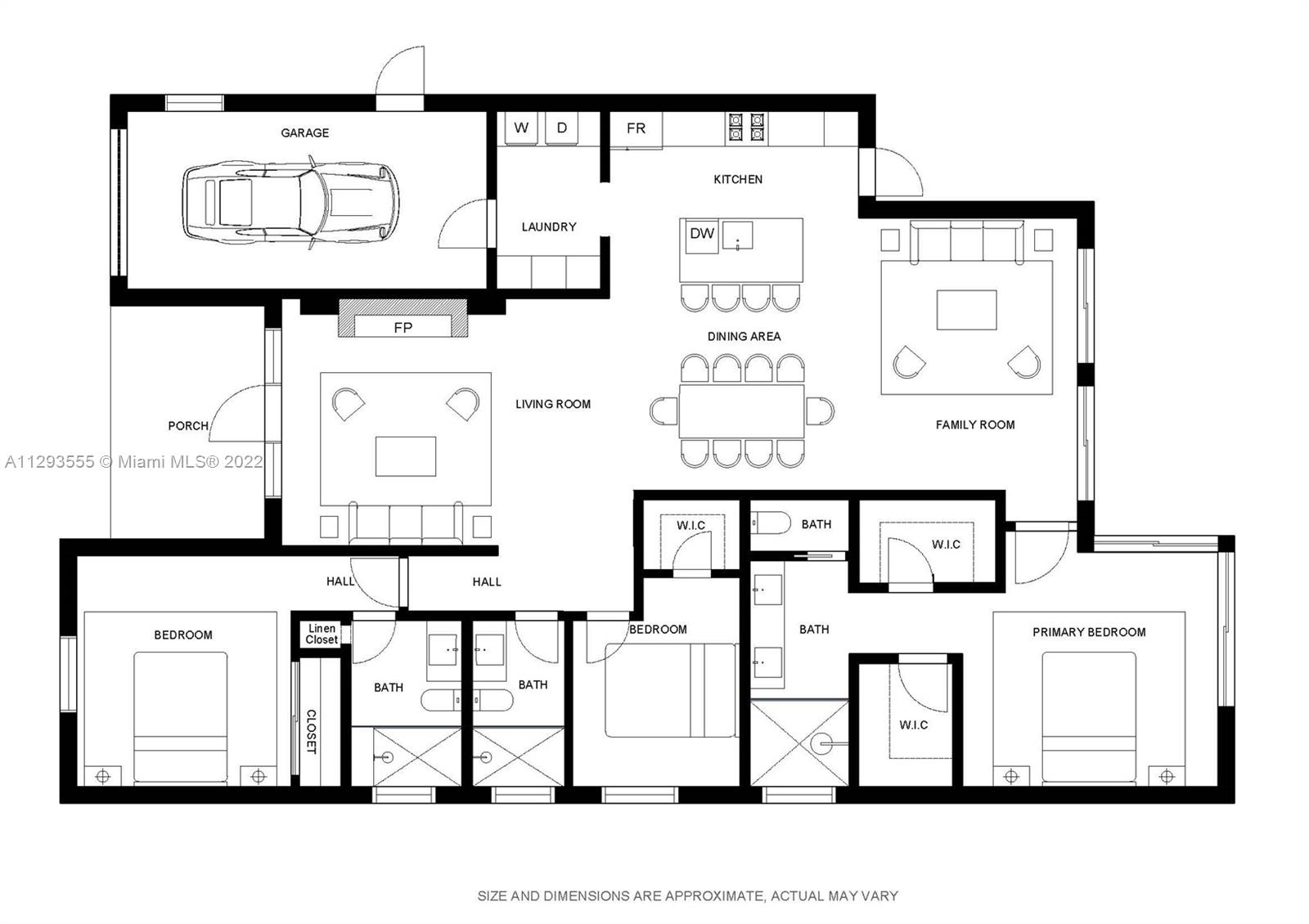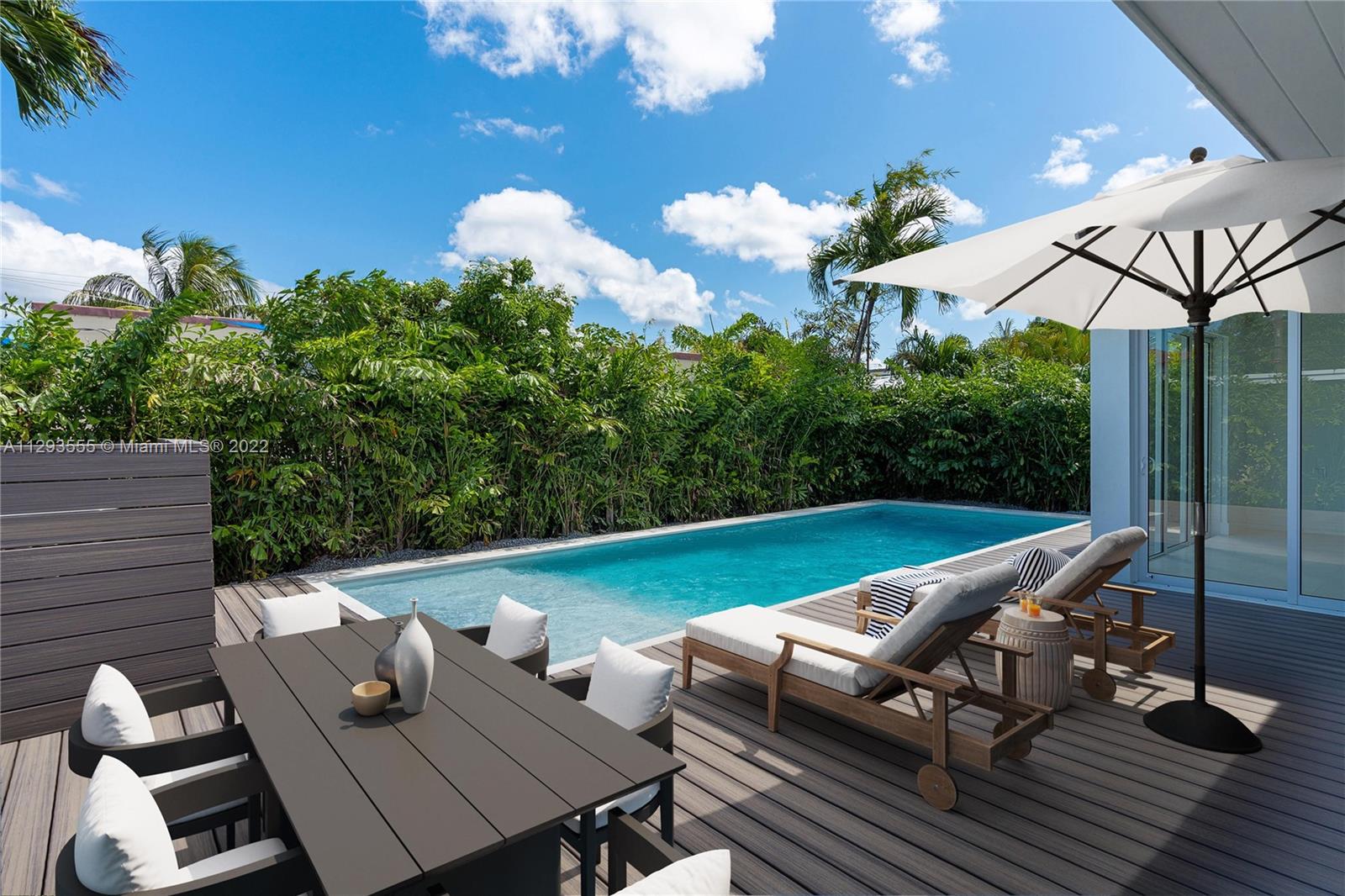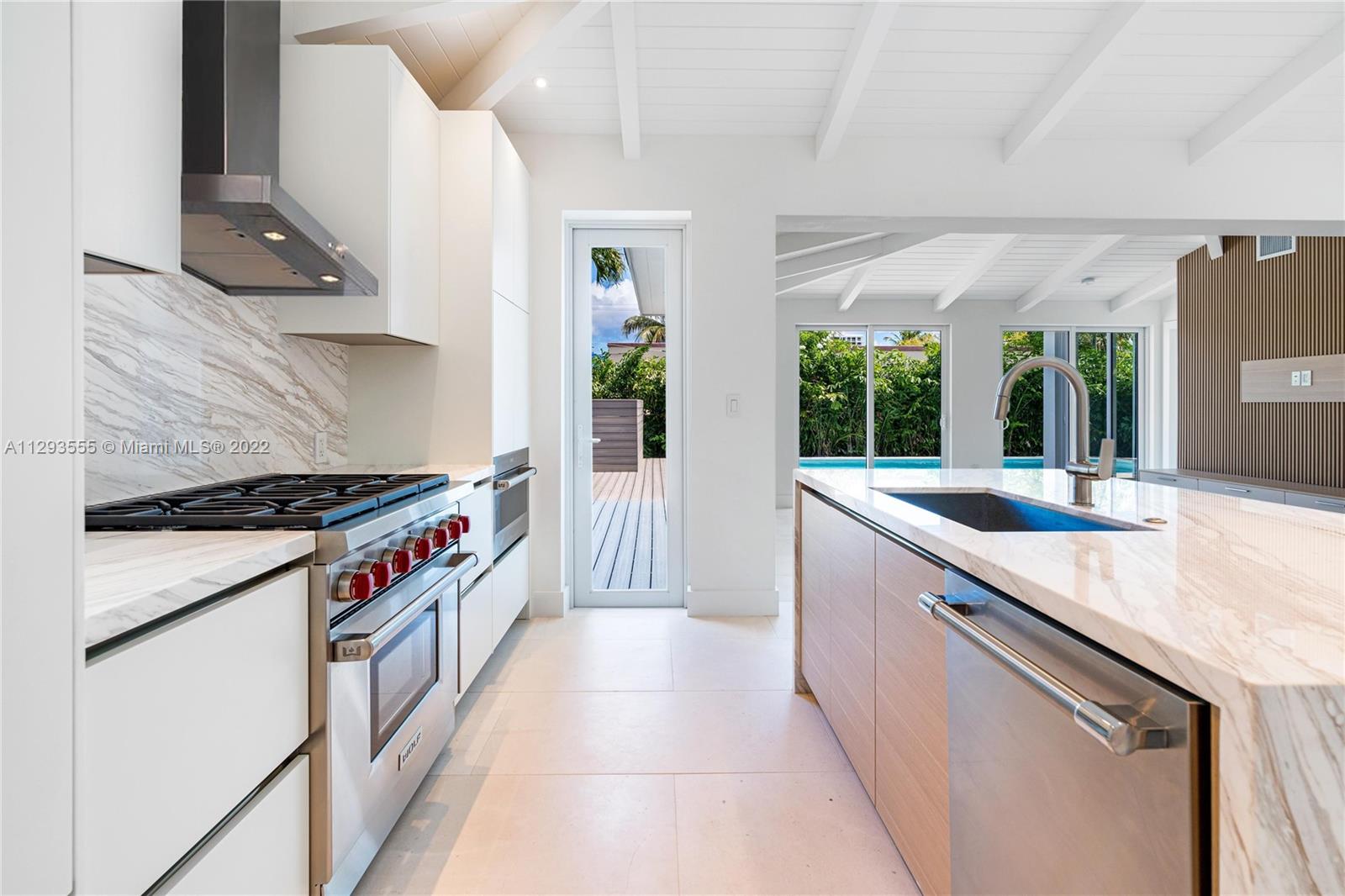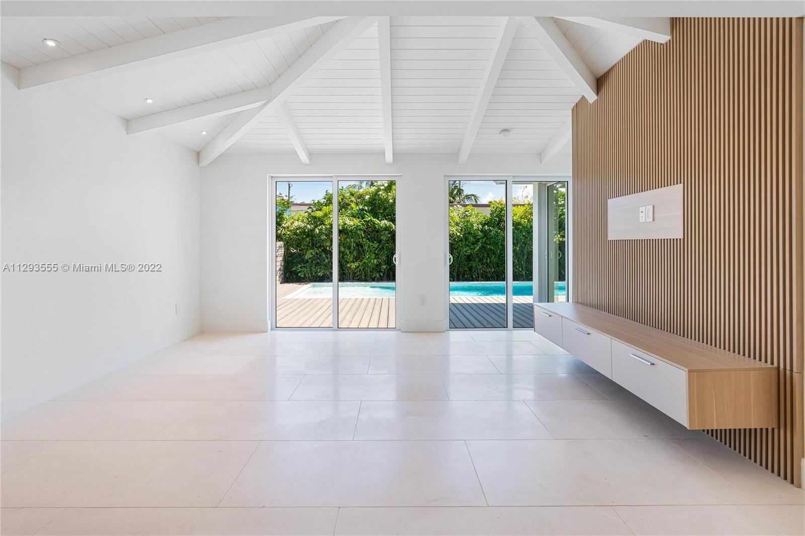 Stunning Surfside dream home! This sun-filled 3 bed/3 bath home has an open floorplan with vaulted ceilings creating a spacious atmosphere perfect for entertaining. Meticulously renovated along with a new master suite addition with 2 walk-in closets & a spa-like bath. Everything is new, including an open kitchen with Florense cabinetry and Subzero/Wolf appliances, 3 bathrooms with Calcutta marble & Hansgrohe hardware, Italian Limestone flooring, tile roof, electric, plumbing, AC system...It's all new! The exceptional open living space with new impact windows & doors give a clear view to the private backyard entertaining area and new pool with tanning ledge. In the heart of Surfside & 3 blocks to the beach! Walk to dining, houses of worship, tennis & Bal Harbour Shops. Truly one of a kind!