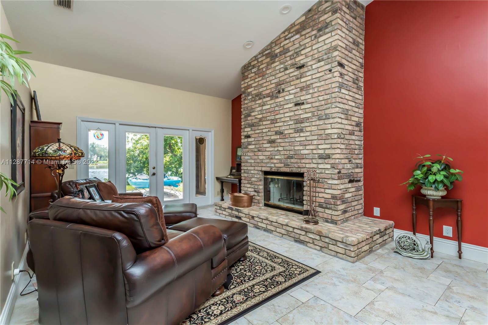 Gorgeous 1 story home on an oversized .32 acre lakeside lot in Pasadena Estates II at Chapel Trail! This home features a **BRAND NEW AC (2023)**, stunning tile floor throughout, volume ceilings, & a working Chicago brick fireplace! The master suite is complete w/2 custom walk-in w/built-ins, & a brand new upgraded master bath modern style! The large fenced-in backyard has an amazing lake view, huge paver patio, & an oversized pergola that provides the perfect outdoor entertaining space. There is plenty of space for a pool! This is a ***SMART HOME***, including a newer smart water heater, & upgraded smart switches. A Konnected© Smart security system was installed. Home is wired w/ 12 camera 4k PoE surveillance system. Upgraded w/both ***HURRICANE IMPACT WINDOWS & ACCORDION SHUTTERS!***