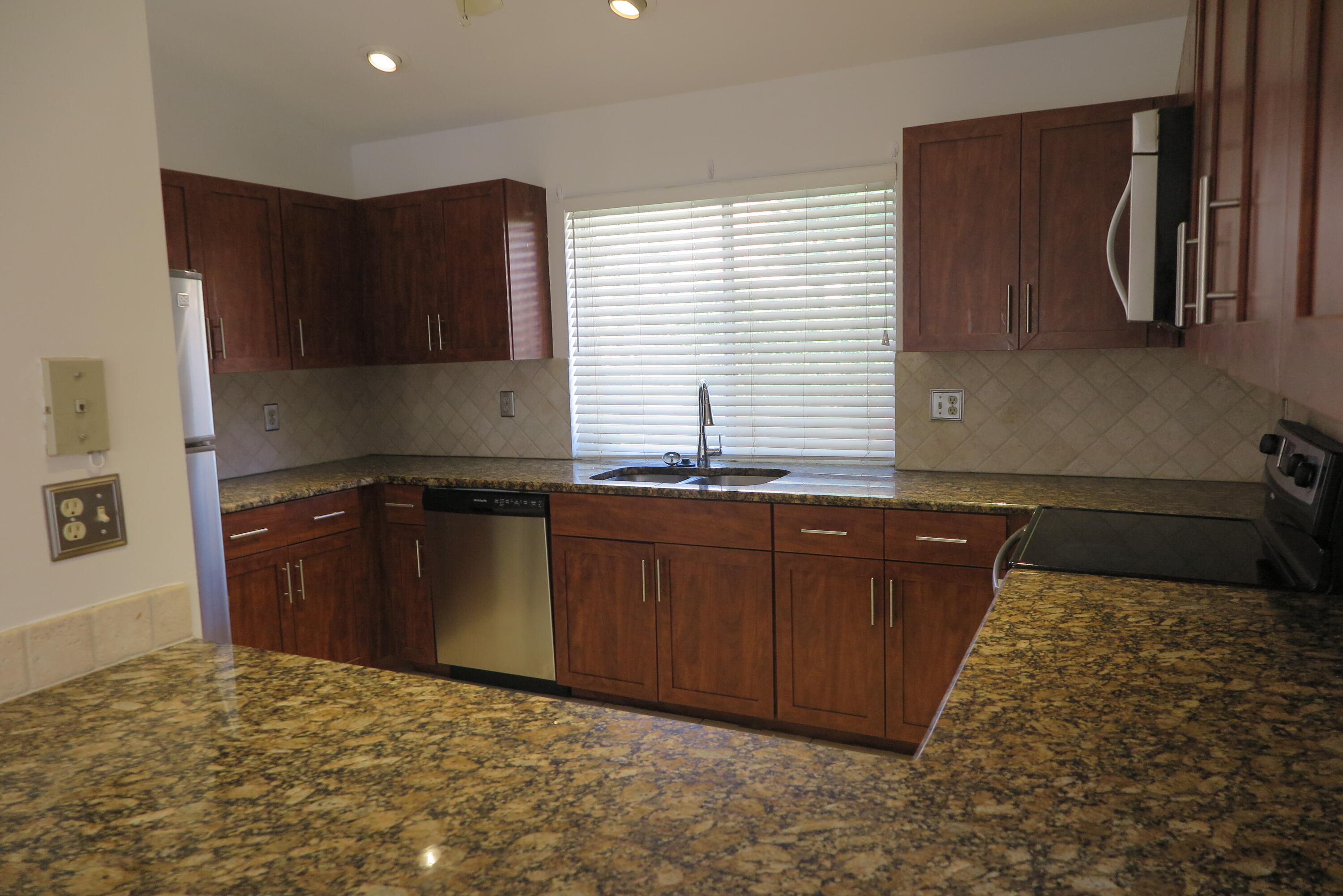 Updated townhome in popular Cortina at Boca Pointe. Kitchen features wood cabinets, granite tops and stainless appliances. Large neutral tile floors on lower level and brand new laminate flooring on stairs and upper level. Entire home has been re-plumbed to remove all poly pipes. Screened in patio with garden views. One bedroom plus full bath downstairs and two bedrooms up. Large closet in master bedroom. Private bath in 2nd bedroom. Close walk to community pool.