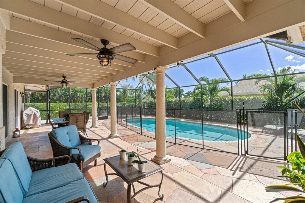 DON'T MISS THIS BEAUTIFULLY REMODELED HOME IN A GREAT CENTRAL LOCATION WITH ALL IMPACT WINDOWS.WALK INTO THIS VERY OPEN CONCEPT THAT HAS HIGH VOLUME CEILINGS. GORGEOUS UPDATED KITCHEN WITH HUGE ISLAND OVER LOOKING LIVING AREA AND POOL. KITCHEN HAS LIGHT CABINETS WITH GRANITE COUNTERTOPS, NEW SS APPLIANCES 2019, NEWER WASHER / DRYER 2017, NEW A/C 2017, NEW VINYL FLOORS, NEW PAINT, BRAND NEW HOT WATER HEATER 2021, NEW INSULATION NEW POOL PUMP.SEPERATE FORMAL DINING AREA GREAT FOR ENTERTAINING.NOTHING TO DO! MASTER BATHROOM HAS A ROMAN TUB W/ JETS.HUGE COVERED PATIO OVERLOOKING TRANQUIL SALT WATER POOL WITH BEAUTIFUL LANDSCAPING. NICE CORNER LOT FOR PRIVACY WITH MATURE FRUIT TREES. GENERATOR HOOK UP. CLOSE TO POLO SHOPS W/ PUBLIX , SHOPPING, & RESTAURANTS. LOW HOA FEES AND PET FRIENDLY!