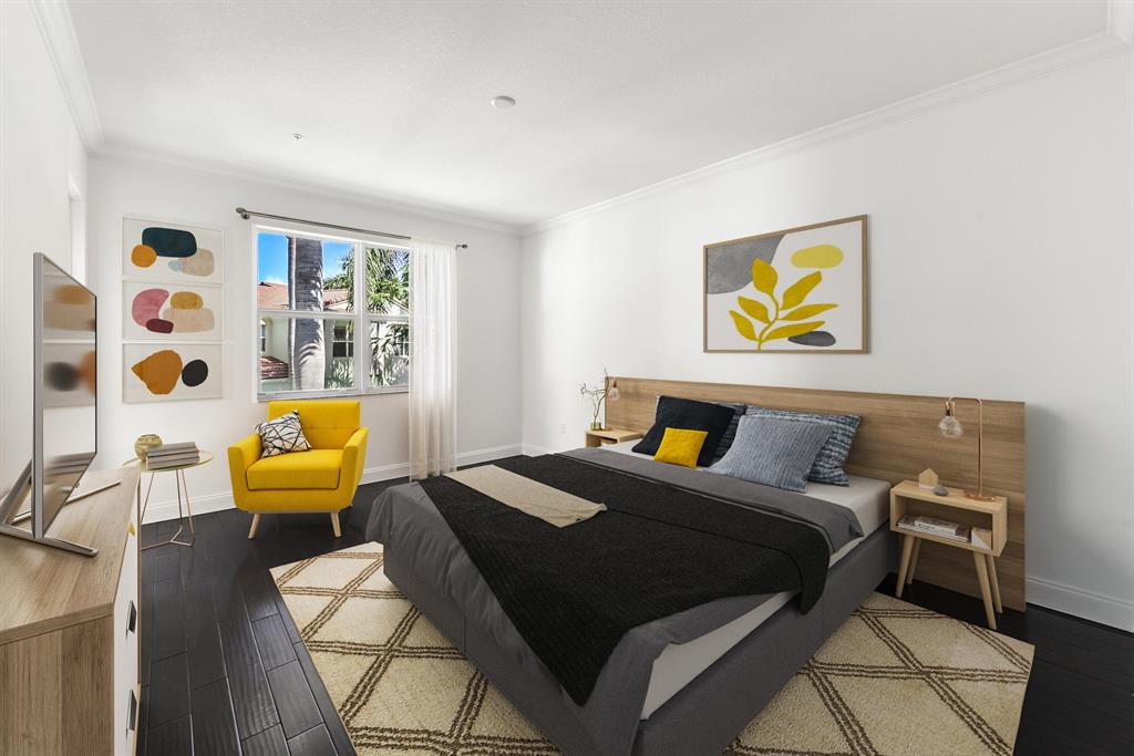 One of the best kept secrets in Boca, Centra features two-story townhomes in the heart of Central Boca. This three-bedroom home has an open concept design with granite kitchen, stainless appliances, and two-car garage with driveway. Upstairs, a luxurious master with expansive walk-in closet, five-piece bath, and private balcony. Two additional bedrooms share a bath with double sinks, and an upstairs lounge, full laundry room with sink. Don't miss the peek-a-boo views of Blue Lake, perfect for walkers, joggers, and bikers, providing access to nature trails, Spanish River Library, Countess Park and El Rio Trail! Inside the community, you'll find a resort style pool, gym, meeting area and tot lot. Freshly painted and ready to move-in! Don't miss out! Blue Lake El, Omni MS & Spanish River HS