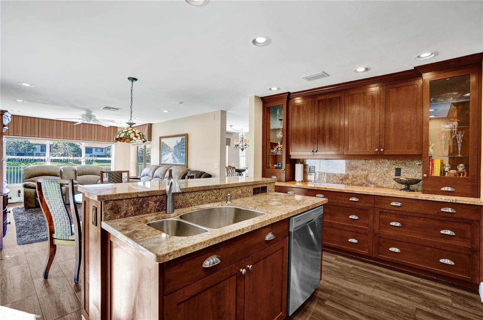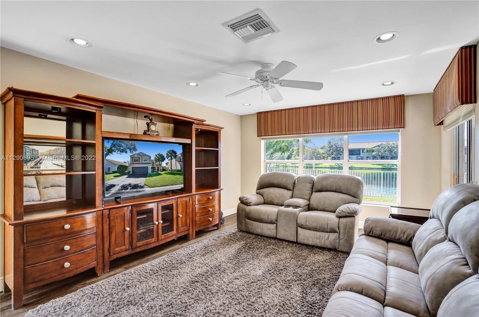 Enjoy outdoor living & beautiful water views - your own private oasis! This gorgeous 4 bed, 2.5 bath, 2 car garage home showcases stunning water views from the moment you walk in! Featuring an open layout w/wood-look tile flooring (2017) in spacious living areas & high vaulted ceilings for a light & bright feel! Kitchen features include new appliances (2020-22), granite countertops, an island & new recessed lighting! Step out the sliding glass doors to find a covered patio perfect for BBQ, fenced yard & fresh exterior paint (2021). Newer tile roof (2006), A/C (2017) & interior paint (2017). Accordion shutters for convenience! Great location in the sought after community of Bridgewater w/cable, internet & lawn service included! Walking distance to Deicke Park!