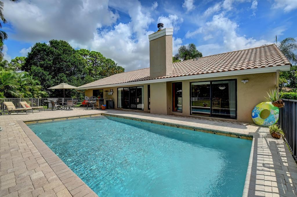 Rare opportunity to own 1/3 acre in the heart of Central Boca in the desirable Timbercreek neighborhood off the St. Andrews corridor! This 3 BR 2 BA pool home is located on a quiet and tranquil cul-de-sac with an oversized, private backyard. Lovely open floor plan with cathedral ceilings and a gorgeous marble fireplace as the center piece of your living space. Totally remodeled with crown molding and new flooring. Kitchen has updated appliances, granite countertops and maple glazed cabinets. Bathrooms have been updated with quartz, corian and marble flooring, jacuzzi tub. Huge 1,200 sq ft paver brick patio with pool, jacuzzi and bar/tv area with southwest exposure. Incredible views with windows across the back of the home allowing you to see your children playing in the backyard from the