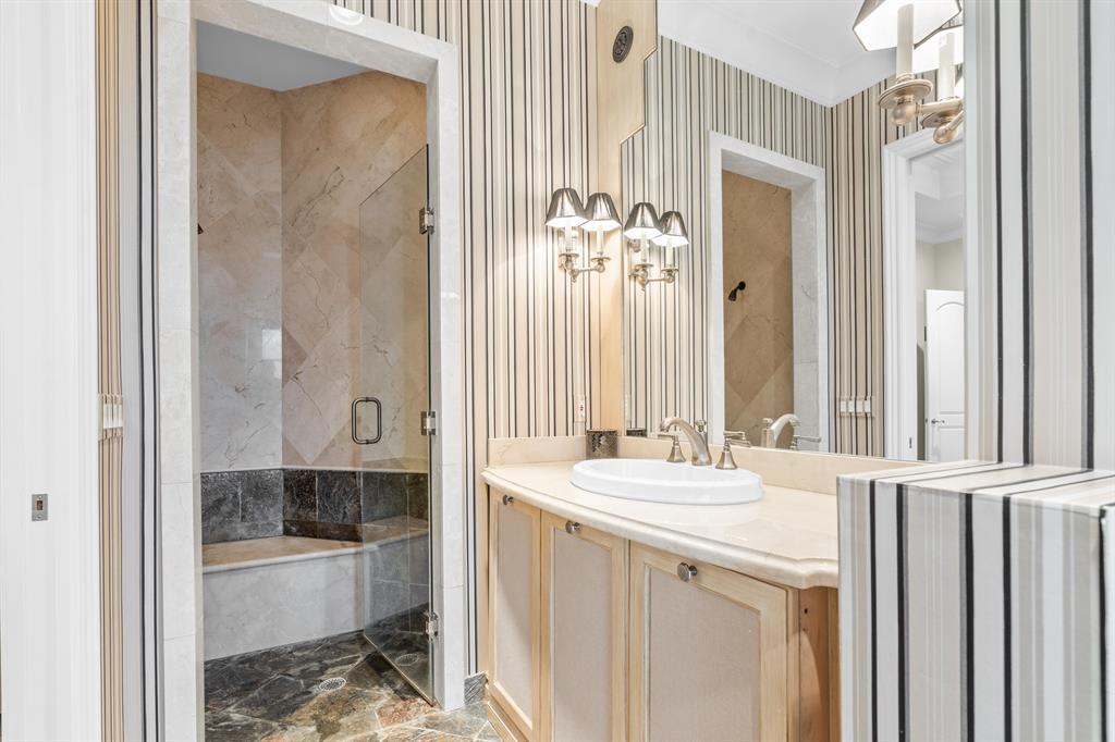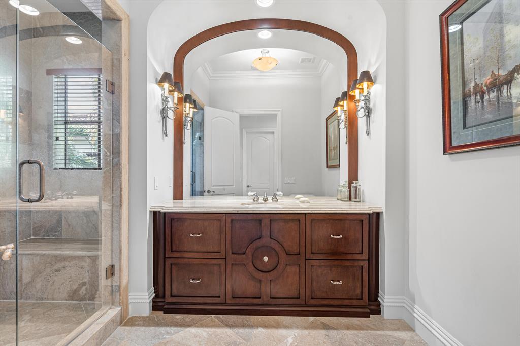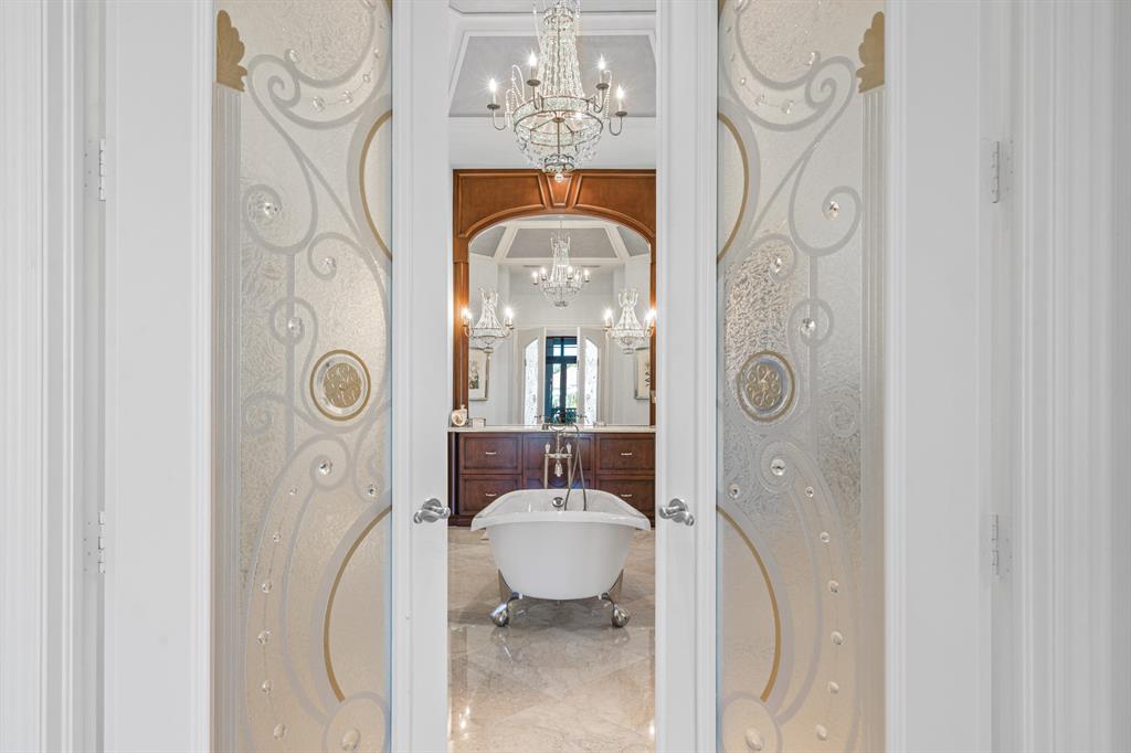 Presenting this custom lakefront Chateau in the prestigious Sanctuary section of The Oaks. This pristine and elegant 2-story triple split estate has 5 oversized en-suite bedrooms plus a library, theater, loft, and a grand primary suite. Replete w/ high-end finishes: marble & wood flooring; granite, onyx, and marble countertops; architectural millwork & coffered ceilings. The luxurious primary bedroom has two bathrooms, two custom closets, a sitting room, and a screened patio overlooking the lake. Featuring a phenomenal living space & Chef's dream kitchen. Full impact glass, full house generator, covered & screened patios, summer kitchen and a heated pool and spa all set on a special expansive lot w/ endless long lake views. Available turn-key upon request.