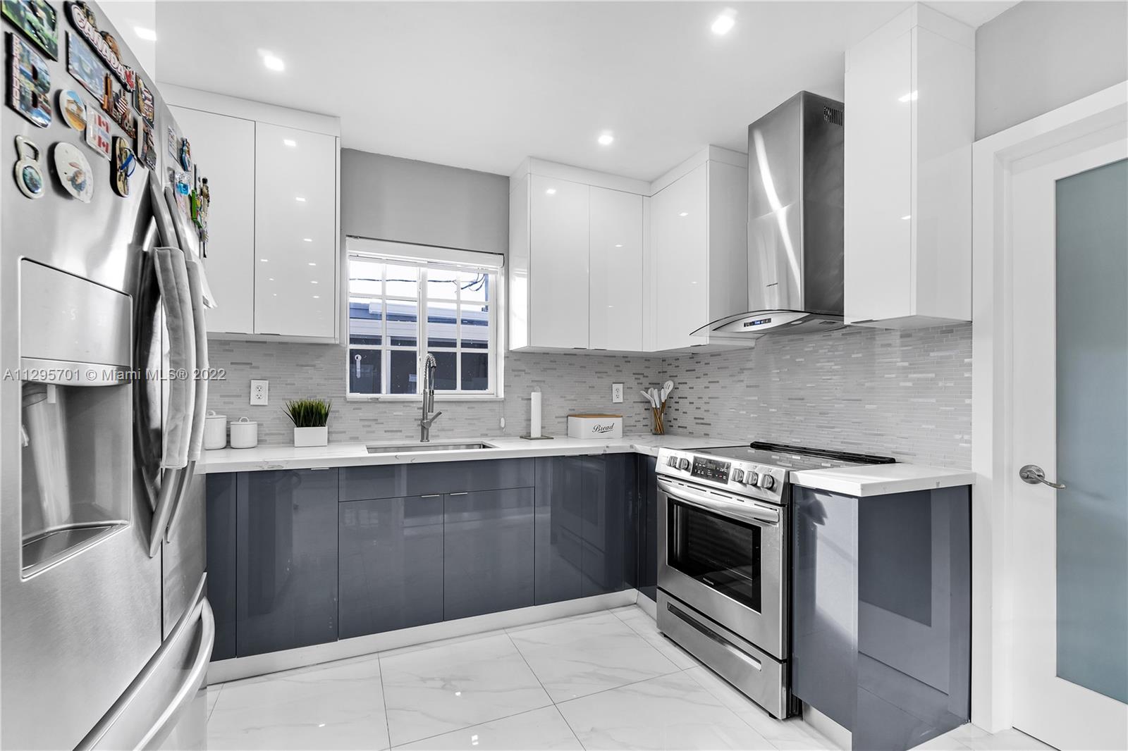 Spacious and bright 3 bed, 2 bath single family home in West Hialeah. The home features: ample living room with LED lighting, 24x24 porcelain tiles throughout, roof replaced in 2020, security camera system, solar panels, impact-rated front door, storm panels, custom bar area, kitchen with waterfall island matched with quartz counter tops, stainless steel appliances and white gloss cabinets, laundry room with stackable washer/dryer, formal dining overlooking the terrace and the backyard. An oversized backyard will give you the freedom to entertain family, friends and the kids. The house has two bedrooms that share one bathroom and the third bedroom currently used as an In-Laws with its own kitchenette and bathroom for an additional income. Do not miss on this one!