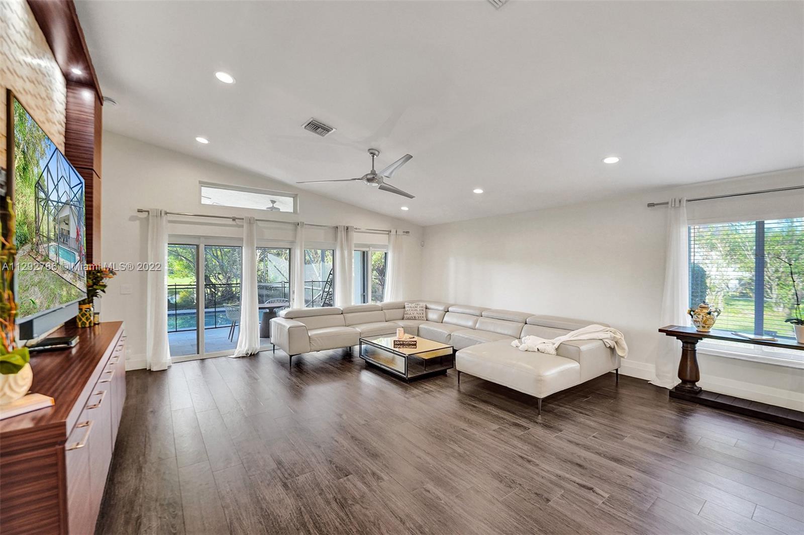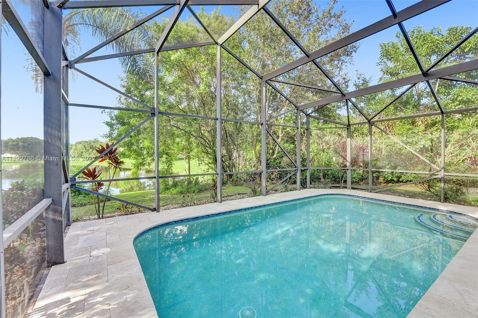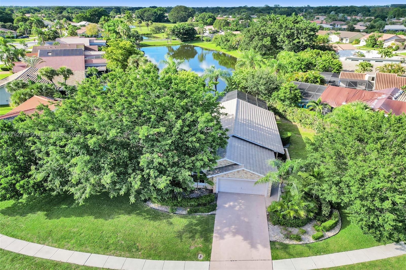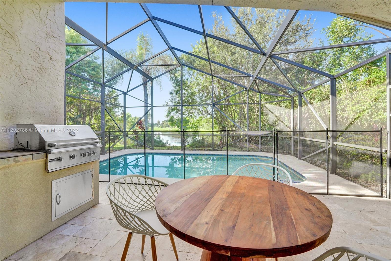 Welcome to Boca Greens Country Club, a non-mandatory golf club membership community. This adorable fully renovated lakefront home with a private screened-in salt water system pool features a custom kitchen, with all ss appliances, marble baths, high-end customized closet systems in all bedrooms, and high-impact windows all around the property. This property is situated on the longest end of the lake with magnificent sunsets. In addition to the view and upgrades, this property has a beautiful and functional side yard which is perfect for kids and pets. Basic cable TV and fiber internet are included in the low HOA fees. Gated community. The roof is 2018.