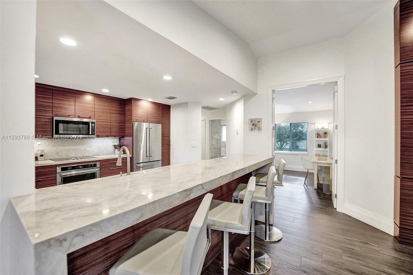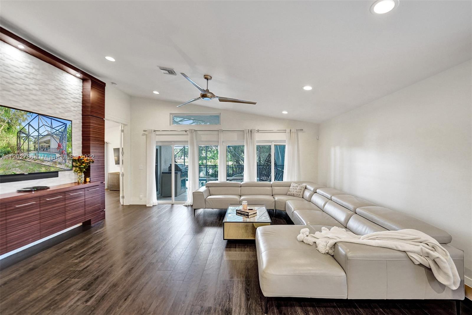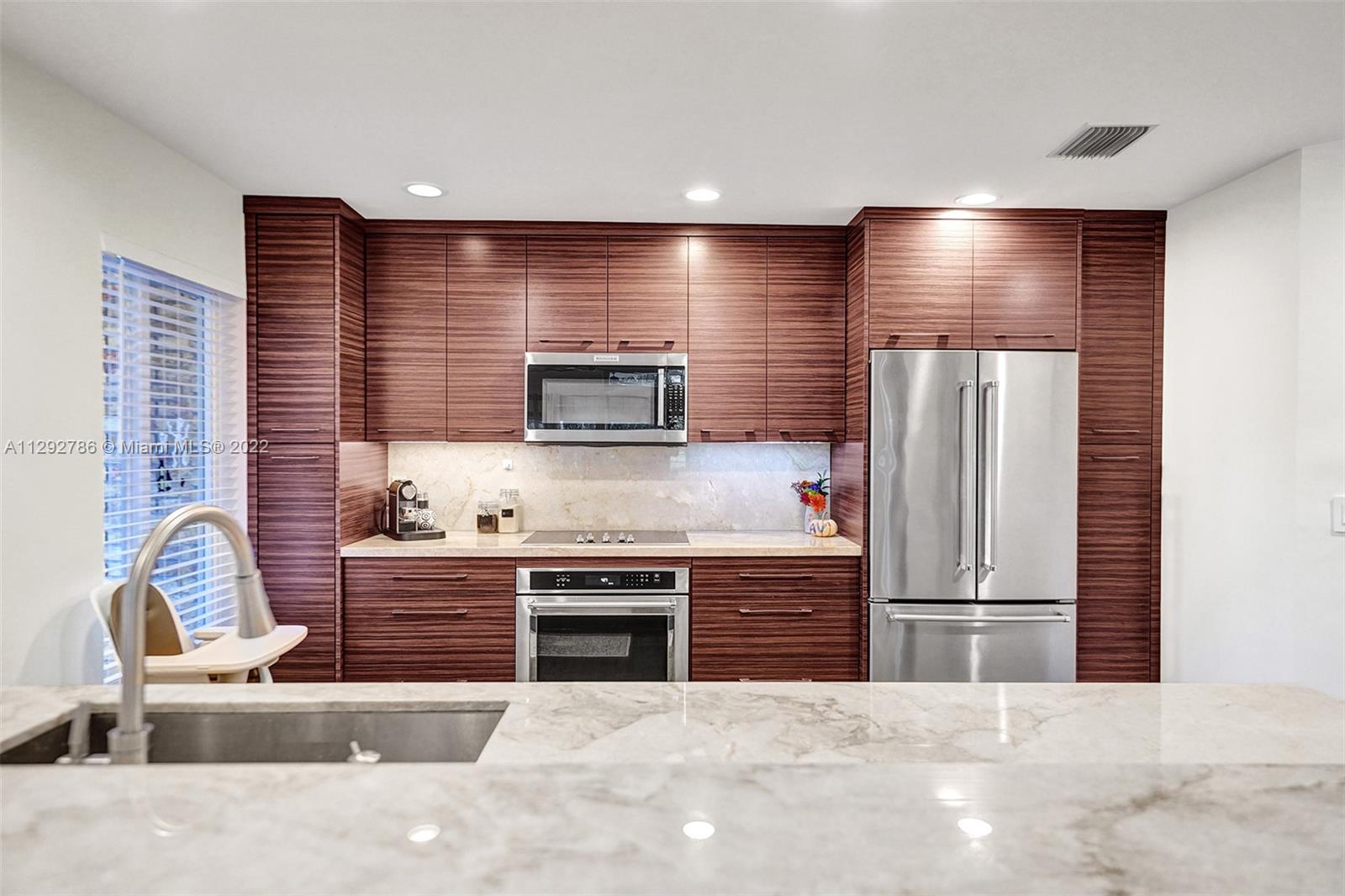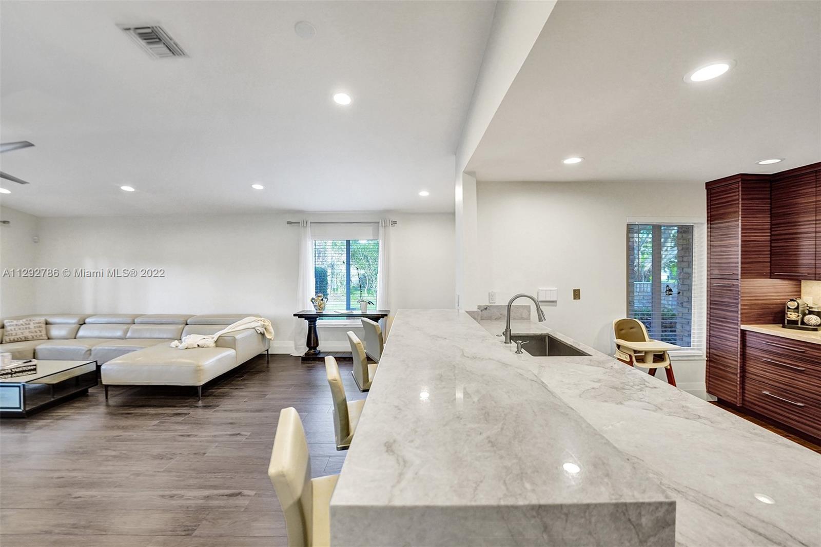 Welcome to Boca Greens Country Club, a non-mandatory golf club membership community. This adorable fully renovated lakefront home with a private screened-in salt water system pool features a custom kitchen, with all ss appliances, marble baths, high-end customized closet systems in all bedrooms, and high-impact windows all around the property. This property is situated on the longest end of the lake with magnificent sunsets. In addition to the view and upgrades, this property has a beautiful and functional side yard which is perfect for kids and pets. Basic cable TV and fiber internet are included in the low HOA fees. Gated community. The roof is 2018.