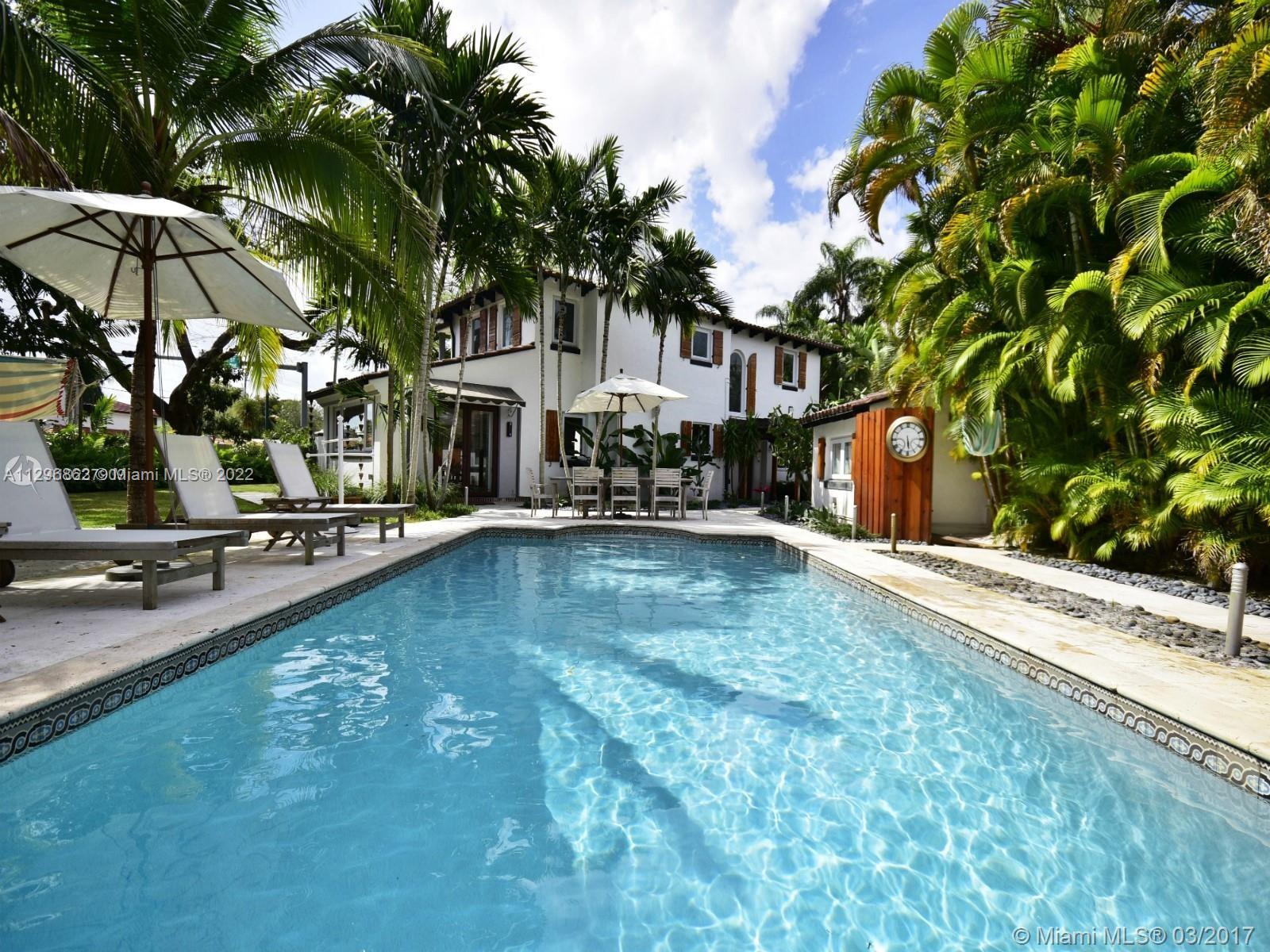 PRIVATE AND HIDDEN OASIS in glamorous Miami Shores! Restored and remodeled Old Spanish-style luxury home on massive property, with meticulous attention to detail. Designed by architect Robert Law Weed, this property features art deco style features throughout. Main home is spacious at 3200 sq ft (per owner) with 3 bedrooms/2.5 bathrooms, gourmet kitchen, and hardwood floors. Master bedroom has ensuite bathroom. BONUS detached cottage is 1/1. Impact windows & doors, 2 car garage, and more. Private corner lot is expansive at over 18k sqft, with lush landscaping surrounding a relaxing pool area. Tenant occupied and on month-to-month basis, so advance notice required. MUST SEE to appreciate this one-of-a-kind estate in Miami Shores. Priced to sell and needs some TLC. SHOWINGS START NOV 11 & 12