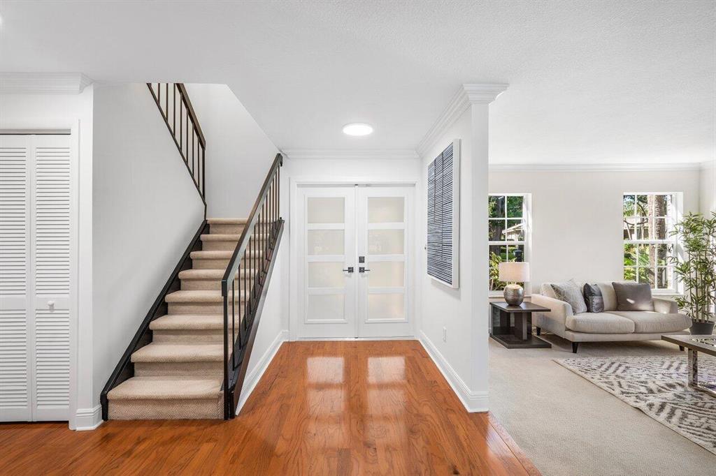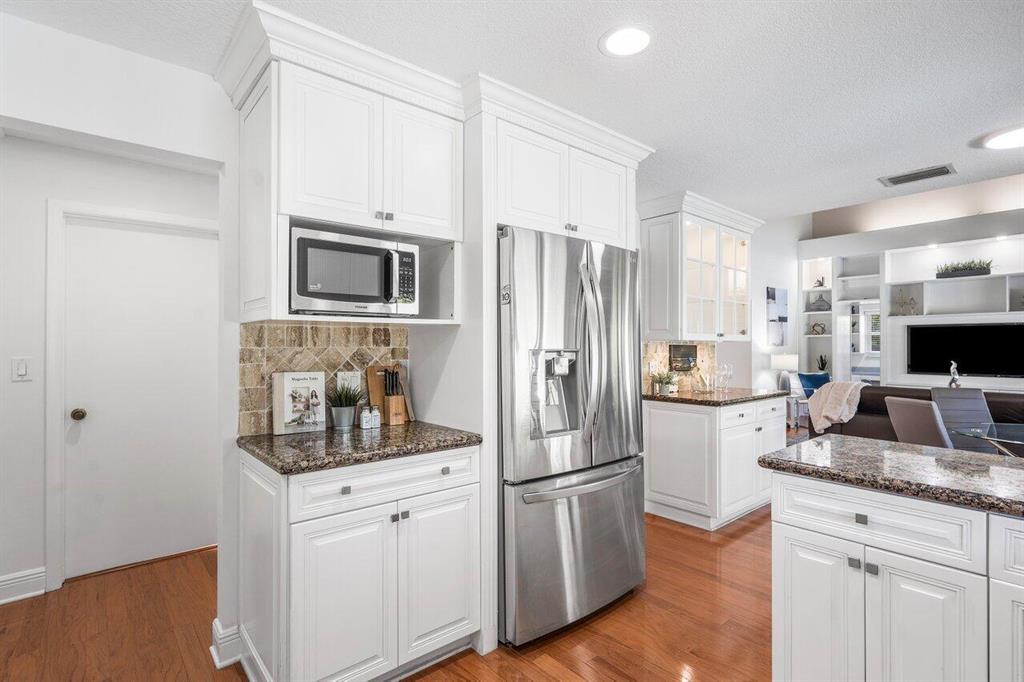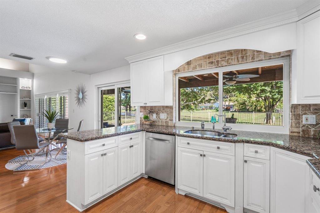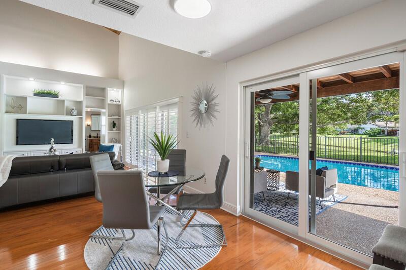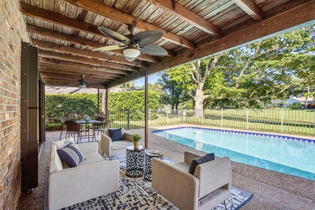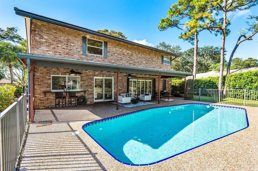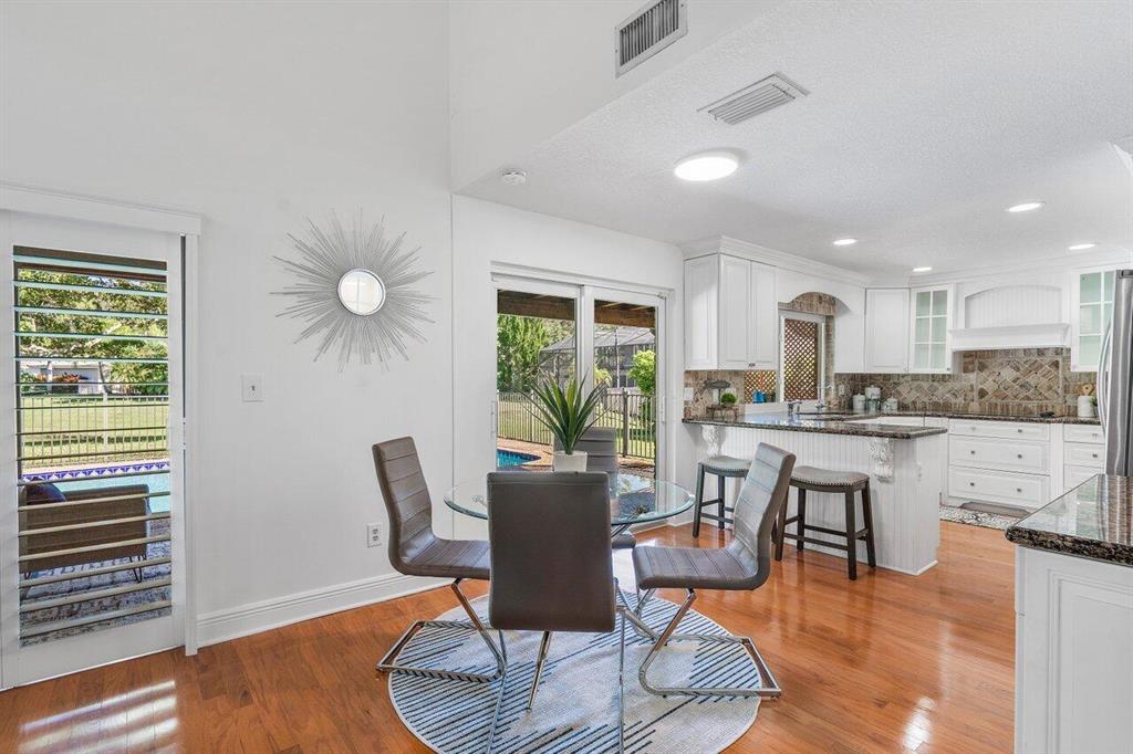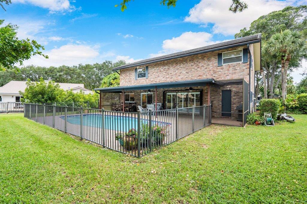 Fabulous 4 bedroom, 3 full bath single family home with pool on a beautiful pie-shaped LAKEFRONT LOT in highly sought after Millpond. This home w/ great curb appeal has hurricane impact windows and doors, an updated kitchen with white cabinets, granite countertops, and stainless steel appliances, real hardwood floors on the first floor, a gorgeous cedar volume ceiling, crown molding, plantation shutters, dual a/c units, fresh paint, no popcorn, new light fixtures, and the list goes on. Over 2800 living square feet and a over 1/4 acre fully fenced backyard with fruit trees and both covered and open spaces for entertaining. Millpond is a fabulous community with 4 private parks, basketball and tennis courts, children's play area, and so much more