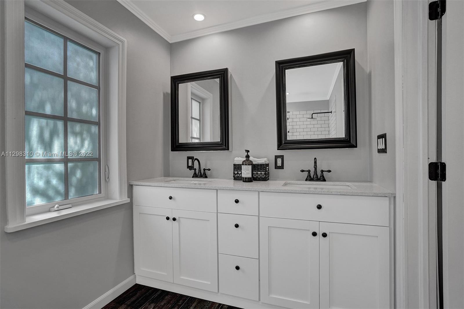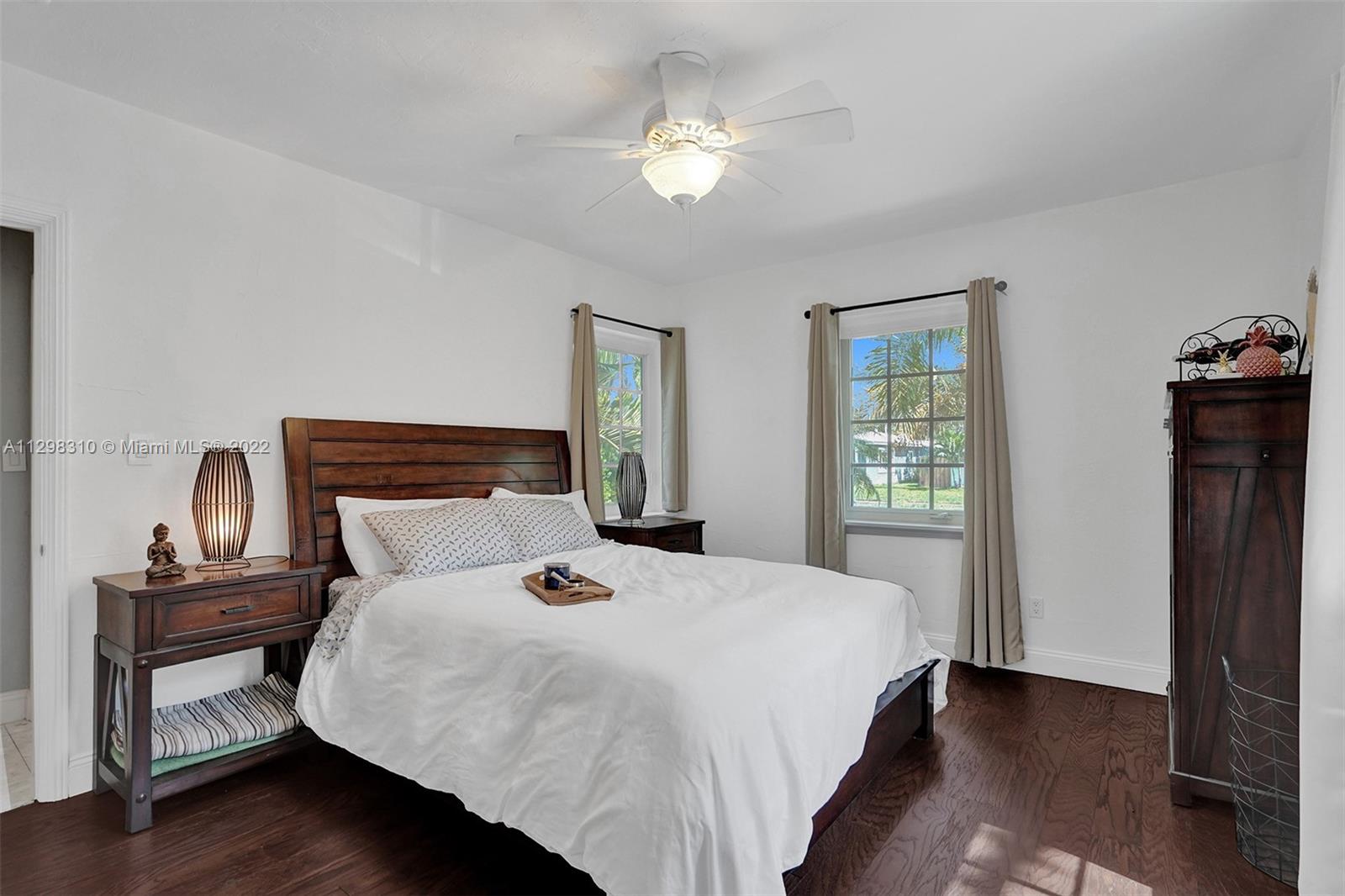 PRICED UNDER APPRAISED VALUE!! This is a well kept historic home in the heart of Hollywood Lakes within a mile to the beach and walking distance to downtown. This 3/3 split floor plan home has two master bedrooms lined with custom trim, composite stone flooring in living areas and wood flooring in all bedrooms. It comes equipped with 2 A/C units under 4 y/o, recessed LED lighting, ceiling fans in all bedrooms, and tankless water heater. Bathrooms are newly remodeled, home also has impact windows/doors and upgraded appliances. Irrigation is controlled by an app and runs on well water. Pool is a year old surrounded by natural stone decking and an outdoor shower. Large permitted storage shed also located in the back.
