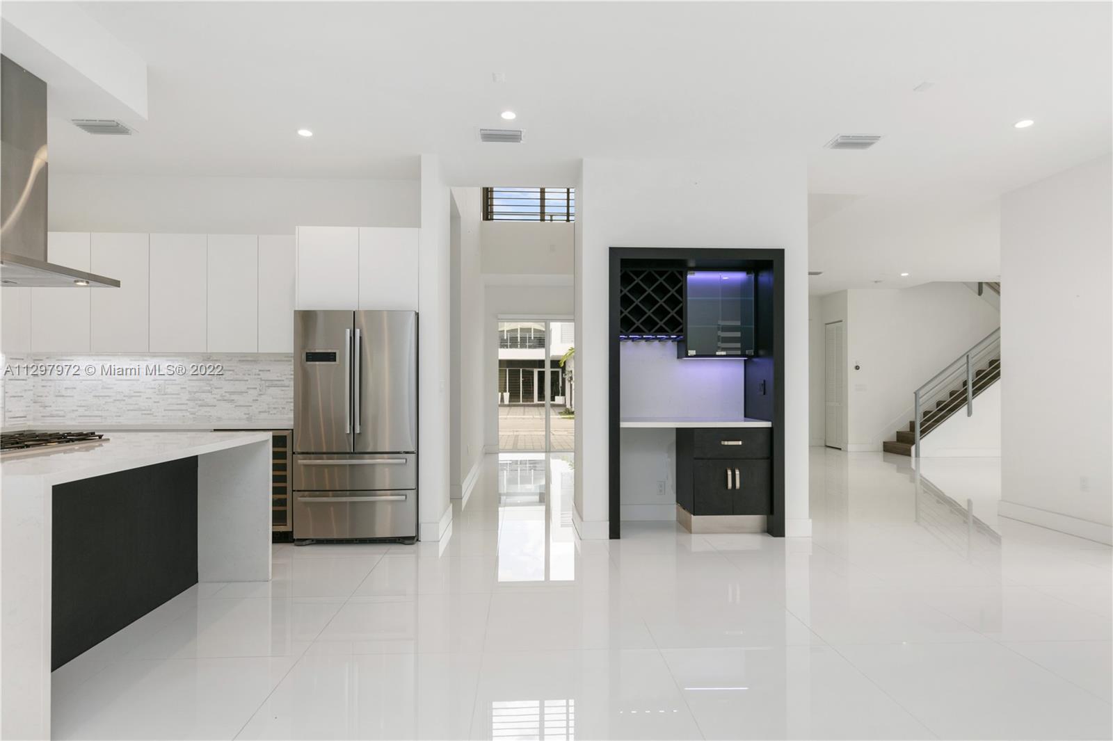 Welcome to the most iconic community in Doral. Luxury contemporary single-family home featuring 5 bedrooms with 5 bathrooms. One bedroom downstairs with a murphy bed, perfect for guest or office, and full bathroom with access to the patio. Plenty of upgrades: bar in the family room, extra pantry in the kitchen, extra storage in the garage, white metal fence, and much more. Open living spaces with white porcelain floor through-out the 1st level and wood in staircases and 2nd floor. Italian kitchen with quartz countertops & Bosch appliances and wine cooler. Concrete construction with impact windows & doors. Master suite has two custom walking closets, bathroom with dual sinks, roman tub, and a separate shower. Pool and outdoor BBQ area. Gated community with 24hrs security. Easy to show!