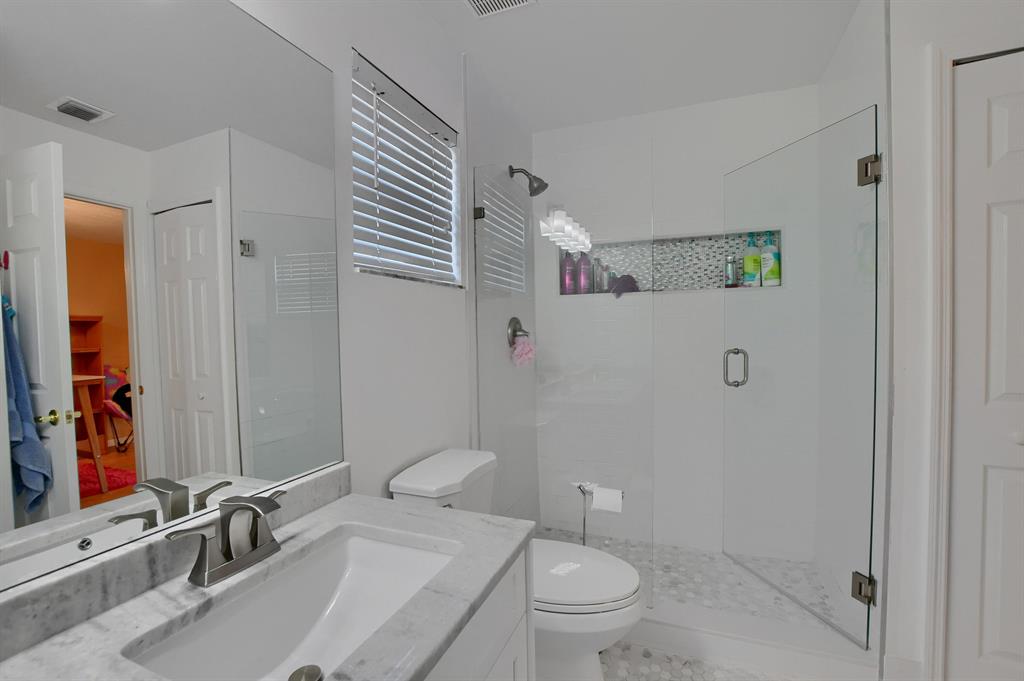 Spectacular prime location. Gorgeous updated 5 bed 3 bath with pool & lake view in beautiful Boca Falls close to top schools. New roof 2021. New AC 2022. Open floor plan with 20'' tile floors. Large downstairs master suite plus downstairs guest suite. Accordion shutters, expanded screened patio. Gated community with clubhouse, recently expanded and updated fitness room, resort-style pool, 6 tennis courts, playground & full basketball court. Security updates including trap gates and roving patrol make Boca Falls one of the safest neighborhoods in Boca. Hotwire fiber-optic TV and high-speed Internet included in HOA fees. South County Regional Park and Osprey Point Golf Course are across Glades Road.
