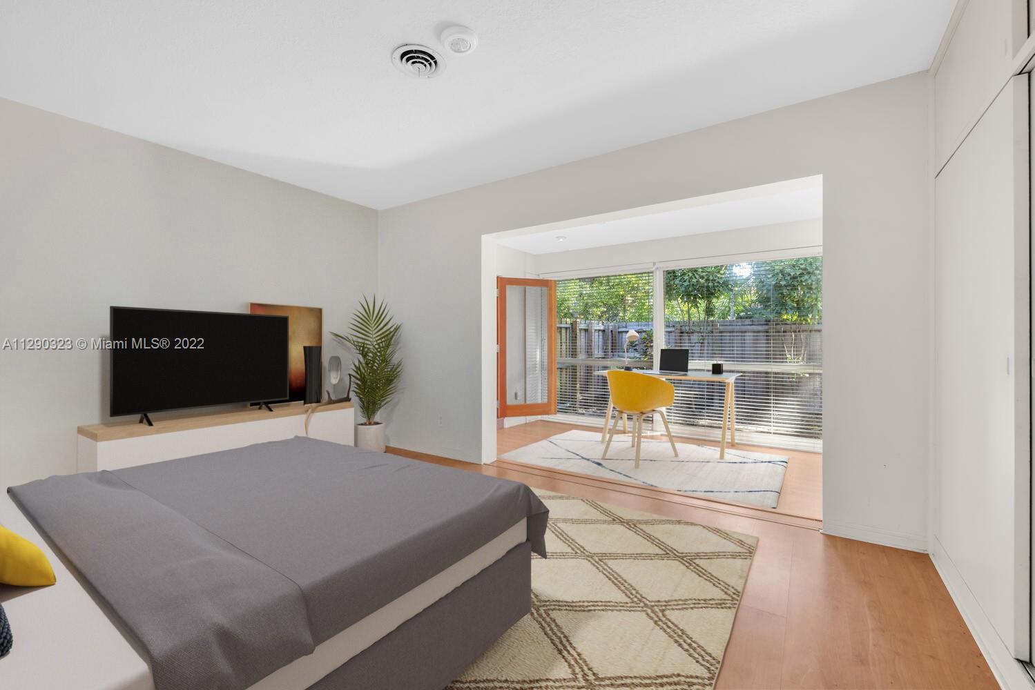 GREAT OPPORTUNITY! Transform this understated gem ---into a LARGE MODERN JEWEL - 2300 sq.ft. Currently an oversized 2 bedroom - Easy POTENTIAL for 3 bedrooms! Lots of NATURAL LIGHT with windows all around! Approx. 40 feet of the entire east WALL OF GLASS WINDOWS with views to private fenced courtyards. Original unexposed terrazzo floors (under laminate). Updated electric. Back yard is lushly green-space and (small) low maintenance - perfect for BBQ’s and quaint dinner parties! Endless possibilities with wide open spaces! Can present suggestions to better use sq.ft. & plans w/simple expansion (not moving kit nor baths)could be a beautiful wide open kitchen w/huge island and two entertaining areas. Average sales prices /sq.ft. over last 12 mo. Renovated @$475....do the math and buy this one.