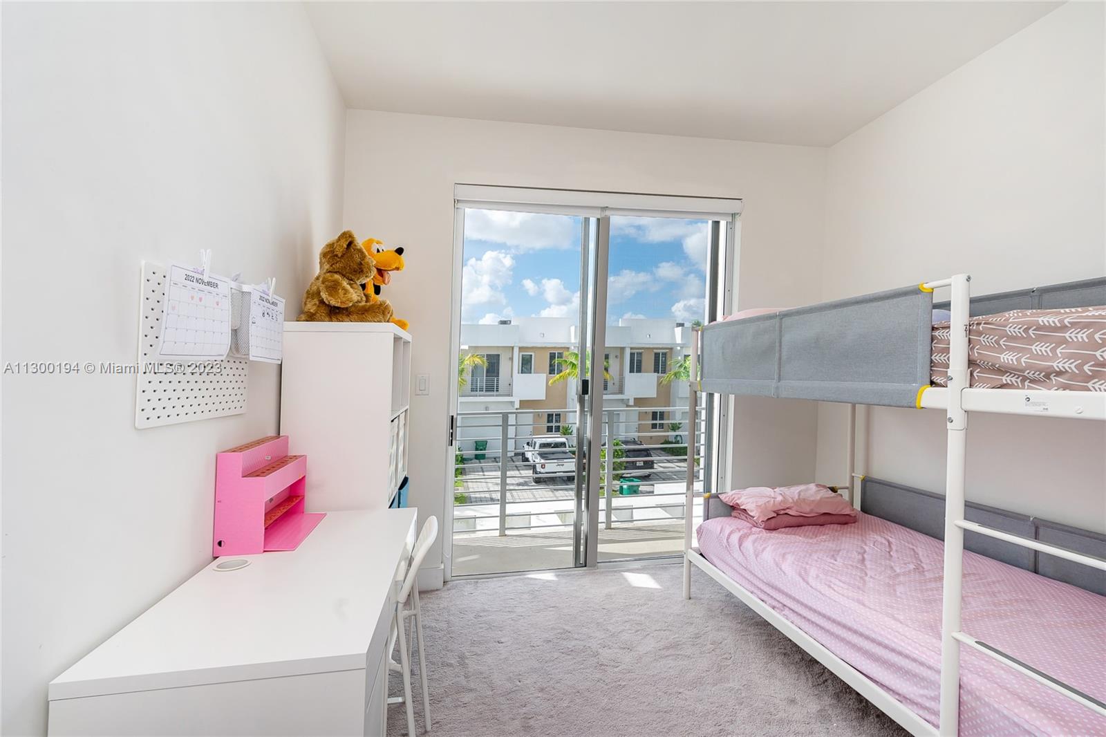 Modern 3 bedroom/3 bathroom townhouse at the gated community of Neovita at Doral. The property features 1 bedroom with a full bathroom on the 1st floor, master bedroom and 2nd bedroom on the 2nd floor, vaulted ceilings on living room, modern kitchen with Italian cabinets, quartz countertops, Bosch appliances, tile floors throughout the 1st floor and carpet on stairs and 2nd floor. The community offers gate security, security patrol, management on site, children play area, clubhouse with fitness room, and community pool. Excellent location, walking distance to shopping plaza that includes Publix, TJ Max, banks, and restaurants.