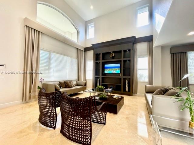 LUXURY LAKE FRONT HOME LOCATED ON A QUIET CUL-DE-SAC OFFERS 5BR/4BA & BOASTS A PROFESSIONALLY DESIGNED INTERIOR WITH CONTEMPORARY STYLED BUILT-INS IN LIVING ROOM & DINING ROOM, 24" MARBLE FLOORING IN THE SOCIAL AREAS, REAL WOOD FLOORS ON ENTIRE 2ND FLOOR. UPGRADED KITCHEN WITH TOP OF THE LINE THERMADORE S/S APPLIANCES, QUARTZ COUNTERTOPS & UP TO THE CEILING WOOD CABINETS, WINE COOLER LOCATED BY THE WET BAR IN THE DINING AREA. EQUIPPED WITH CONTROL4 AUTOMATION & NETWORKING SYSTEM OFFERING A PERSONALIZED AND UNIFIED SMART HOME SYSTEM TO AUTOMATE AND CONTROL CONNECTED DEVICES INCLUDING LIGHTING, AUDIO, VIDEO, CLIMATE CONTROL, INTERCOME & SECURITY. IMPACT WINDOWS THROUGHOUT. AMAZING SUNSETS FROM YOUR HEATED POOL, PATIO AND BEDROOMS.
