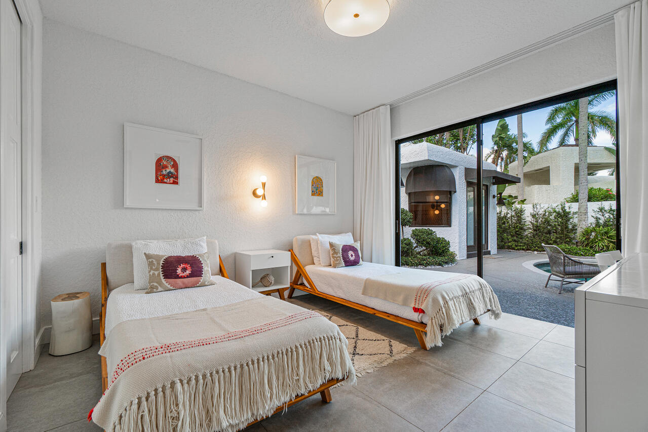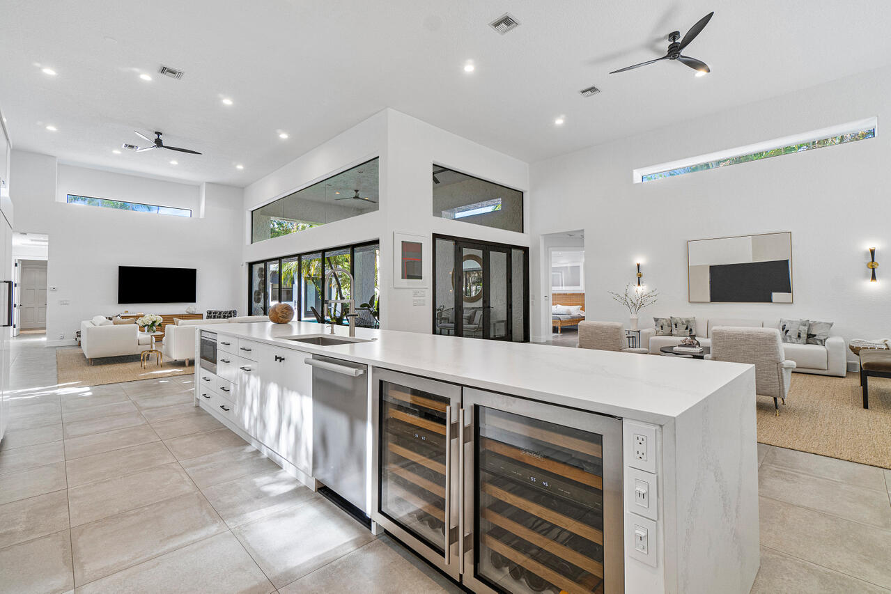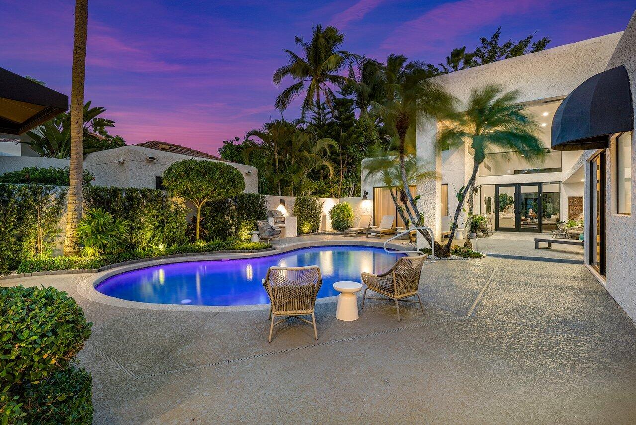 A chic sense of combined organic and modern elements creates the perfect balance for this one-of-a-kind home. Upon entering the private courtyard you are greeted by a charming balance of nature that connects seamlessly with the pool and outdoor entertaining spaces. Soaring ceiling heights are inundated with natural light while the open-concept design creates an impressive statement when walking into the main house. The sizable open kitchen with a Ceasar stone waterfall island smartly integrates Sub-zero refrigerator and dual wine coolers, Wolf appliances, and an intelligent design behind the matte white cabinetry. The master bedroom features tranquil views, dual walk-in closets and a clean-lined contemporary master bathroom with a glass feature wall that incorporates nature into the space.