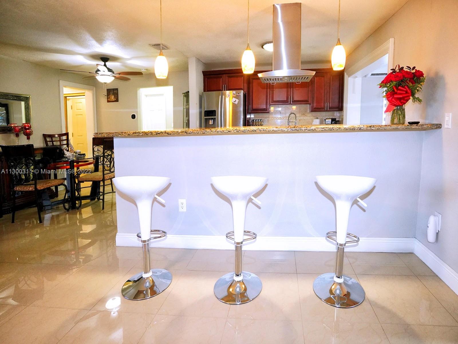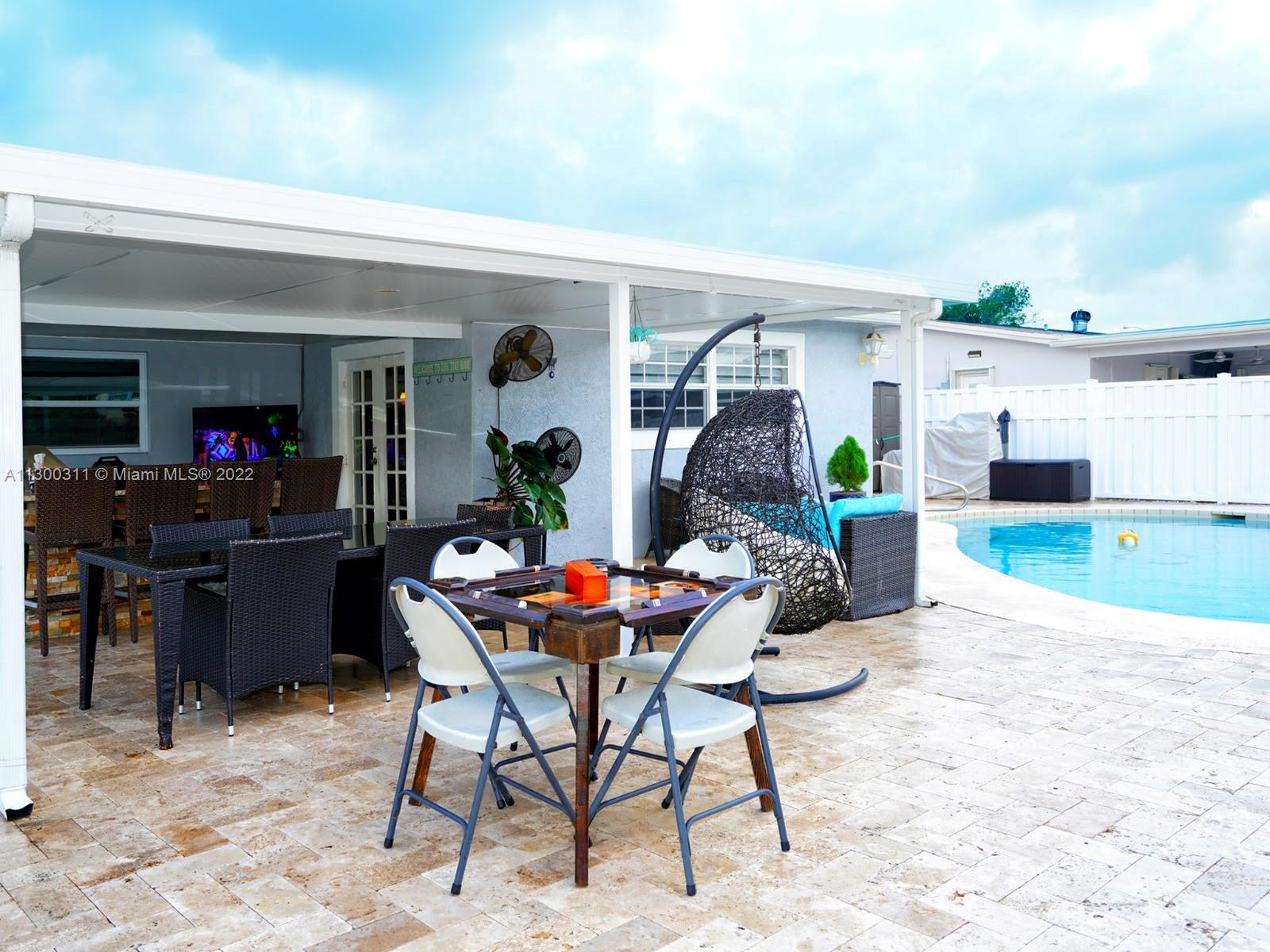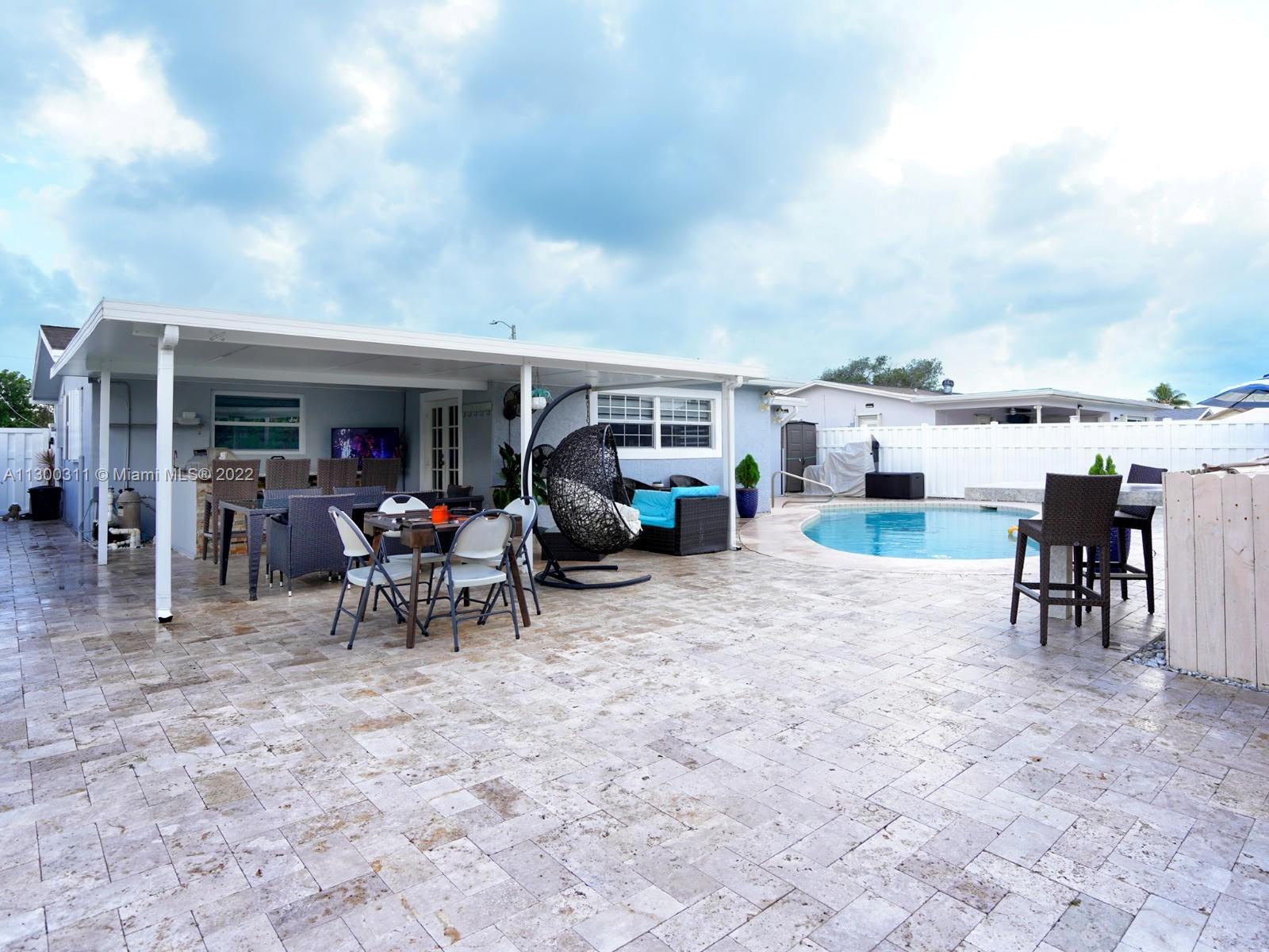 Enjoy this beautiful 3 bedroom/2 bath home. Updated open concept kitchen with Granite countertops, stainless steel appliances and GAS stove. Water Heater, Washer and Dryer work also with Gas, Huge Circular paver driveway allows plenty of parking. A Fenced-in backyard with an enclosed Private Patio, with travertine floor, a brand new outdoor Kitchen, and completing this picturesque offering is a refreshing pool overlooking the water.HOME WITH NO HOA!.