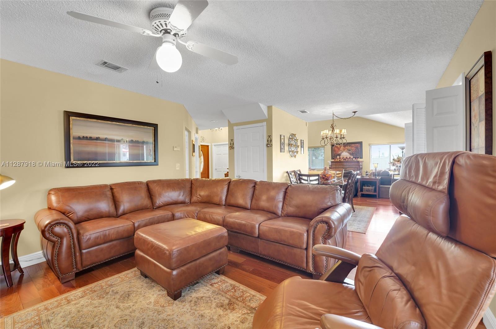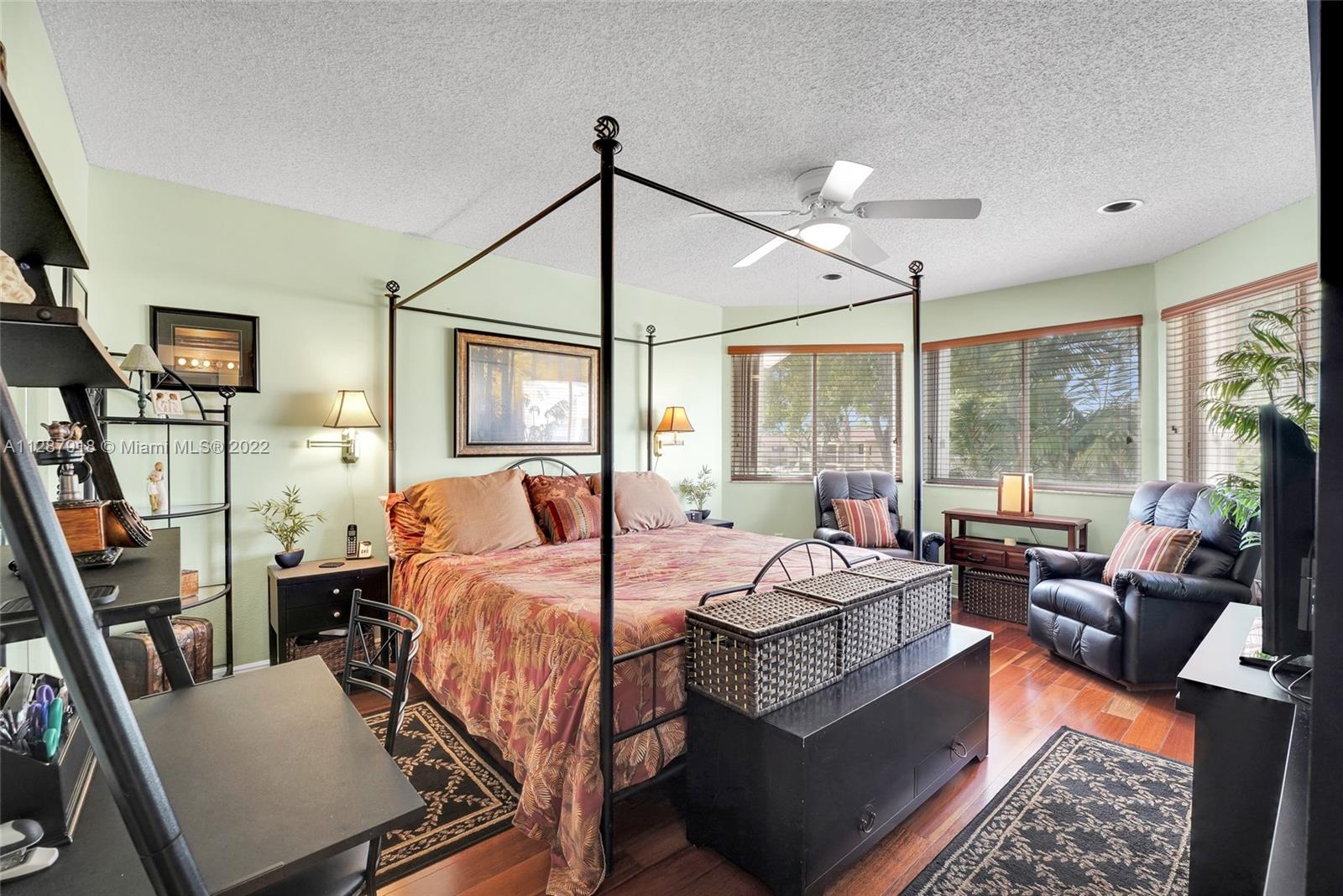 Lovely 2 story detached single family home on Cul-de-sac lot w/oversize yard in the Gated Community of the Moors / complete privacy in Backyard and Large Screened Marble Tiled Patio, great for entertaining. Tall Vaulted Ceiling as soon as you walk in, 1 bedroom & 1 full bathroom on 1st level along w/family, living, dining rooms, kitchen, laundry Room. 2nd Floor has bright master suite w/sitting area, beds 3 & 4 share a hall bathroom. Extra storage under stairs. Wood floorings in most areas. All Accordion shutters. FHA/VA Okay. Tile Roof 2009. Solar powered water heater. Great amenities: Clubhouse, Pool, Basketball, Tennis, Gym, Lake, Security & On Site Management. Close to 826, I-75, I-95, Highways, restaurants, schools, shopping centers. Inspection Done, Appraisal Done.