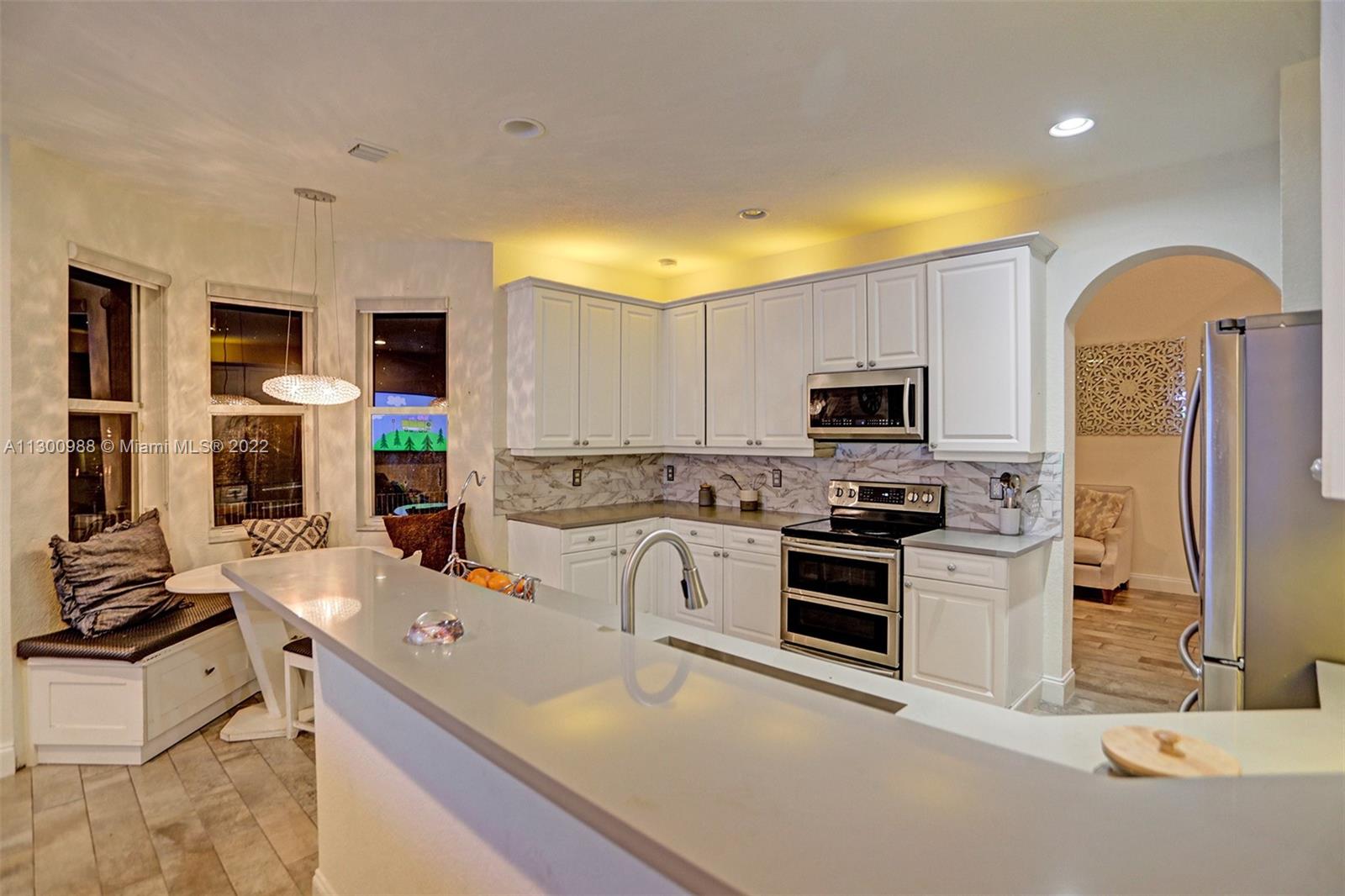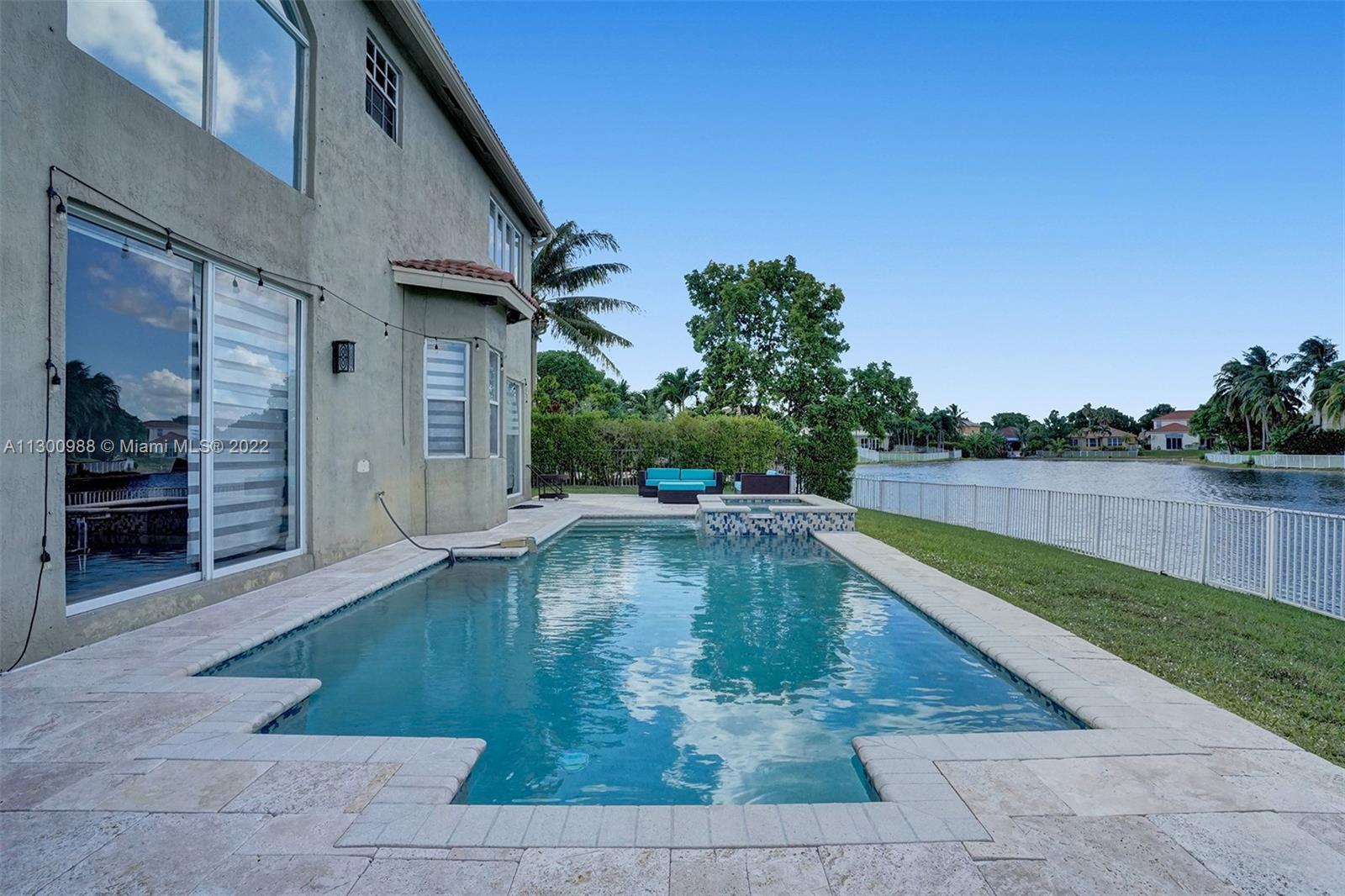 Located in the sought after “Monarch Lakes " area in Miramar. 5 bedroom 3 bathrooms 2 car garage . This is a waterfront property Updated kitchen w/Quartz counters and wood cabinets. Oversized open plan living room and dining room. Master bedroom with large walk-in closet/custom shelving. The master bedroom with water view. Upgraded Master bathroom with duel floating vanity, Rain Shower, recess lighting. First floor features 1 full bath and 1 bedroom, laundry room. Large backyard for entertaining. Pool with Heater and Hot Tub. Great central location near all shopping, schools, highways,, parks, dining and more