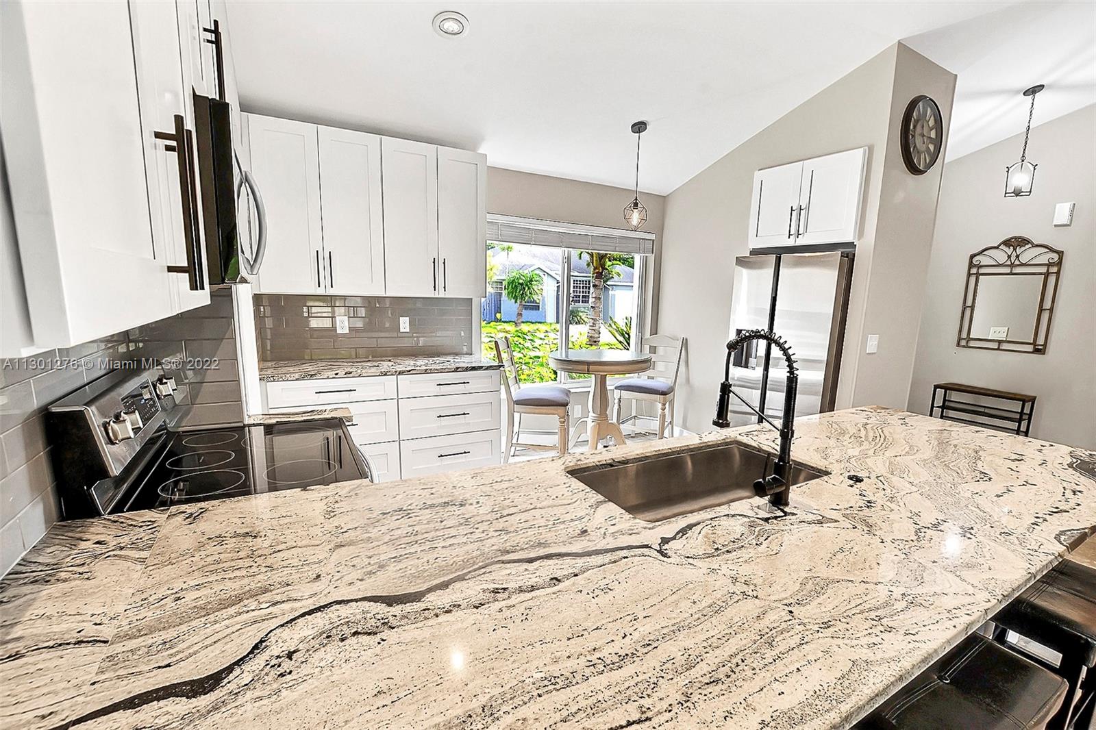 NESTLED IN THE HIGHLY DESIRABLE NEW PROVIDENCE COMMUNITY WHERE WESTON, DAVIE, & SUNRISE MEET THIS SPECTACULAR 3 BEDROOM 2 BATHROOM HOME WAS LOVINGLY RENOVATED INSIDE & OUT. ENJOY THIS OPEN CONCEPT HOME UNLIKE ANY OTHER FEATURING, POLISHED CONCRETE FLOORING, ELEGANT VAULTED CEILINGS, & TASTEFUL DECOR THROUGHOUT. STUNNING KITCHEN BOASTS MODERN SHAKER CABINETS, EXOTIC GRANITE COUNTERS, & STAINLESS STEEL APPLIANCES. NEW FRONT WINDOWS & FRONT & BACK DOORS 2020. TRANQUIL PRIMARY SUITE W. VAULTED CEILINGS. GORGEOUS ENSUITE BATH HAS STYLISH WOOD TILE, DOUBLE VANITY W/ MARBLE TOP, & AWESOME SHOWER. A HUGE FENCED YARD HAS PLENTY OF ROOM FOR A POOL. THE EXTENDED LANAI IS PERFECT FOR OUTDOOR DINING & RECREATION. ZONED FOR DESIRABLE WESTON SCHOOLS. FABULOUS LOCATION CLOSE TO I-75, SHOPS & RESTAURANTS.