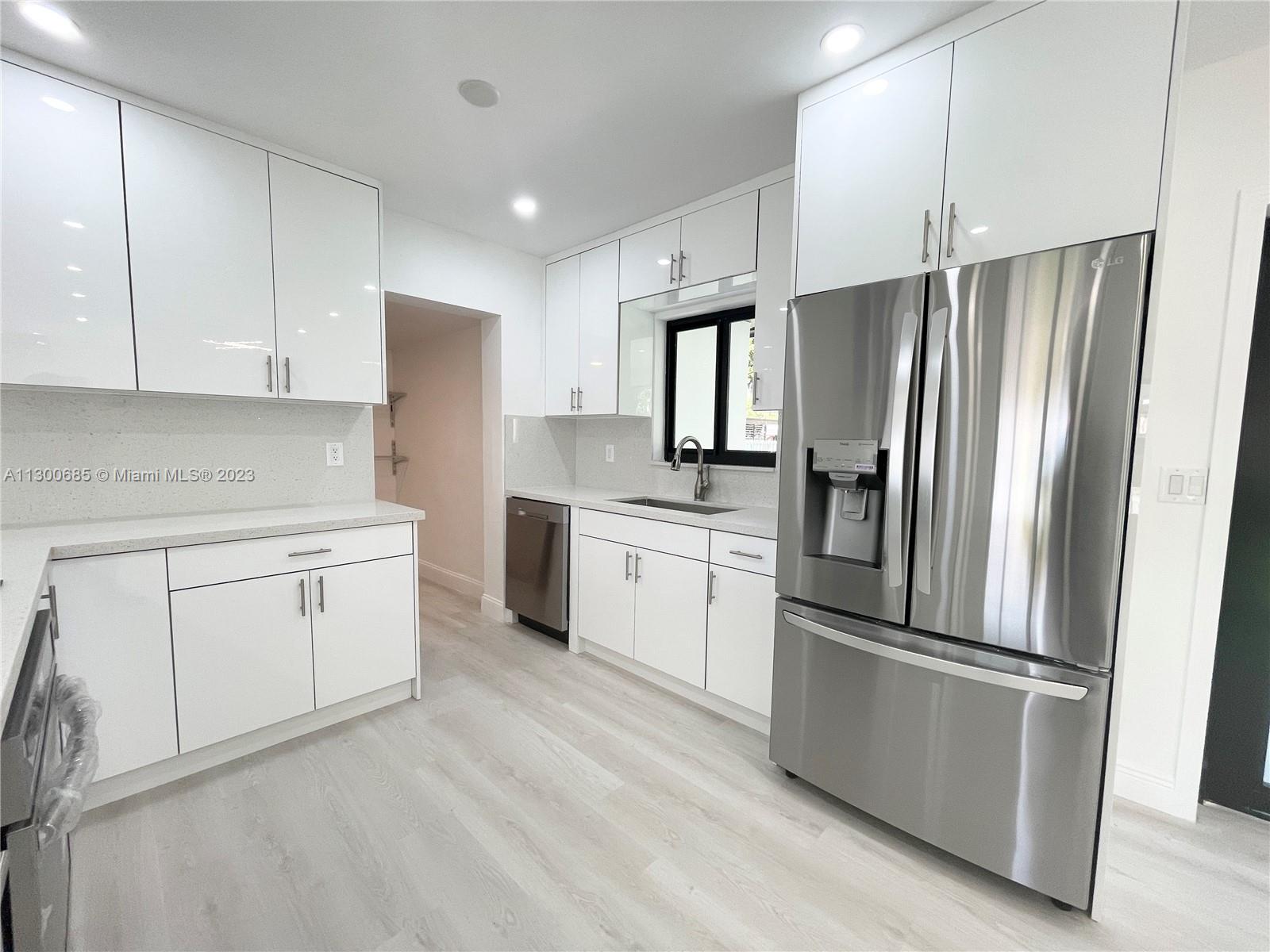 Completely updated 3/2 home in a beautiful Hialeah residential area. With almost 10,000 sf lot, this home features a new modern kitchen, white quartz countertops with a waterfall island, stainless steel appliances, ceiling-mounted range hood, white acrylic cabinets. LED lighting. Porcelain tile floors. Interior doors and closet doors. Updated bathrooms with vanities. New interior and exterior freshly painted. Covered parking. New 2022 Roof with 3D shingles. New car garage door. New impact windows and doors. Large backyard offers a covered terrace with new outdoor ceiling fans. Newly planted lawn with functioning sprinkler systems.THIS IS A SINGLE FAMILY HOME WHICH CAN BE USED AS A 3/1 AND 1/1 WITHOUT MAKING ANY ILLEGAL CONVERSIONS. CASH ONLY OR NO APPRAISAL CONTINGENCY.