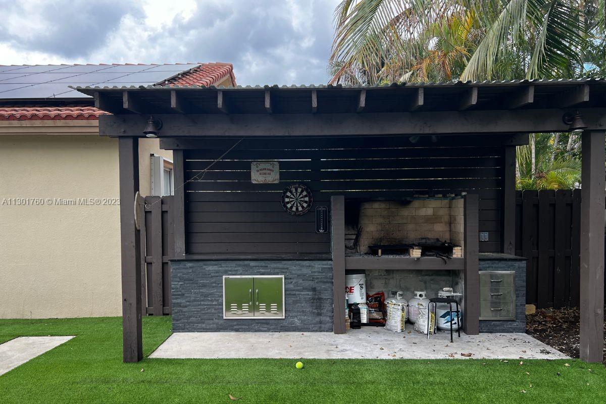 In the exclusive and private community of Doral Isles, Antilles, closest island to the clubhouse. 4 beds, 2 full baths, 1 half bath easily converted to full bath and separate den for your home office. In the house you will find a completely renovated kitchen with solid wood custom cabinets, A beautiful, covered patio with wet bar, icemaker and commercial drinks refrigerator. No maintenance backyard with artificial turf covered BBQ and outdoor shower and even room for a pool., Amazing Club house with 2 pools, Jacuzzi, Gym, restaurant, jogging path, basketball court, soccer field, tennis courts & more. Summer camp program for residents only. Gated and 24 Hr. security. A+ Schools, minutes from supermarket, parks, restaurants, international airport and beaches. Motivated seller.