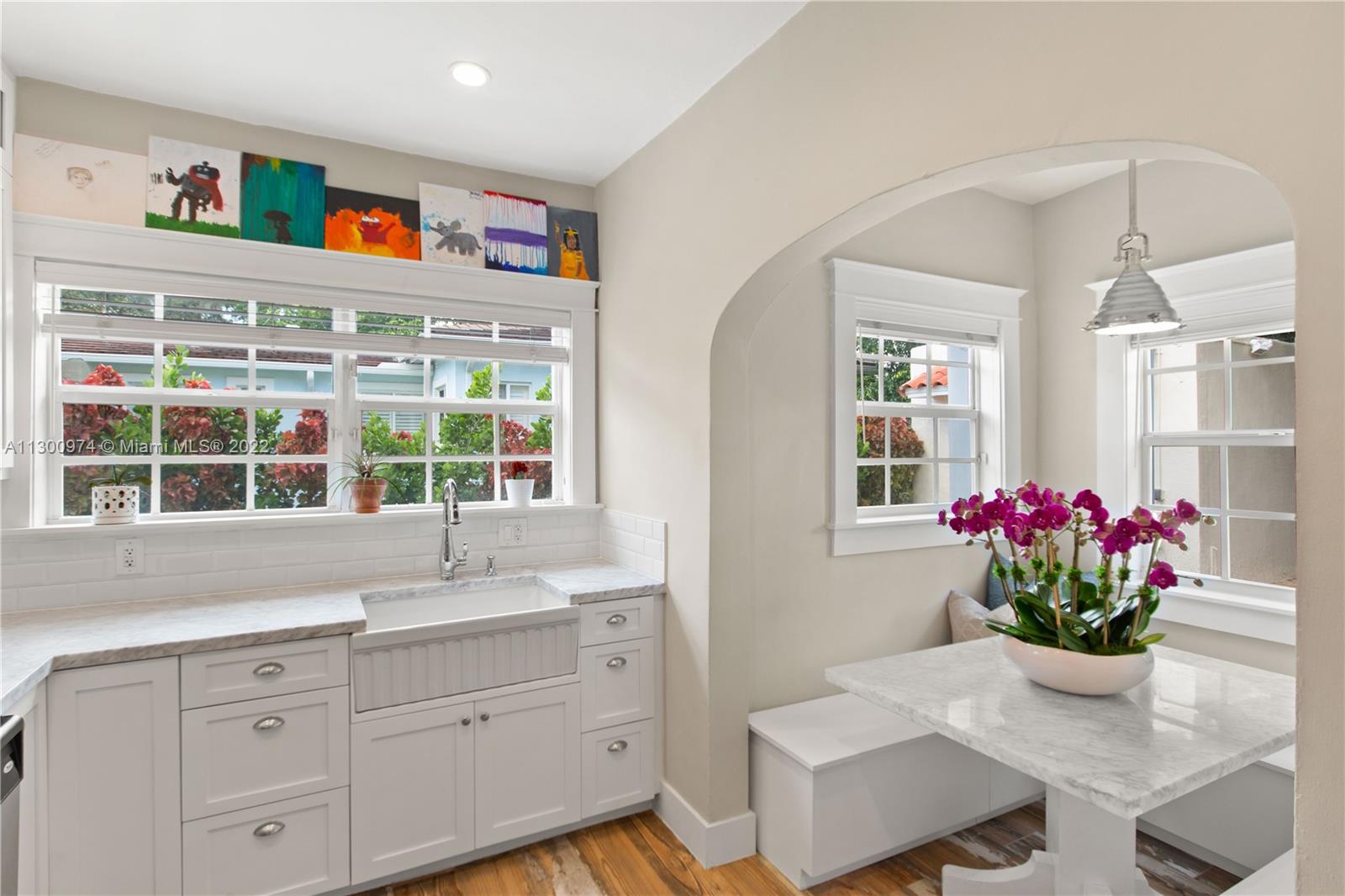 Charm and beauty reside on Alesio Avenue. Sunlight pours into this beautiful home, just blocks from all that downtown Coral Gables has to offer shopping, restaurants & culture. The property features a 3/2 main house with a detached 1/1 cottage. Great layout, fireplace, and arched transitions complement modern enhancements like new A/C, impact windows, and updated kitchen and bathrooms. It has room for a pool, has a large foyer and fruit trees. The updated kitchen has a built-in Breakfast nook with views of the yard. The professionally landscaped yard includes a Chicago Brick patio, driveway, and carport. This Old Spanish charmer will have you at “Hello!”