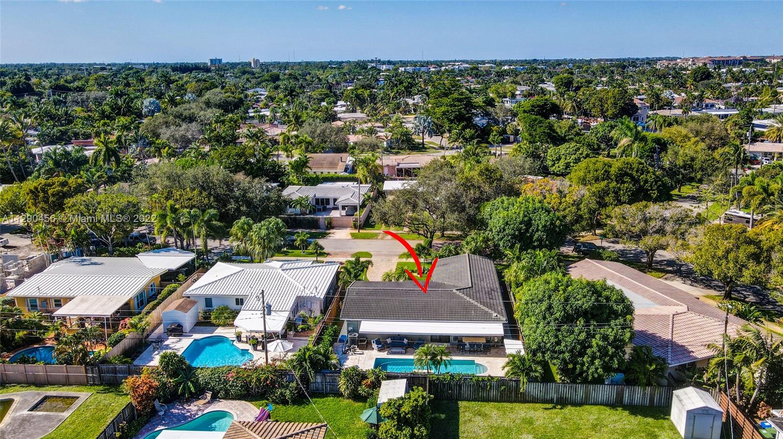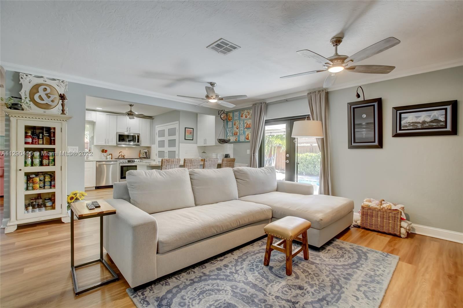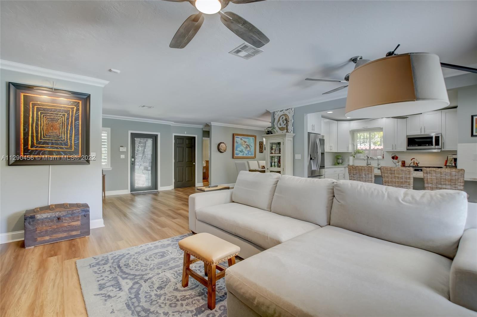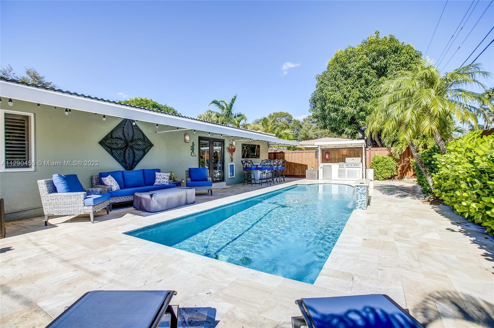 Located in tranquil Poinsettia Heights w/ mature tree lined streets & sidewalks, this immaculately updated home w/ split floor plan will please even the pickiest! Serene backyard w/ clusia hedge surrounding entertainment area w/ gas grill & burner, speakers, refreshing salt chlorinated pool w/ colored light, landscape lighting, travertine deck & new canvas shade canopy. French doors lead to kitchen w/ new cabinets & LG stainless appliances, including natural gas range. Granite breakfast bar w/ open concept view to family room. High impact windows & doors, in addition to code approved decorative Bahama shutters. Whole home 21kw Generac Generator. Upgraded electric, tankless gas h2O heater, 2019 Trane AC, 2017 paver driveway, '02 Roof. Perfect location near shops, beach, mall, downtown!