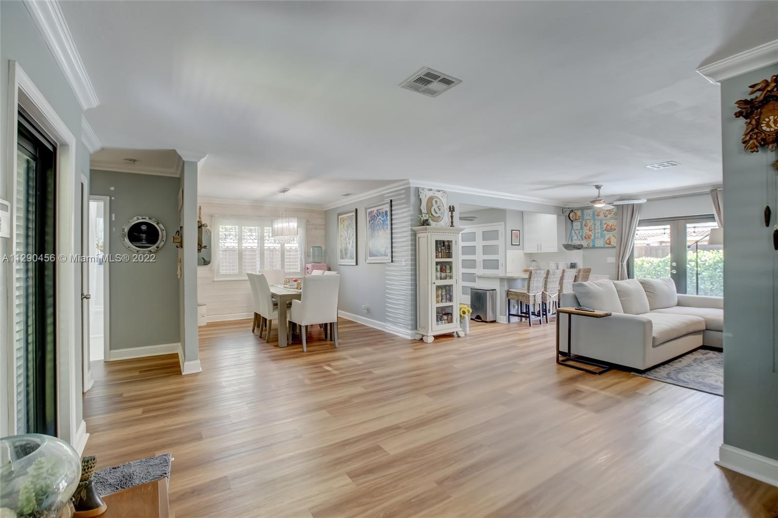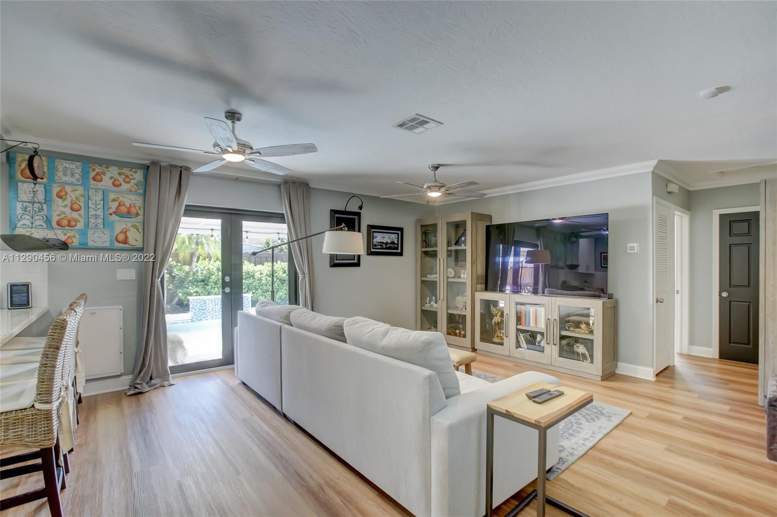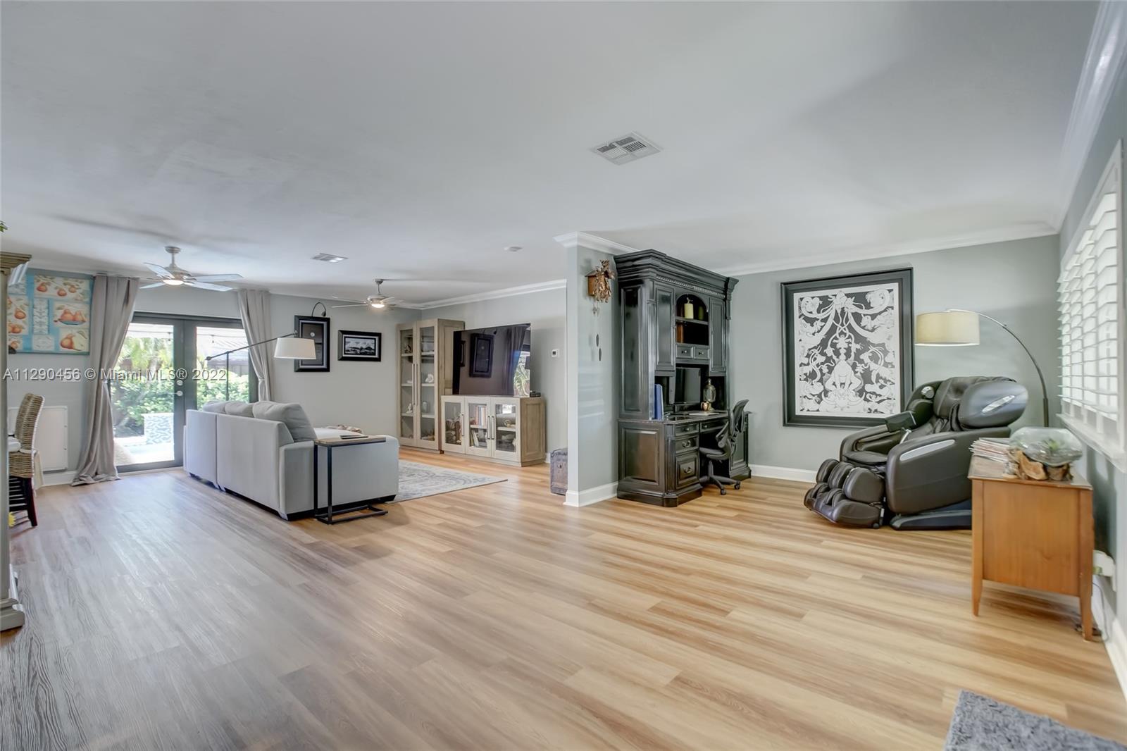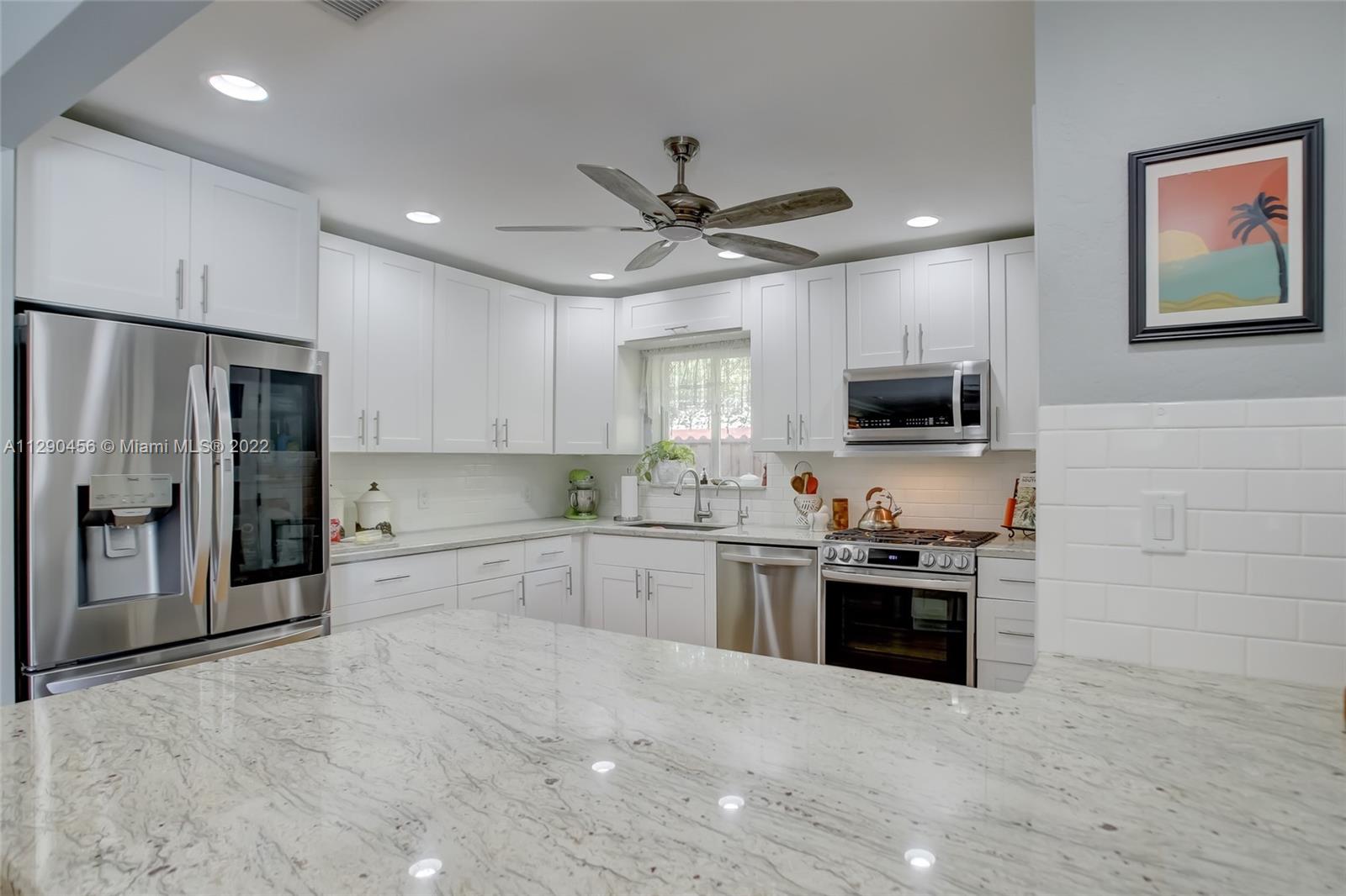 Located in tranquil Poinsettia Heights w/ mature tree lined streets & sidewalks, this immaculately updated home w/ split floor plan will please even the pickiest! Serene backyard w/ clusia hedge surrounding entertainment area w/ gas grill & burner, speakers, refreshing salt chlorinated pool w/ colored light, landscape lighting, travertine deck & new canvas shade canopy. French doors lead to kitchen w/ new cabinets & LG stainless appliances, including natural gas range. Granite breakfast bar w/ open concept view to family room. High impact windows & doors, in addition to code approved decorative Bahama shutters. Whole home 21kw Generac Generator. Upgraded electric, tankless gas h2O heater, 2019 Trane AC, 2017 paver driveway, '02 Roof. Perfect location near shops, beach, mall, downtown!