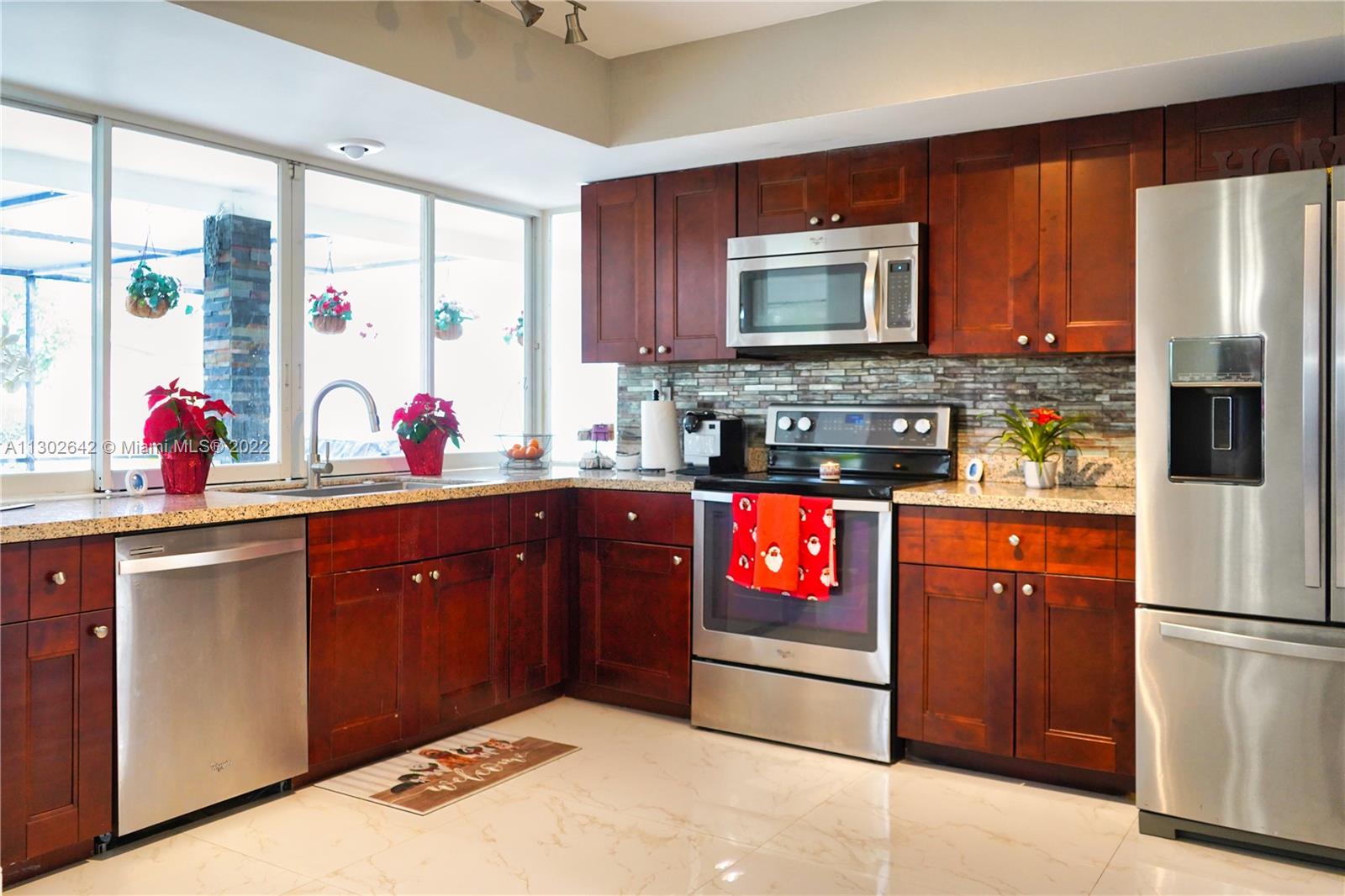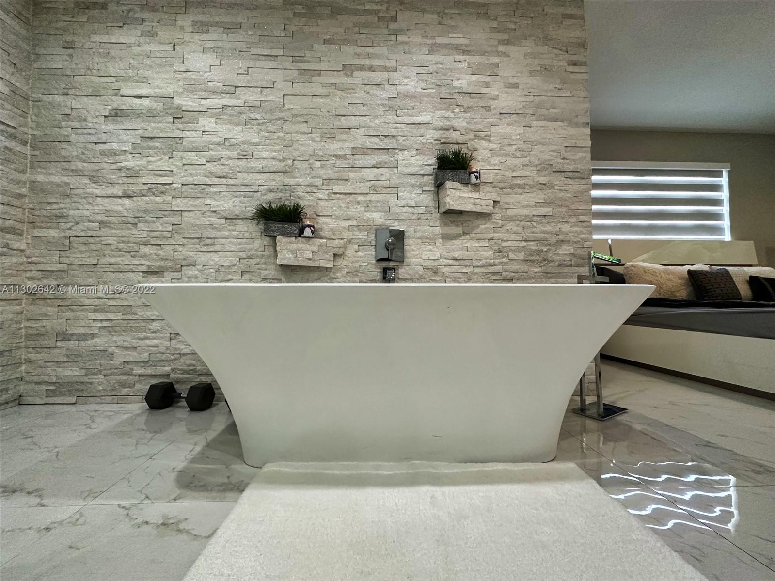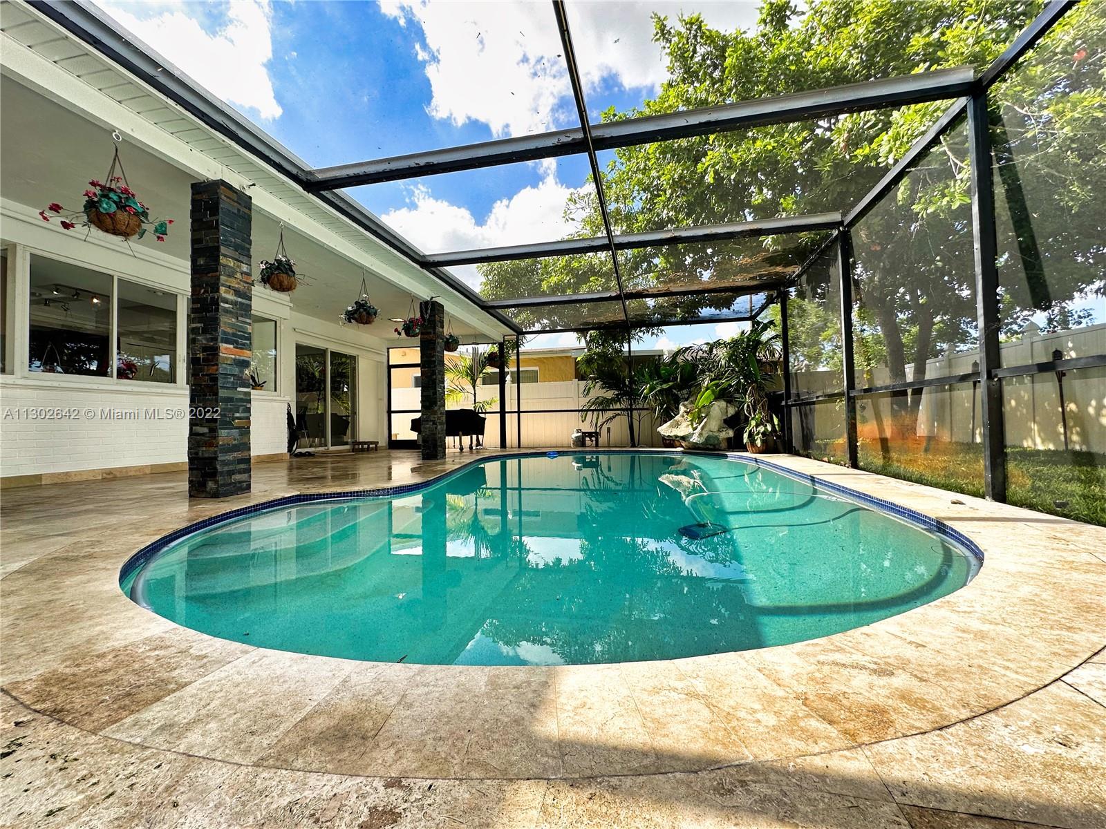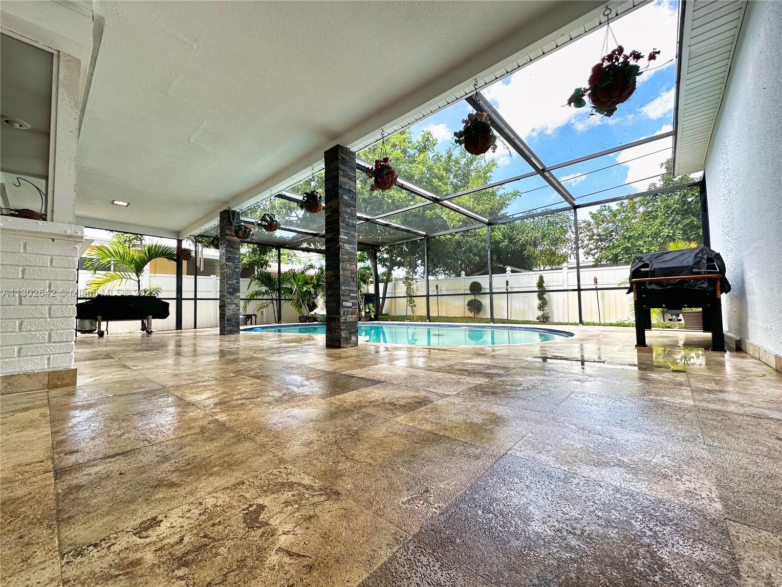 Absolute gorgeous home in Miramar. Beautiful renovated with 48" porcelain flooring throughout. Very bright and spacious. Covered terrace and pool area. Luxurious master bed/bath with shower and freestanding Italian tub and dual sink. Travertine exterior flooring. This home has a + room that can be used as a 4th bedroom or a play room. An amazing home for entertaining and family living. Brand new roof 2 years old. Zebra window blinds throughout. Completed turn key and price to sell. Financing available. Receiving highest and best.