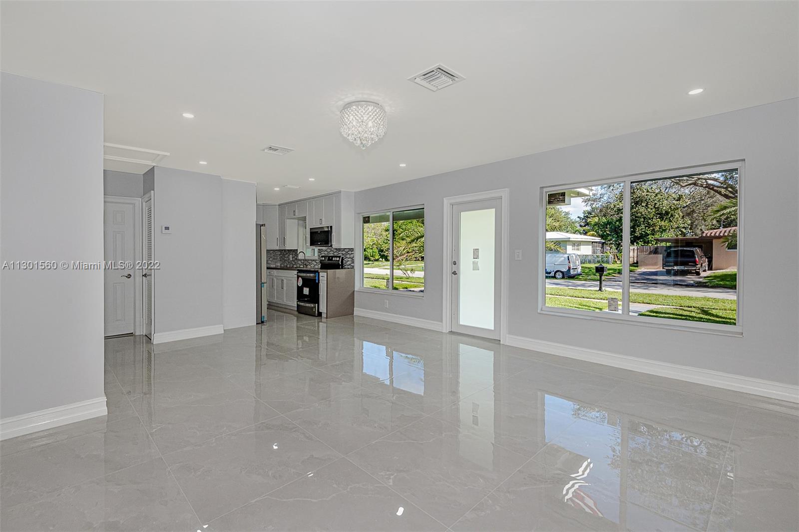 ATTENTION, Gorgeous completely remodeled home is the best home in the neighborhood, its seat on a corner lot with access to major roads. Everything in this home is new, roof, insulation, plenty of lights from impact windows and doors and recessed light, 32X32 porcelain tiles throughout the house, drywalls, kitchen cabinets, stainless steel appliances, bonus completed laundry room, 4 bedrooms, 3 full bathrooms, professionally done electrical wired and breaker box, water heater, AC+HVAC duct, pump with sprinklers system, big backyard with mango trees, room for a swimming pool + more, privacy fence with double doors to access from the circular driveway, this is a stress-free home for many years to come, one block from Golf Country Club!