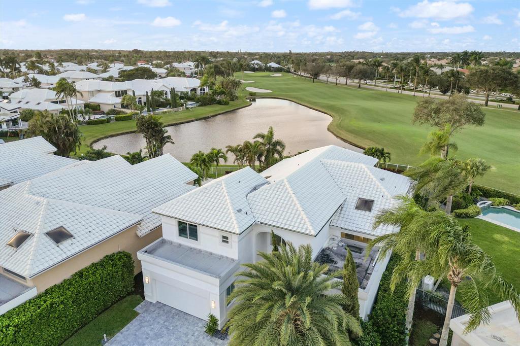 Rare opportunity to own a spectacular home with unobstructed panoramic lake and golf views! Stunning estate home that is designed with precision and purpose, featuring 4241 sq. ft. of immaculate indoor space with 4 bedrooms and 5.5 bathrooms. This home has been professionally designed and completely remodeled with interior furnishings by Restoration Hardware. Open floor plan with large format Italian porcelain floors, a lush ebony oak staircase with an elegant stainless cable railing, soaring 20 feet ceilings, and luxurious custom built-ins. Elegant European kitchen w/ stainless steel Bosch appliances. It has a power screened-in patio and a completely renovated pool.