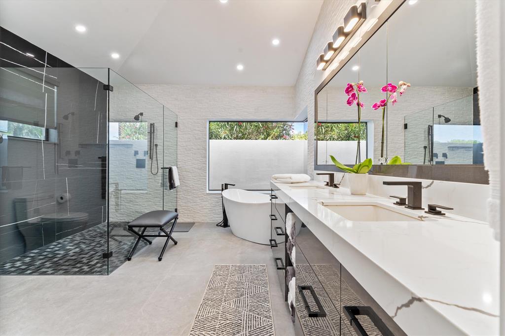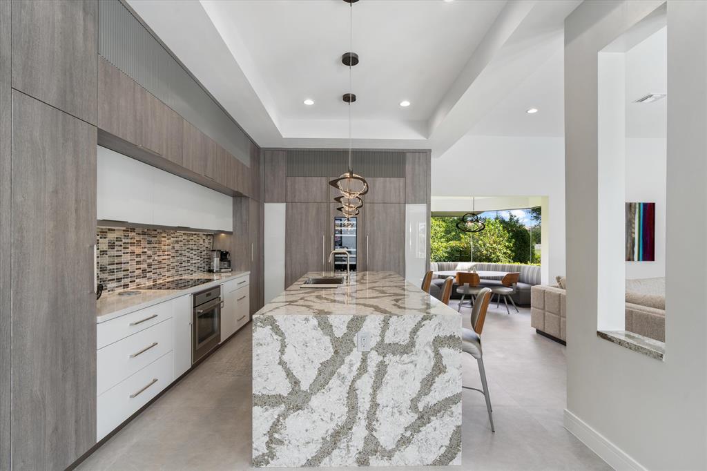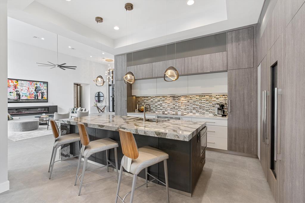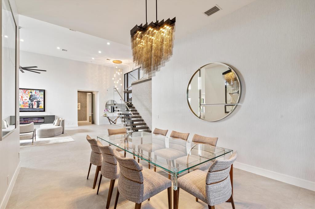 This palatial residence embodies the ultimate Florida luxury lifestyle and features 4,472 square feet under air with exceptional finishes throughout. Designed with intention, every detail of this four bedroom, five and a half bath home has been thoughtfully planned and appointed, from the breathtaking curves to the soft modern lines to the vast open spaces and grand ceilings. The gourmet kitchen is a chef's dream with Thermador appliances, quartz countertops, plentiful storage and a wine fridge. Adjacent breakfast nook is flooded with natural light. First floor primary suite with custom fitted closets and luxurious his and hers bathrooms.