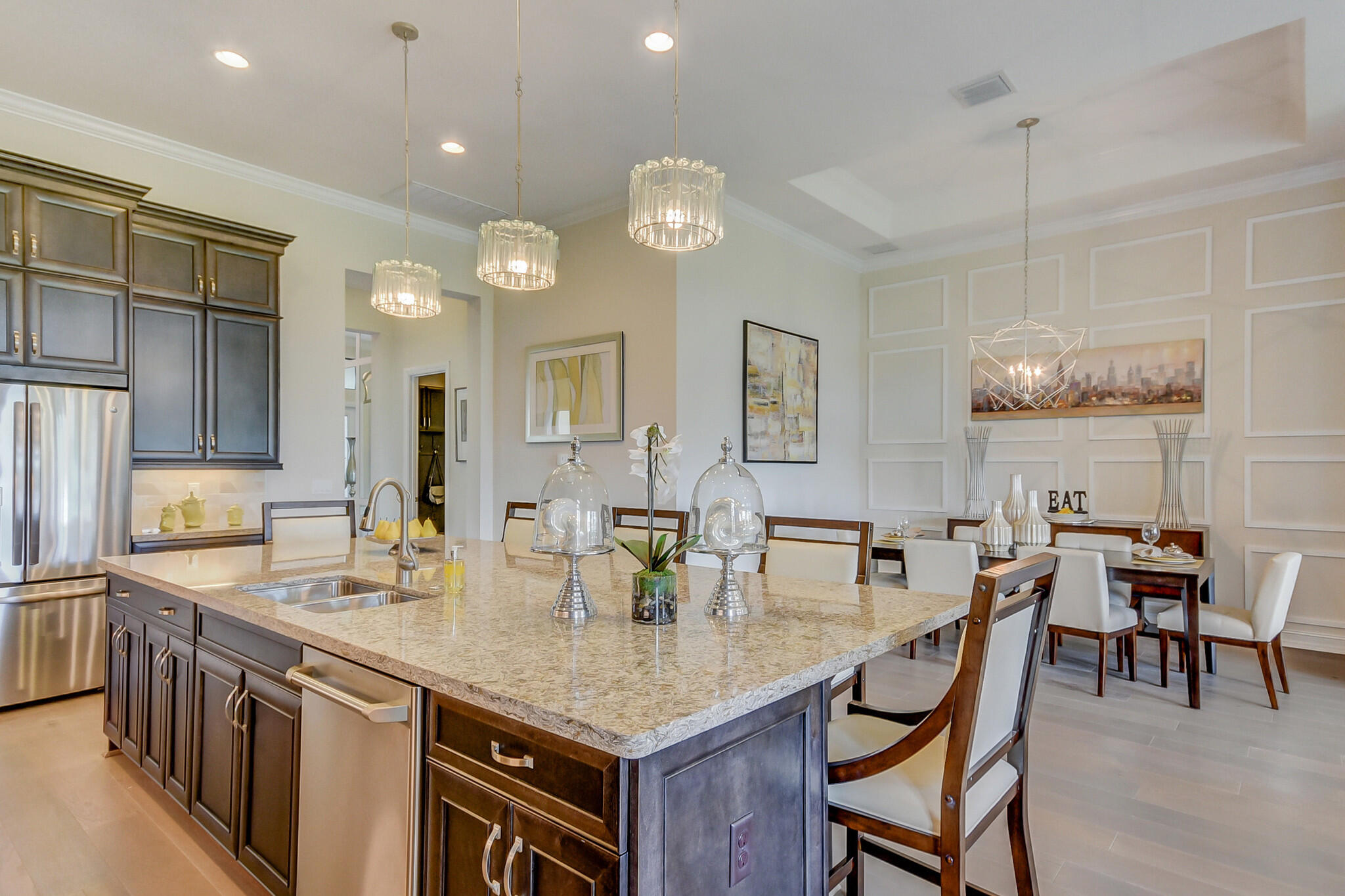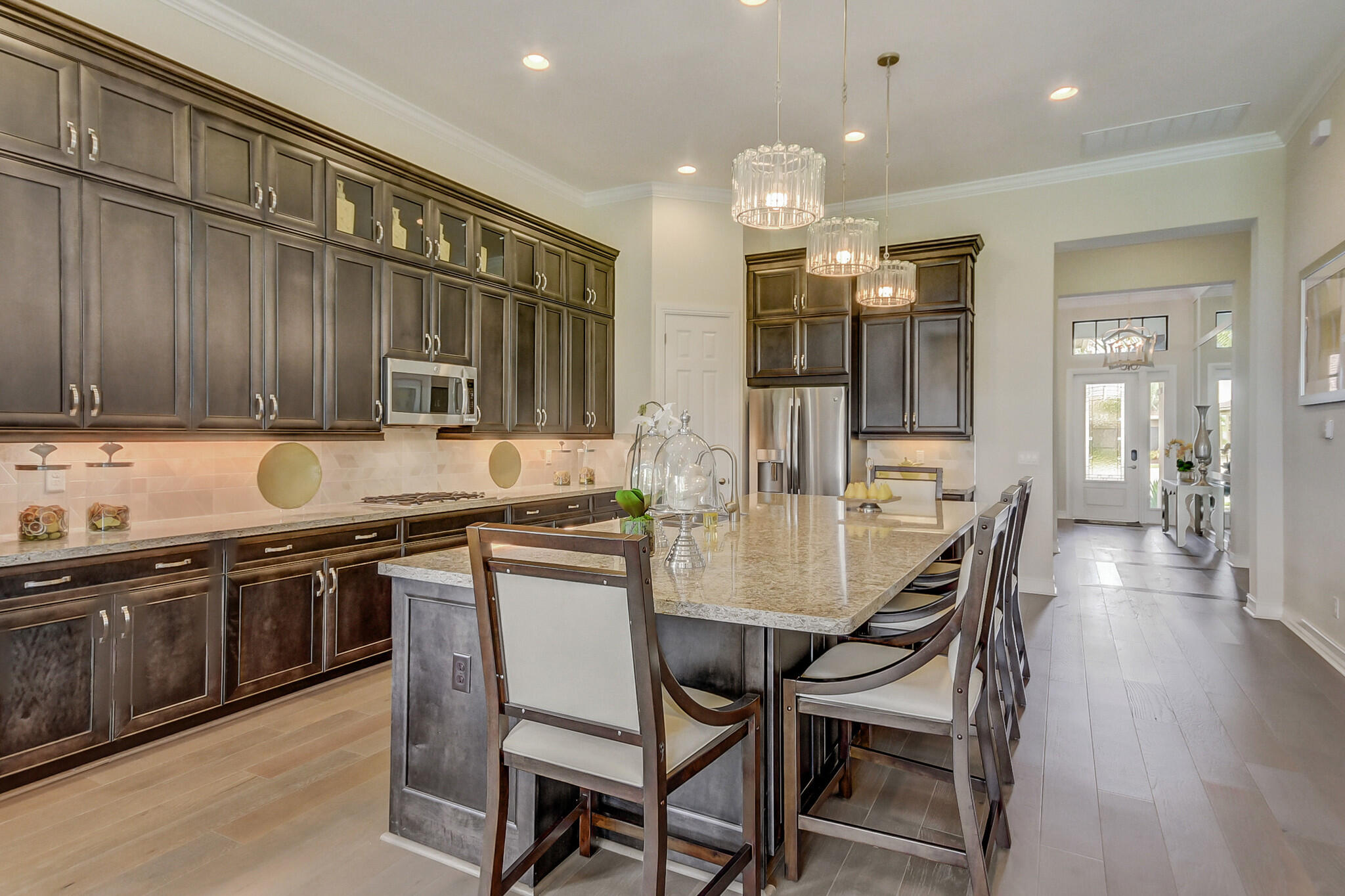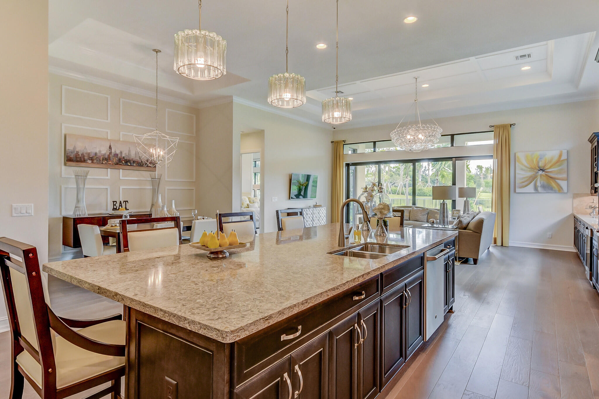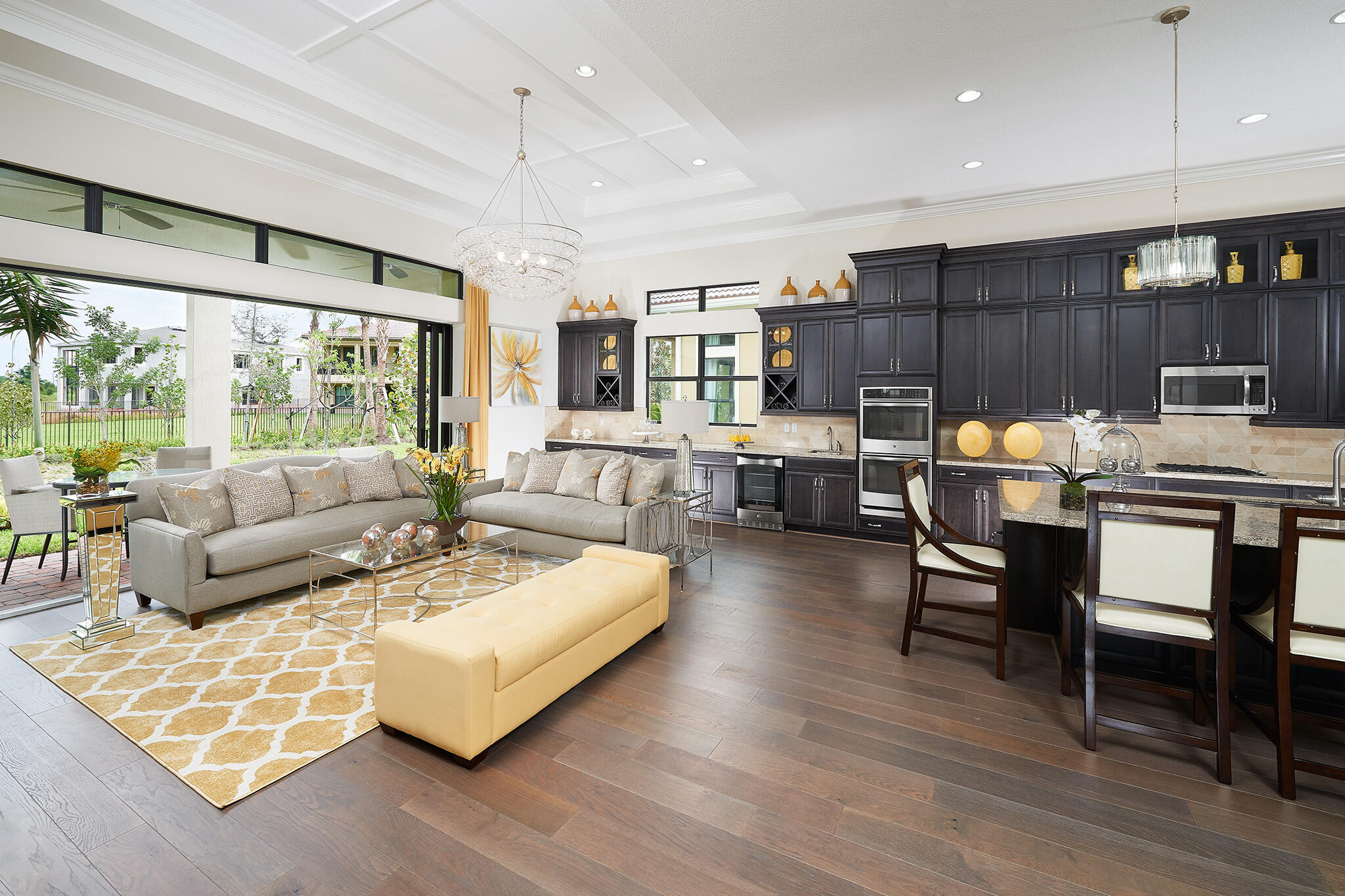 The Opal home design is a 1 story, 2 bedrooms, 2.5 Bath, 2 car garage. Gourmet-inspired kitchen and high-endfinishes, owner's ultra spa bath with frameless shower enclosure, great room with pocket sliding glass doors, GE stainless steel appliances, Coastal Bliss 7' Plank engineered hardwood floor throughout the home including in the bedrooms and 24 x 24 oversized tile in the bathrooms and laundry. Four Seasons at Parkland is an elegant master planned community that features luxury style homes situated around lakes and parklike settings. Community amenities include: clubhouse, tennis courts, pickle ball, bocce ball and 2 pools. Available December 2022.