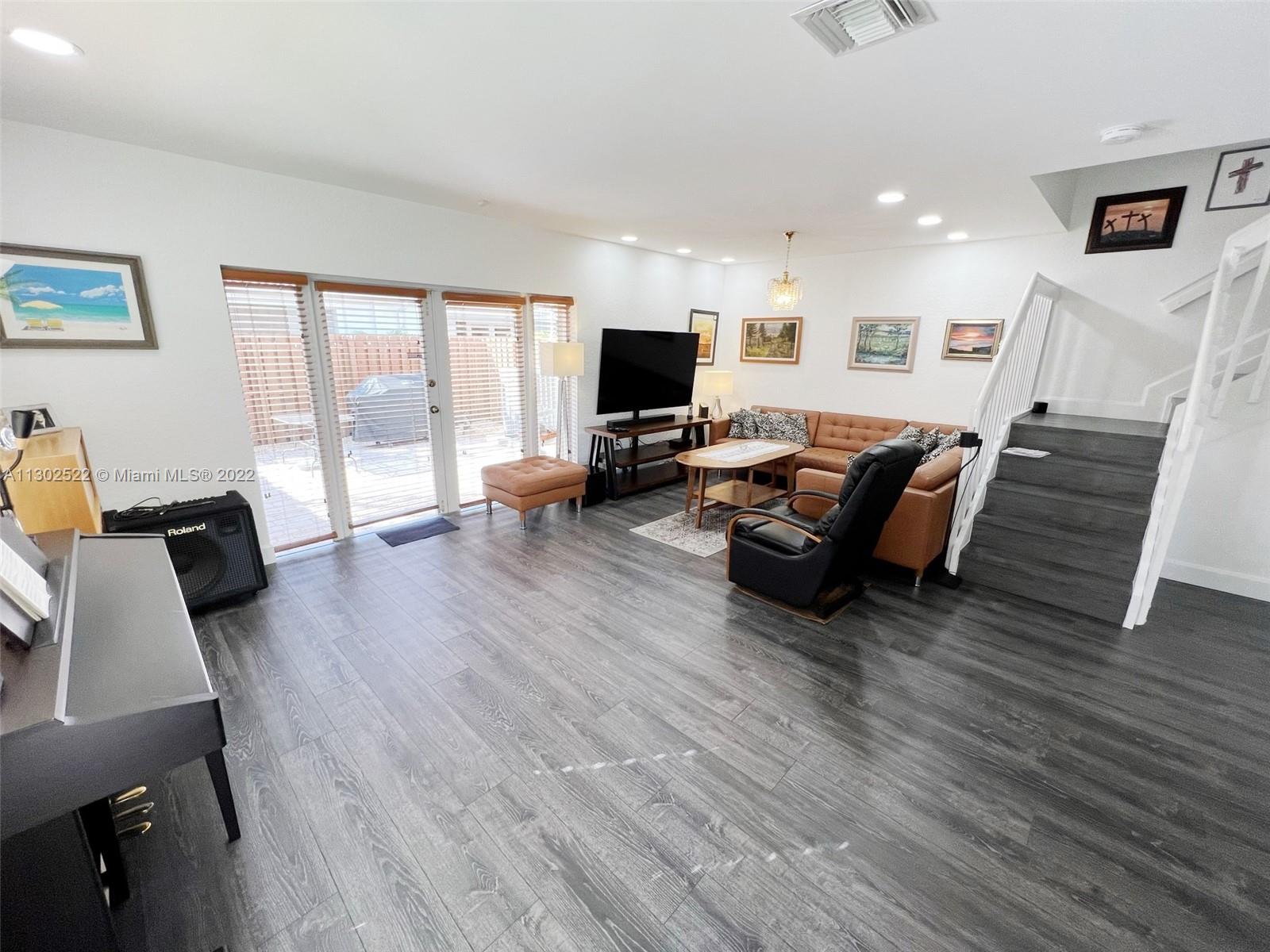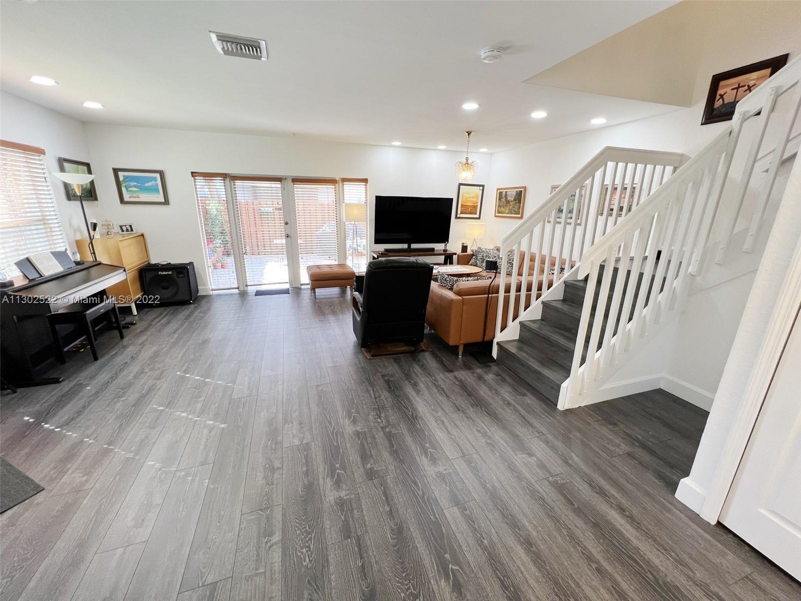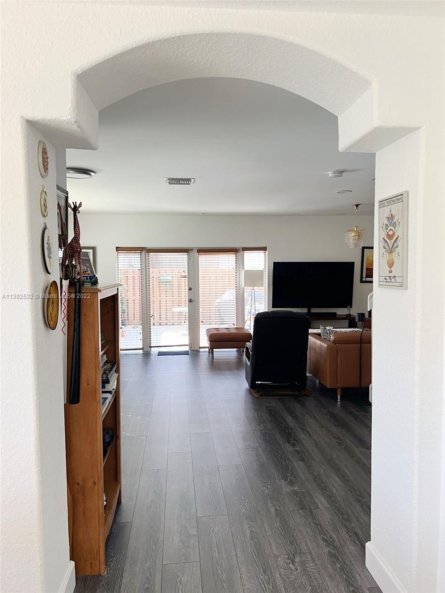 Unique, spacious, and beautiful CORNER UNIT, a 2-story townhouse in one of the best areas of Doral, located in the quiet gated community of Dimensions at Doral. 3 bedrooms, 2 1/2 bathrooms. Updated kitchen with quartz countertops, new appliances, laminated floors on both levels, accordion hurricane shutters, den/office/loft upstairs, gutters with a net. New patio wood fence. AC 4 ton 2016. One car garage and plenty of space for driveway parking. Close to restaurants, shopping centers, A+ Rating Charter Schools, supermarkets, and more. Also great for investors. A must-see!