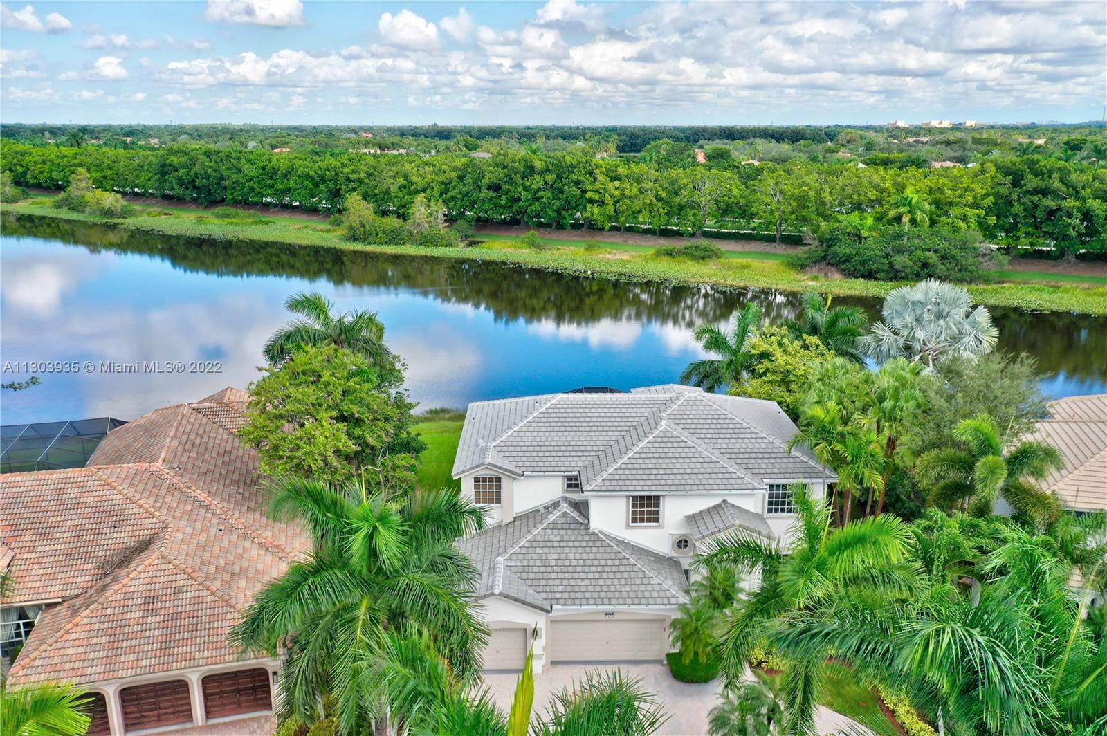 Finally, the home you have been waiting for with a NEW ROOF (2021) in coveted Weston Hills. Full accordion shutters in this two-story dramatic entry home. Gorgeous panoramic un-obstructed lake view, sunset views included. COMPLETE EXTERIOR PAINT 2022, 3 car garage AND circular driveway. 5 bedrooms include a spacious first floor bedroom/study & cabana bath. Soak up the lake view from your eat-in kitchen, family room & expansive paved deck. Entertainers dream! Upstairs features mahogany wood floors, all renovated bathrooms, 4 bedrooms include a Jack & Jill bathroom, a 2nd bedroom also en-suite. Expansive primary bedroom includes vaulted ceiling, 2 walk-in closets, exotic marble, extra sitting area and a great view of the lake from your screened in private balcony- a true luxury retreat.
