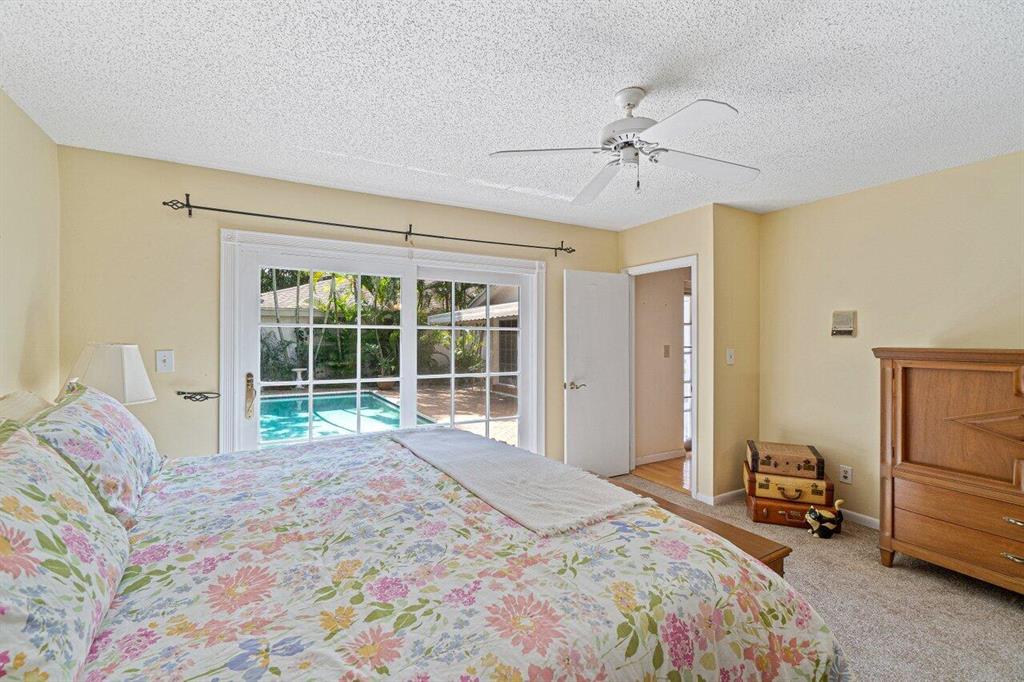 Price Improvement! Very charming home in the sought after community of The Greens of Emerald Hills. Enter the living room with open beam, wood, vaulted ceiling, accompanied by the awesome built in bookshelf with rolling ladder ( it's 15 ft tall!) The floors are hard wood, in the liv rm - tile in kitchen and new carpet in master. The private pool/patio area has lush landscaping, brick pavers and an awning for shade. plus a side sitting area - great for entertaining and great views from the kitchen and fam room. All the sliders and kitchen window are impact, there are shutters for the other 4 openings. This house is NOT updated, but has been well maintained by owner of 22 years. Motivated seller.