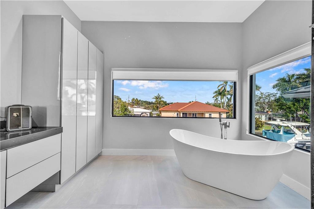 New construction ultra-luxurious waterfront home. This home is clean, fresh, and modern, with so many upgrades. There are 4 beautiful ensuite bedrooms. The main bedroom is elegant, with a lovely sitting area and a walk-out patio overlooking the water for your ultimate relaxation. It also includes a kitchenette, 2 large his and hers walk-in closests with full cabinetry, and an oversized bathroom with double sinks, a huge shower, and a tub. The gourmet kitchen features all Jen Air appliances, a Spartan hot and cold water filtration system, Stunning Quartz Super White countertops, and Island. The floor is Italian porcelain throughout. Outdoor living includes a patio and a covered summer kitchen. For your boat, you have 65' of new dockage with an updated seawall.