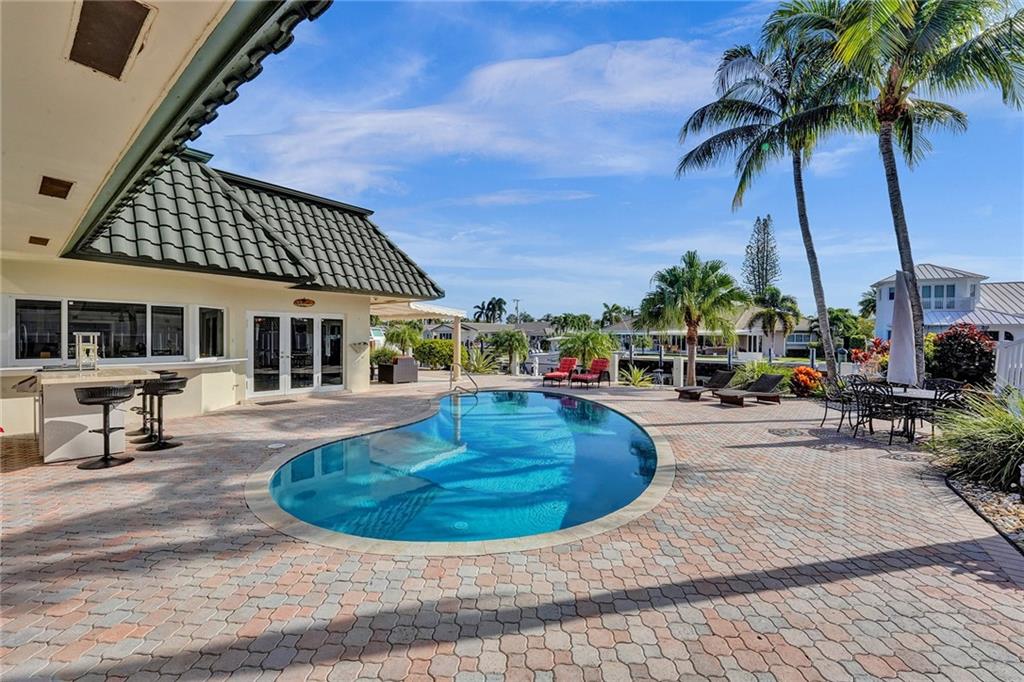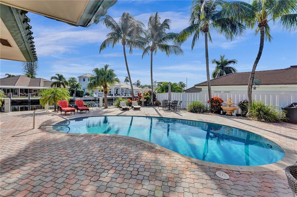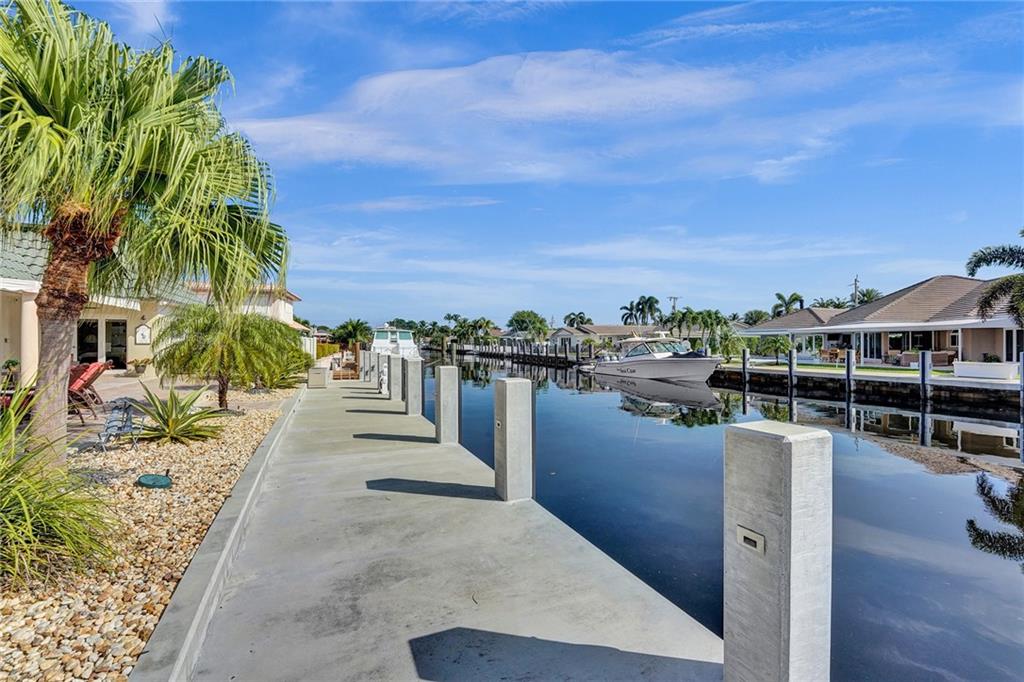 Live the waterfront dream with this single story pool home on 93' of Deepwater (No Fixed Bridges!) on a protected canal in The Landings neighborhood. Recent renovations include new roof in 2020 and new concrete dock and raised seawall in 2021. Hurricane impact windows and doors, new AC and remodeled saltwater and heated pool. Recent kitchen refresh includes brand new counters and new appliances. Incredible backyard with covered porch-enjoy the East facing backyard for all day breeze and morning Sun. Split bedroom plan, indoor laundry and spacious 2 car garage with new epoxy floors. Master suite offers large bath and nice closets. Two living spaces including family room/eat in space off kitchen. 4th bedroom is currently used as office with no closet.