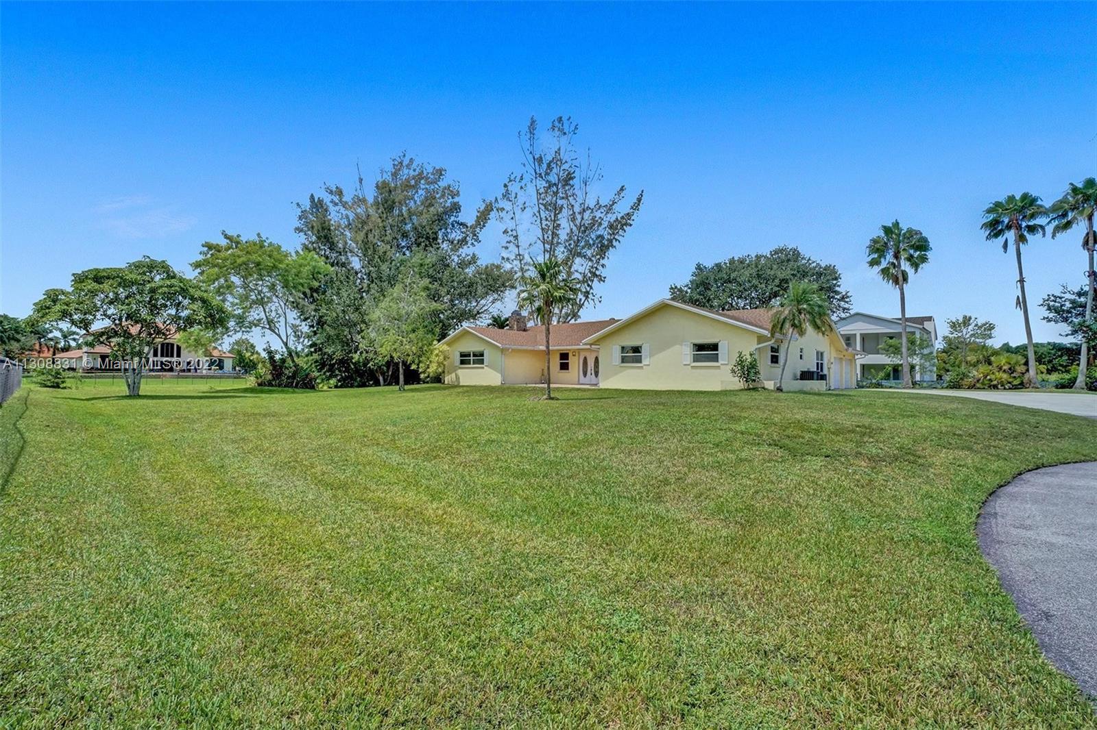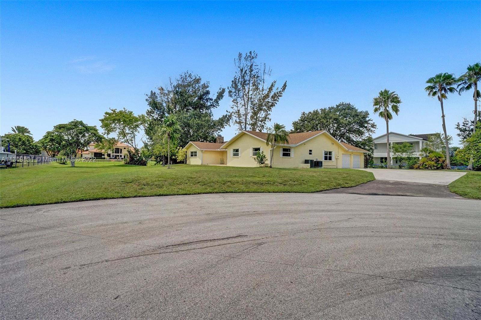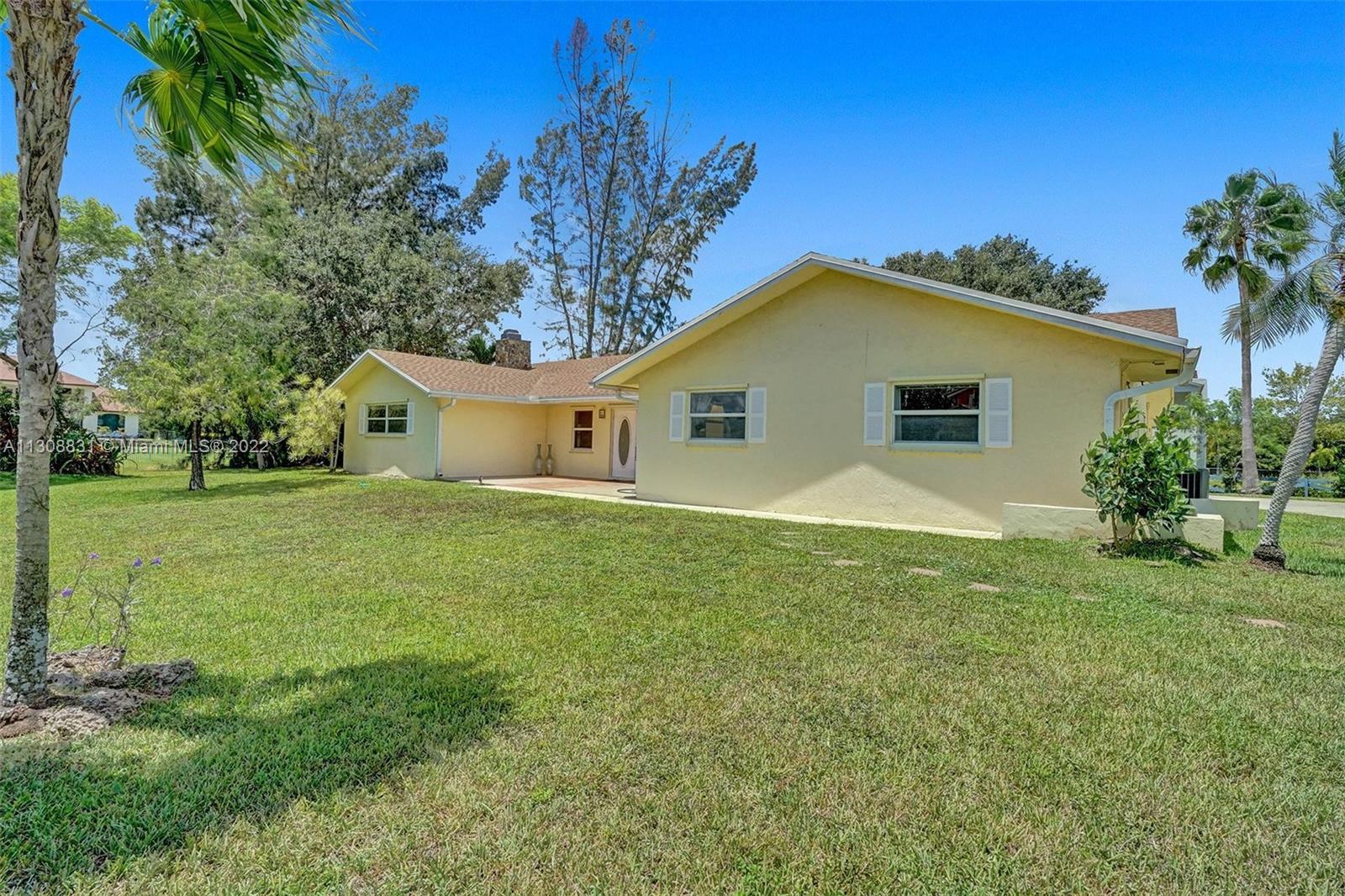 Enjoy the quiet & beautiful neighborhood of Plantation acres, where you will be surrounded with beautiful multi- million dollar homes! This one story split floor plan home has impact windows and doors throughout! It is situated on 3/4 of an acre at the end of a lovely private cul-de-sac. Open floor plan with a 2 car garage. Vaulted ceilings with recessed lighting. All bedrooms have new floors. Bathrooms have been updated! Walk in custom closet in the master bedroom. Separate laundry room. Unique fire place in the center of the living room! The backyard has a covered screened in patio with wooden deck and hot tub. Plenty of room for a pool! Don't miss the opportunity to create your very own haven in the desirable city of Plantation. Close to all major highways, Malls, FLL airport & Beaches!