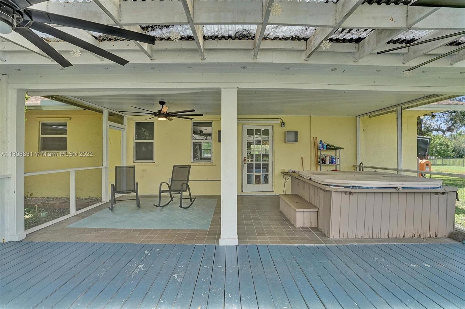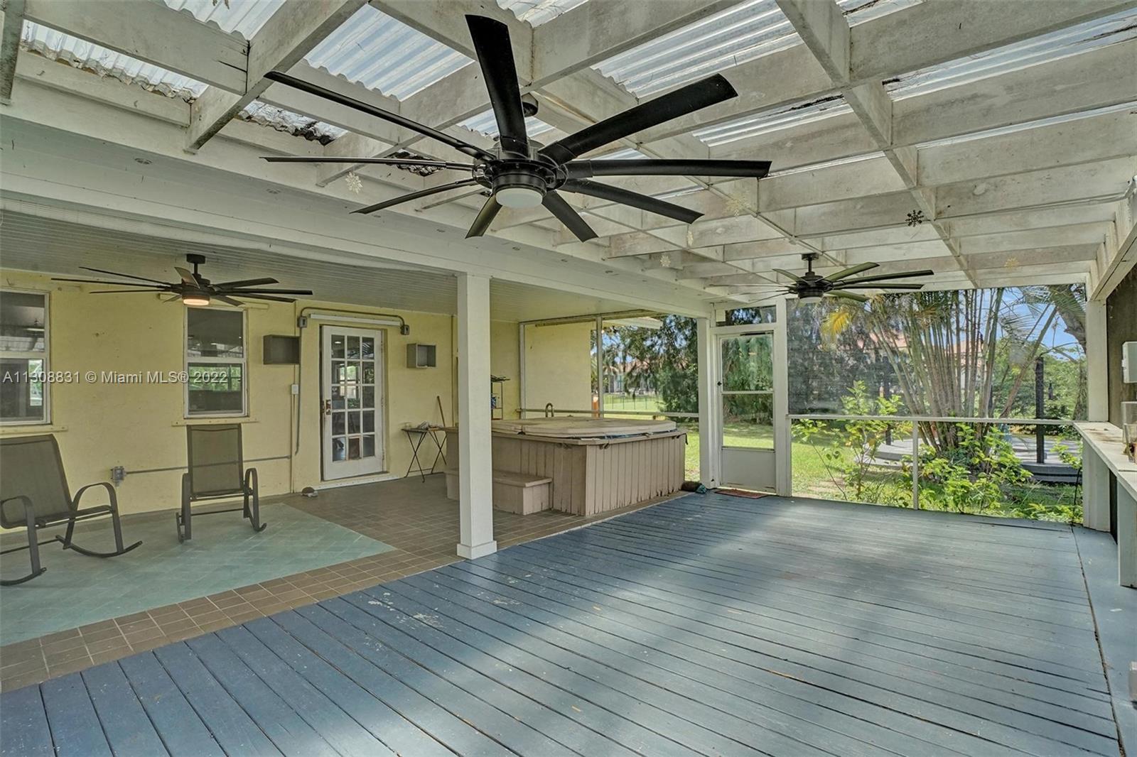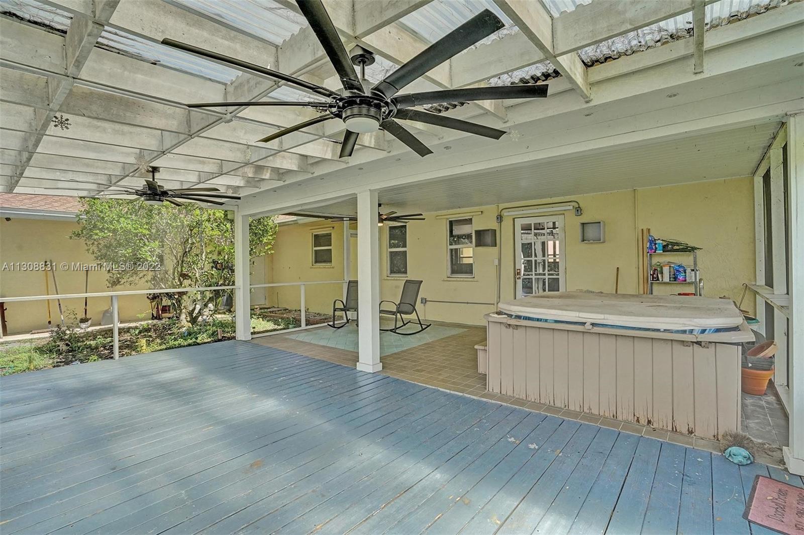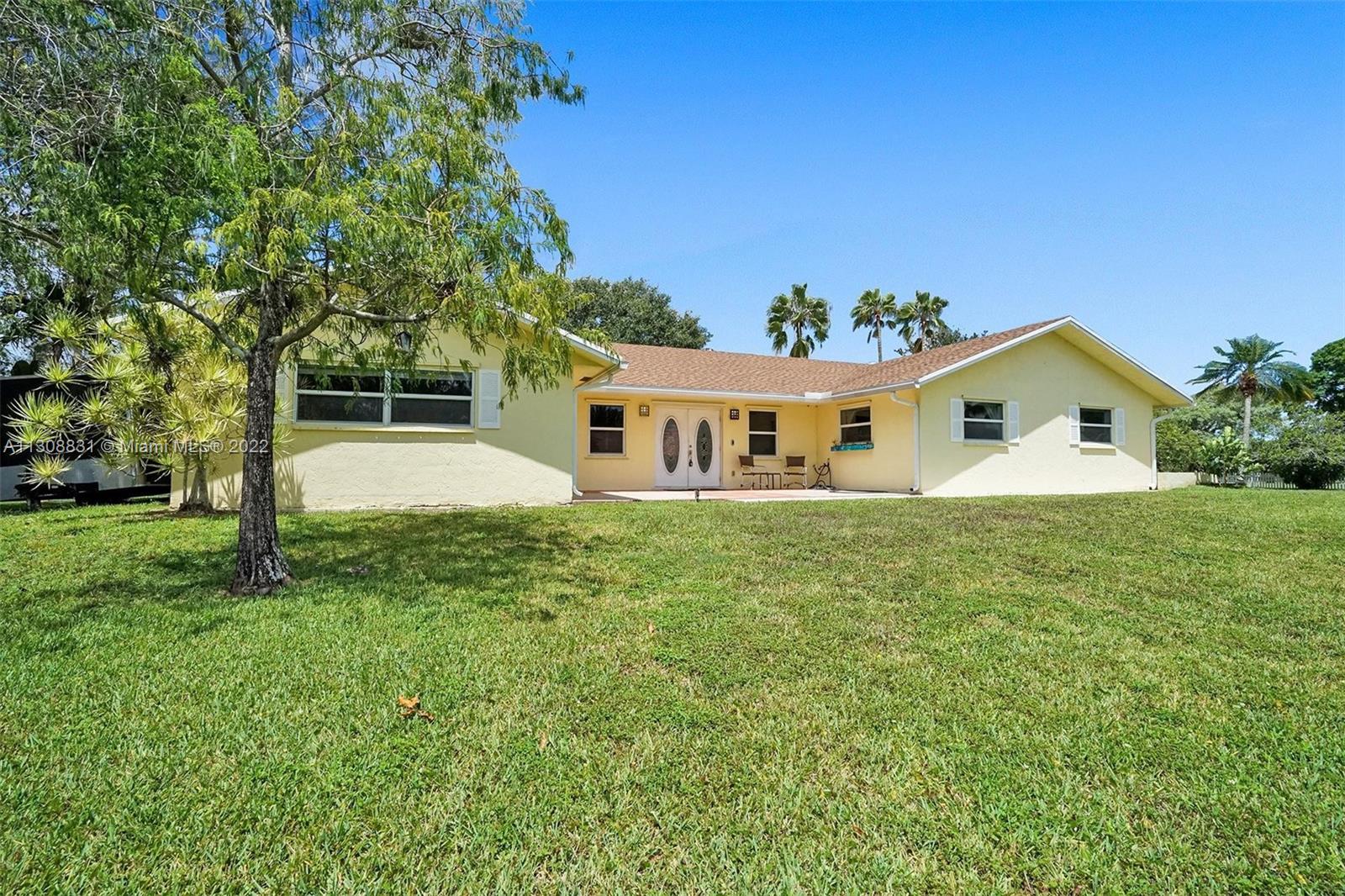 Enjoy the quiet & beautiful neighborhood of Plantation acres, where you will be surrounded with beautiful multi- million dollar homes! This one story split floor plan home has impact windows and doors throughout! It is situated on 3/4 of an acre at the end of a lovely private cul-de-sac. Open floor plan with a 2 car garage. Vaulted ceilings with recessed lighting. All bedrooms have new floors. Bathrooms have been updated! Walk in custom closet in the master bedroom. Separate laundry room. Unique fire place in the center of the living room! The backyard has a covered screened in patio with wooden deck and hot tub. Plenty of room for a pool! Don't miss the opportunity to create your very own haven in the desirable city of Plantation. Close to all major highways, Malls, FLL airport & Beaches!