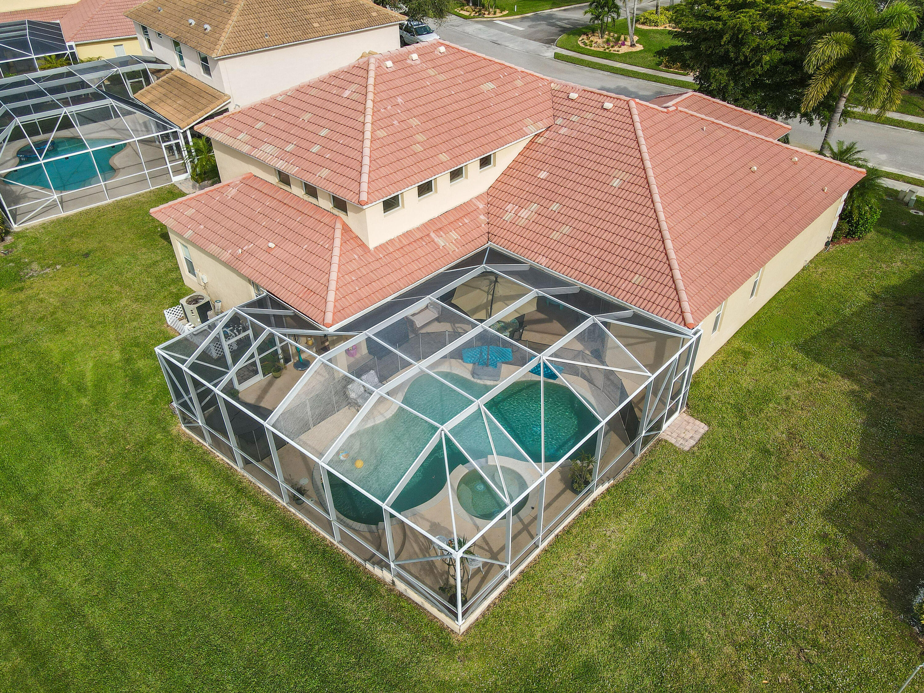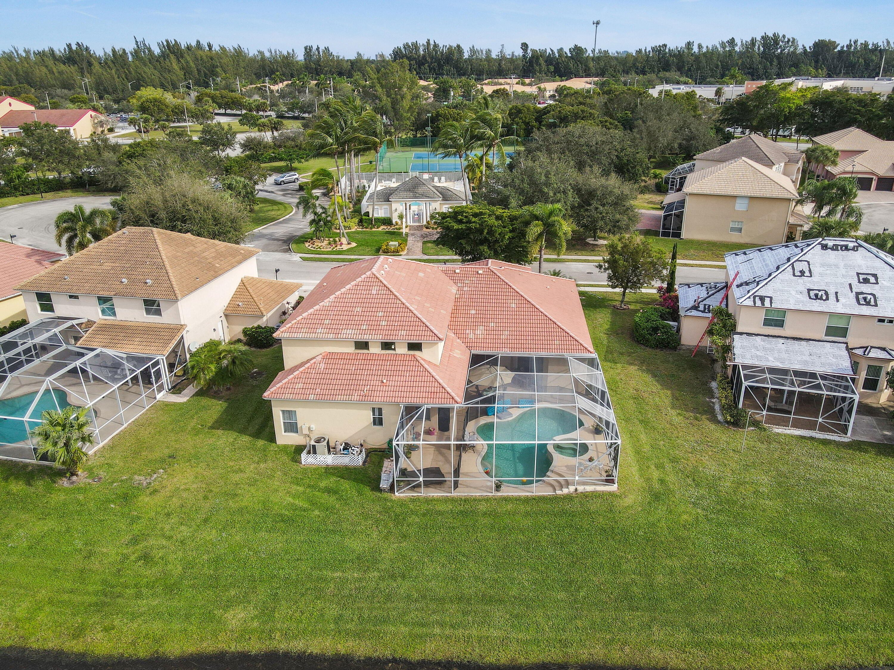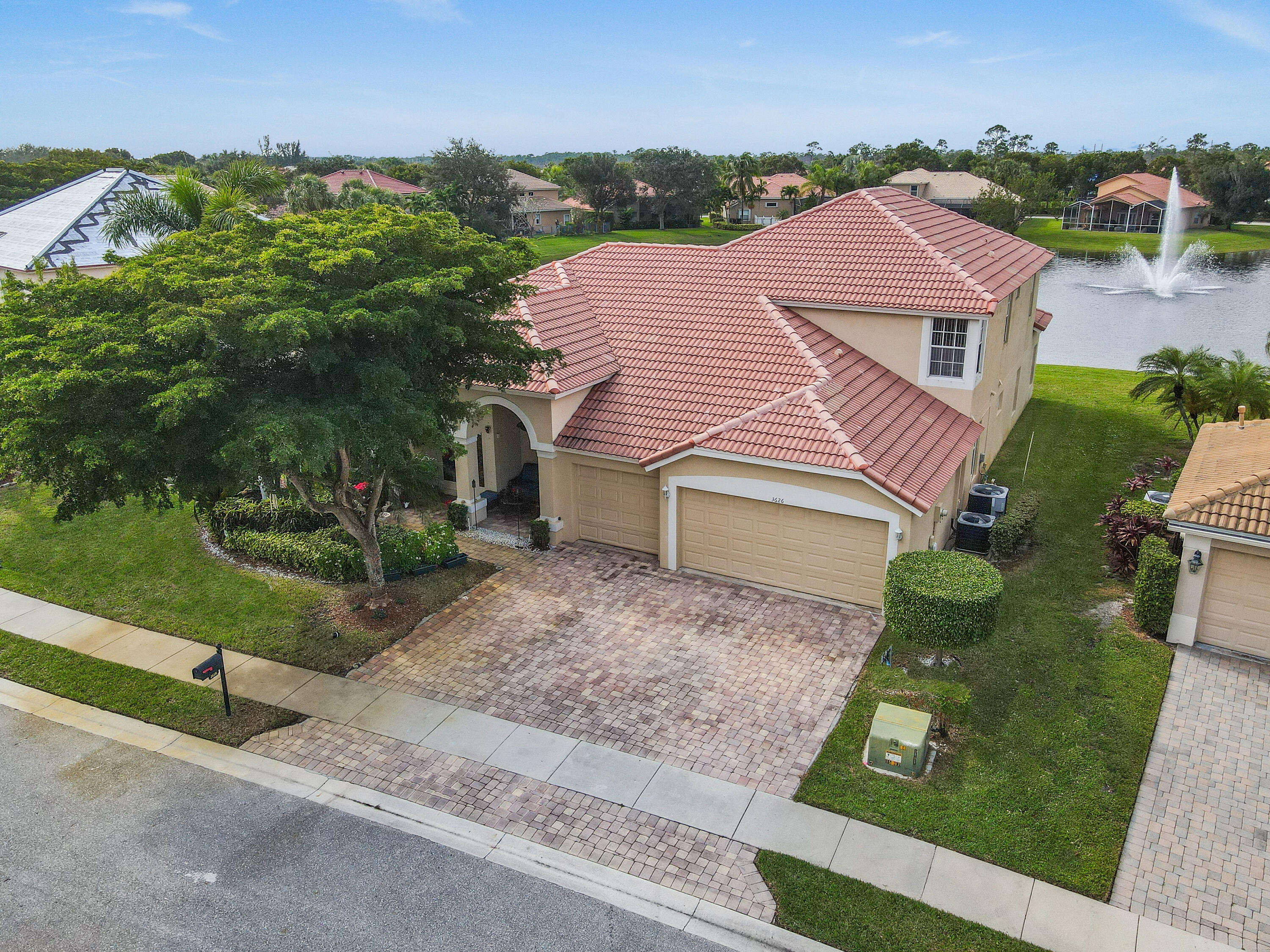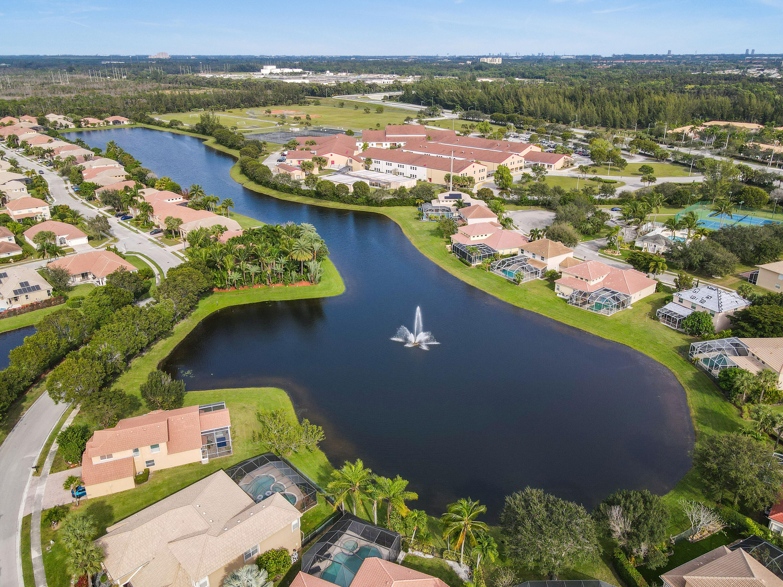 This home offers an amazing open floor plan.The lake view invites relaxation as you enjoy the sunset by the pool basking in its ambience. Master bedroom on the first floor and the other three rooms are as well (in the other wing of the house) giving you privacy. The loft upstairs can become a bedroom the second floor has the two lofts, five bedroom and full bath. New A/C unit with permit installed downstairs. Central Vacuum System.The three spacious cars garage offers spaceous room and includes an infrared sauna( for sale as well) to help you feel amazing. Across from clubhouse, tennis, playground and an array of guest parking spaces.