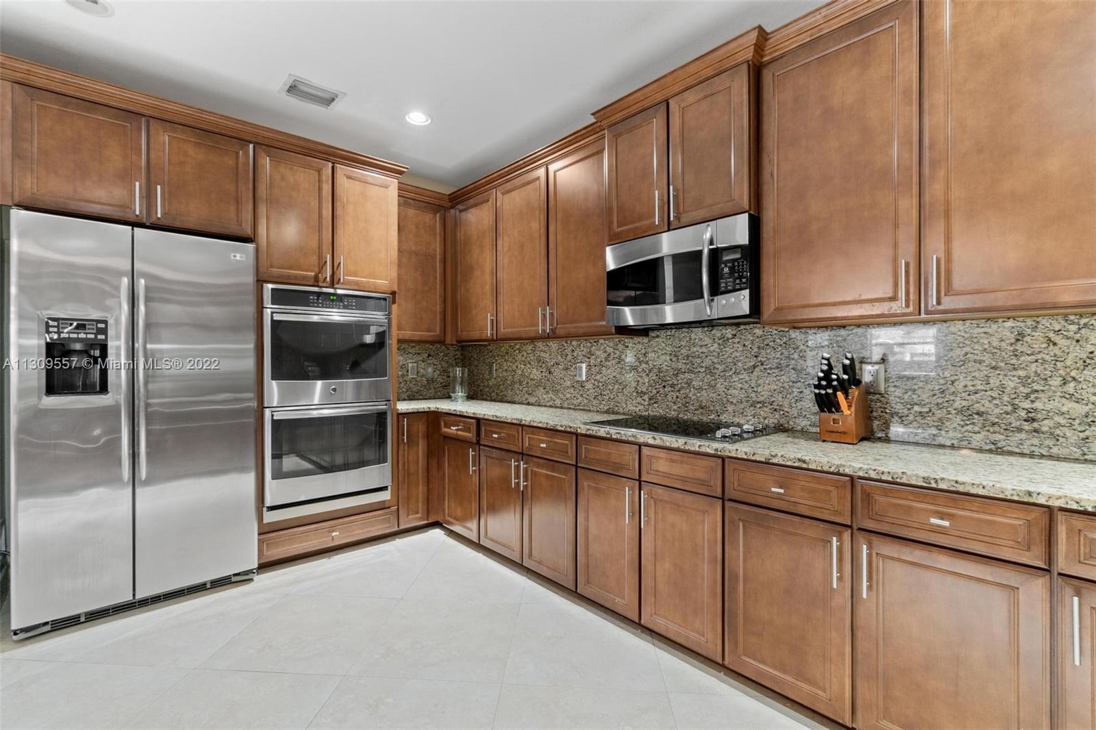 Impecable corner lot and spacious single family home, 4 bedrooms, 4 bathrooms, walking closets. Located in the prestigious gated community at Grand Bay Estates at Doral. Ample kitchen with stunning brown wooden cabinets, Stainless steel appliances and granite countertops. Ceiling fans throughout home, two door double garage with ceramic floor, garage cabinets and air conditioning. It has a social area with BBQ, Fryer, Ice Maker, etc, this area is under air conditioning. The luxurious resort style clubhouse features a pool, kids pool, a jacuzzy, full gym, tennis/basketball courts. Close to great public & private schools, supermarkets, restaurants, and new Doral CityPlace shopping Mall.