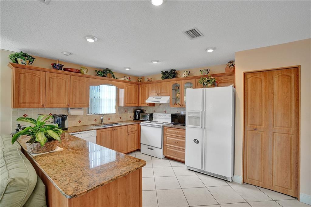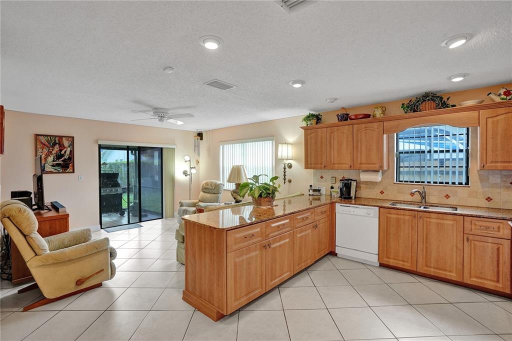 Large family home located on huge pie shaped lot. Nice open floorpan. Great for entertaining! 3/2 with formal living and dining room. Eat in kitchen that opens to family room. Kitchen features granite countertops, snack bar and pantry. Ceramic tile throughout except bedrooms. Large master bedroom with walk in closet. Vaulted ceilings. Nice screened patio overlooking large backyard. A/C 2018. Hurricane Shutters. Hurry on this one. Will not last.