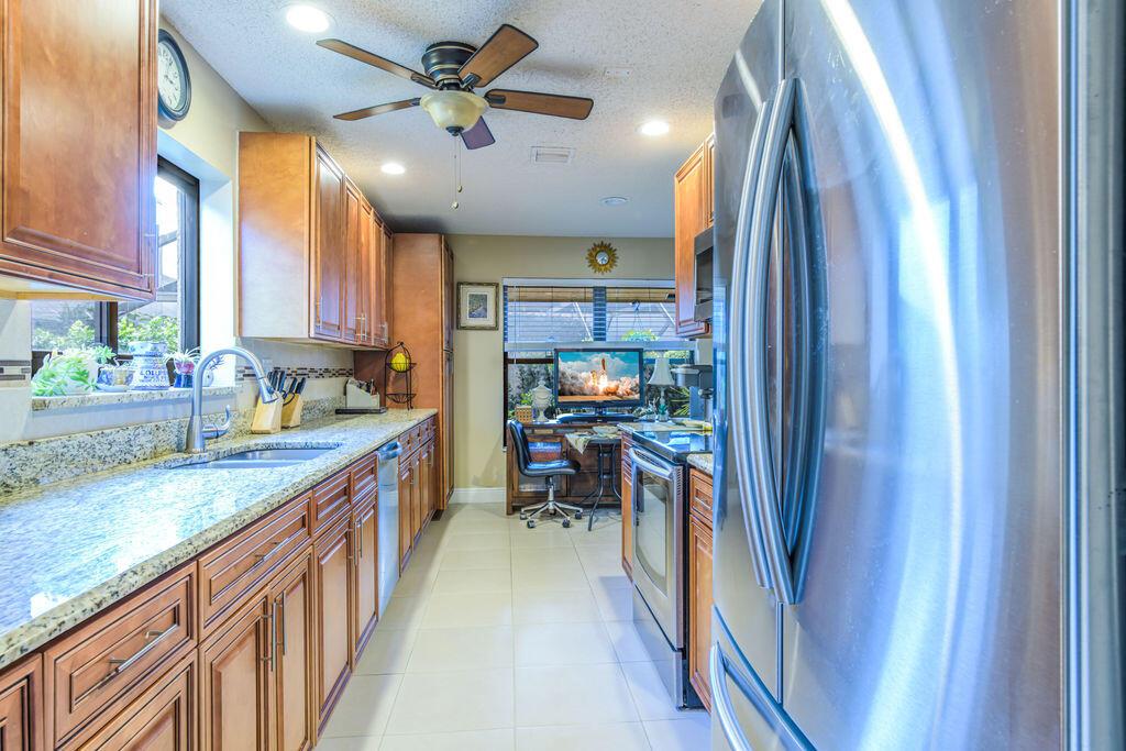 Immaculate,turnkey, light and bright single family home in sought after gated community of Pradera.Pradera is a well-managed, perfectly manicured subdivision with a super low HOA which includes cable, internet, ADT security, & lawn maintenance. Don't miss out on this one! Located in the heart of Boca Raton near shopping, (walk to Town Centre Mall), walking distance to schools, houses of worship, and dining and only minutes from travel, beaches, & more. Stunning, private, oversized back yard with 100% privacy and room for a pool! Fabulous, updated, huge kitchen w/ tons of storage. This home features 2 bedrooms plus a guest den/bedroom. There are 2 en suite master suites (full baths) completely separate from each other on opposite sides of the home!