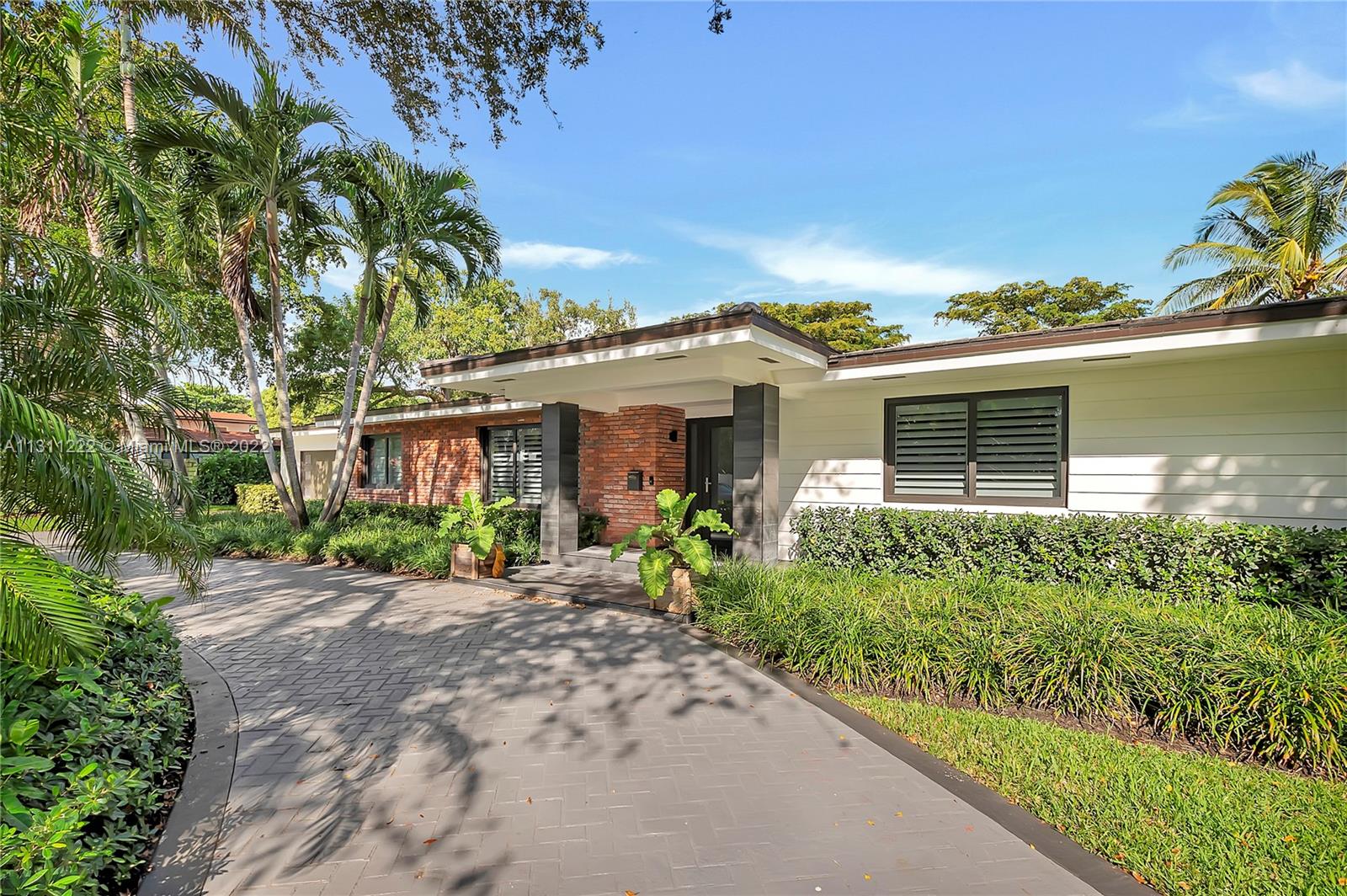 Renovated, 4 bdrm/ 3 bath home in the Village of Pinecrest. Great entertaining spaces. Open formal living room and family room. Formal dining off the kitchen. Modern yet charming kitchen with white cabinetry, subway tile backsplash, granite countertops & new stainless appliances including double ovens. Warm blonde wood plank tile flooring. Spacious, light-filled bedrooms. Fantastic, updated bathrooms. Wonderful primary suite w/ double walk-in closets, dual sinks & view out to the pool. Spacious screened travertine patio w/ deep overhang & pool. Lush yet perfectly manicured landscaping, including a tranquil pond w/ waterfall. New flat tile roof, impact windows & doors. Large laundry room. 2 car garage, circular driveway.