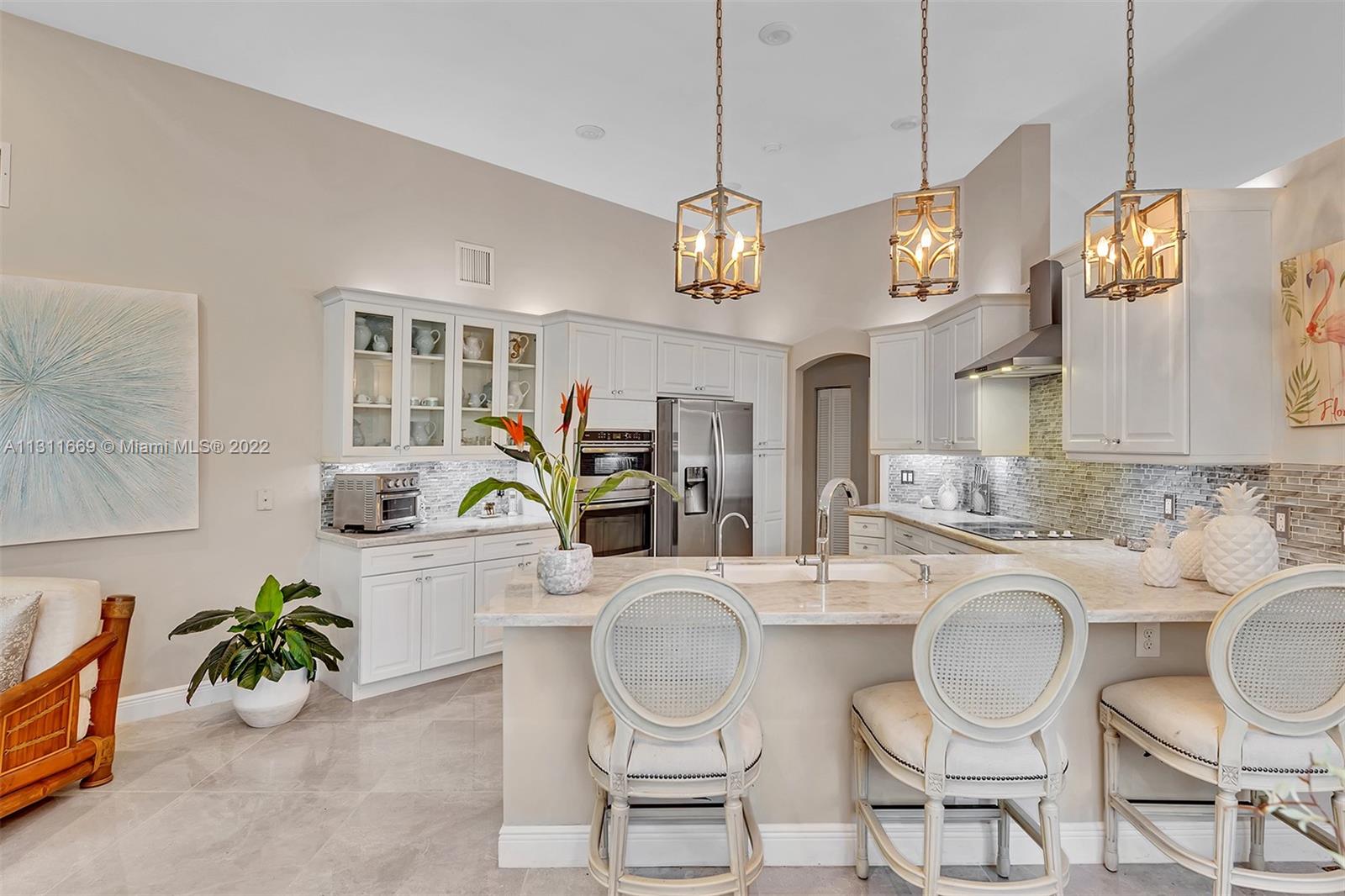 MOVE IN READY! This absolutely STUNNING 4 bed/3 bath one story home is set on perfectly manicured, lushly landscaped corner lot, COMPLETELY RENOVATED with transitional taste and a coastal flair. Enter the foyer and immediately feel the spacious living areas, volume ceilings and large sliders with transom windows. The chef's kitchen with quartzite counter tops, glass tile backsplash and wall oven/microwave overlooks the spacious family room. The master suite boasts a spa-like bathroom and 2 walk-in closets with built-ins. Other features include gorgeous 36x36 inch tile, trendy light fixtures and 3 way split bedroom plan. The screened pool with large patio is surrounded by generous yard. NEW ROOF and accordion shutters. 24 hr guard gated. Steps to community pool, playground and soccer field.